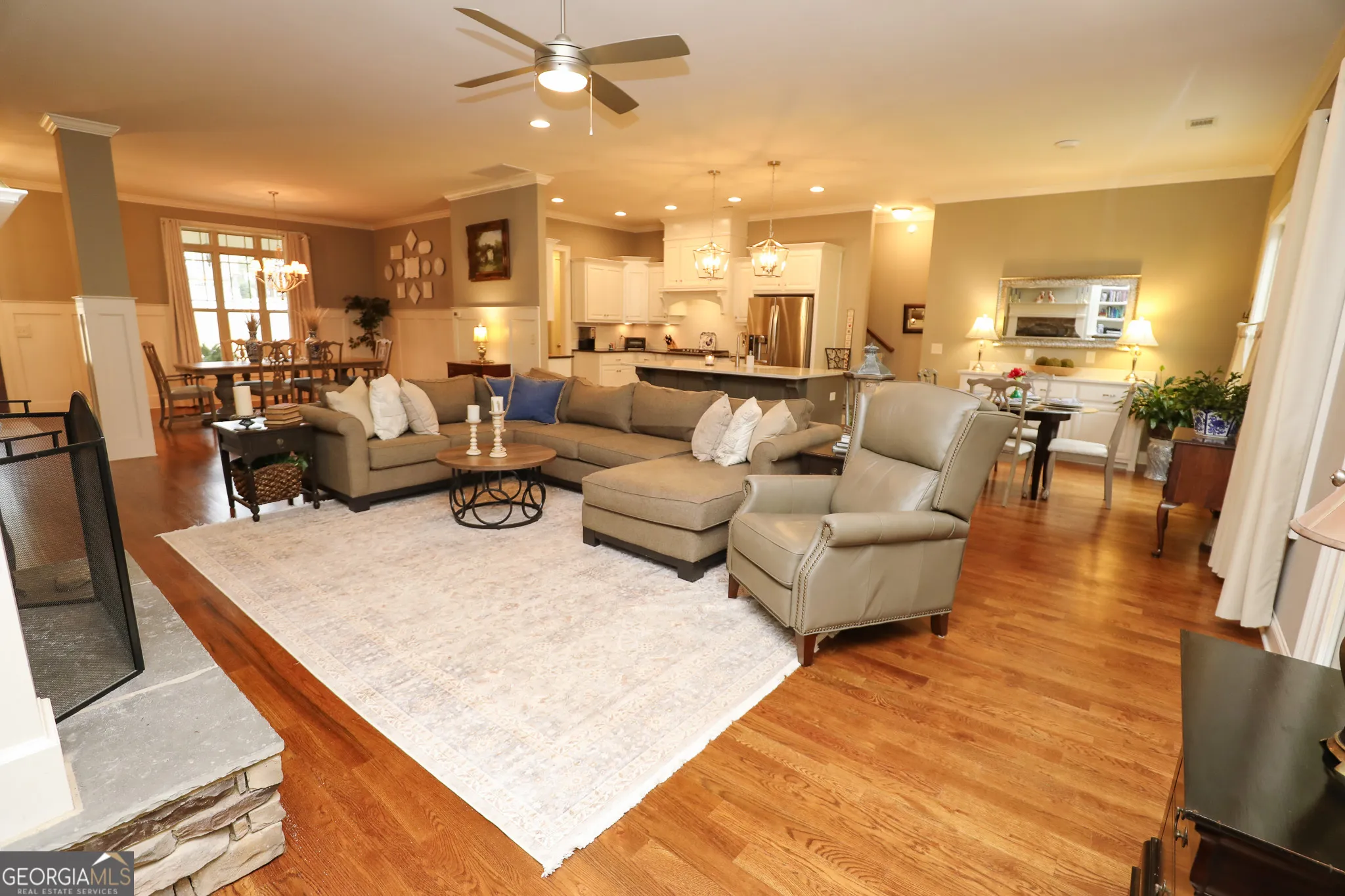 Enjoy lakeside living at its finest in this stunning 5 bedroom, 4-bath home! Step inside to a wonderful open floor plan inviting you to unwind & relax while enjoying all that this home has to offer. Featuring gleaming hardwood floors, designer lighting and abundant natural light throughout. The custom chef’s kitchen impresses with high-end cabinetry, an oversized island, custom built in buffet – perfect for entertaining, stainless steel appliances, beautiful quartz countertops, coffee nook, walk-in pantry, and a bright breakfast room-all open to the inviting family room with built-ins, a stone fireplace with gas starter. Just off the family room, an inviting covered porch with plenty of room with its own fireplace creates the perfect setting for game days or relaxing with a cup of cheer. The main-level owner’s suite is gracious in size and features a lovely tray ceiling and a spa-like bath with an oversized tile shower, lots of beautiful cabinetry for storage & linens, with marble countertops, soaking tub, water closet, and spacious walk-in closet. Two additional large bedrooms on the main level share a full bath with tile flooring and a beautifully tiled shower. A well-designed laundry room with utility sink and cabinetry, plus a walk-in pantry, add for storage with convenience. Rear stairs lead to a private upper-level suite complete with a bedroom, full bath, and an office/bonus room-ideal for teens, guests, or multigenerational living. The terrace level is an entertainer’s dream, boasting new hardwood flooring, 10-foot ceilings, built in custom bar area with sink & cabinetry ideal for all the drinks & snacks to keep everyone entertained as they enjoy a play area, reading nook, a media/golf simulation room with upgraded shiplap walls-perfect for movie nights or game days. You will also find an additional bedroom and an office/workout room, a full bath, and abundant unfinished storage space ideal for a workshop and truck loads of holiday decor. An oversized patio extends your outdoor living space, and a new fence will be installed soon. Located in Lake Redwine, this home offers resort-style amenities including a 360-acre lake, tennis courts, pool, sidewalks, and streetlights. Zoned for top-rated Brooks, Madras, and Newnan High schools. This exceptional home feels like new, offers upgrades around every corner, plantation shutters and even includes all kitchen & laundry appliances. Be ready to fall in love with the layout, finishes, and lifestyle that await you! A short drive to schools, historic downtown Newnan, shops & I-85. Welcome Home…