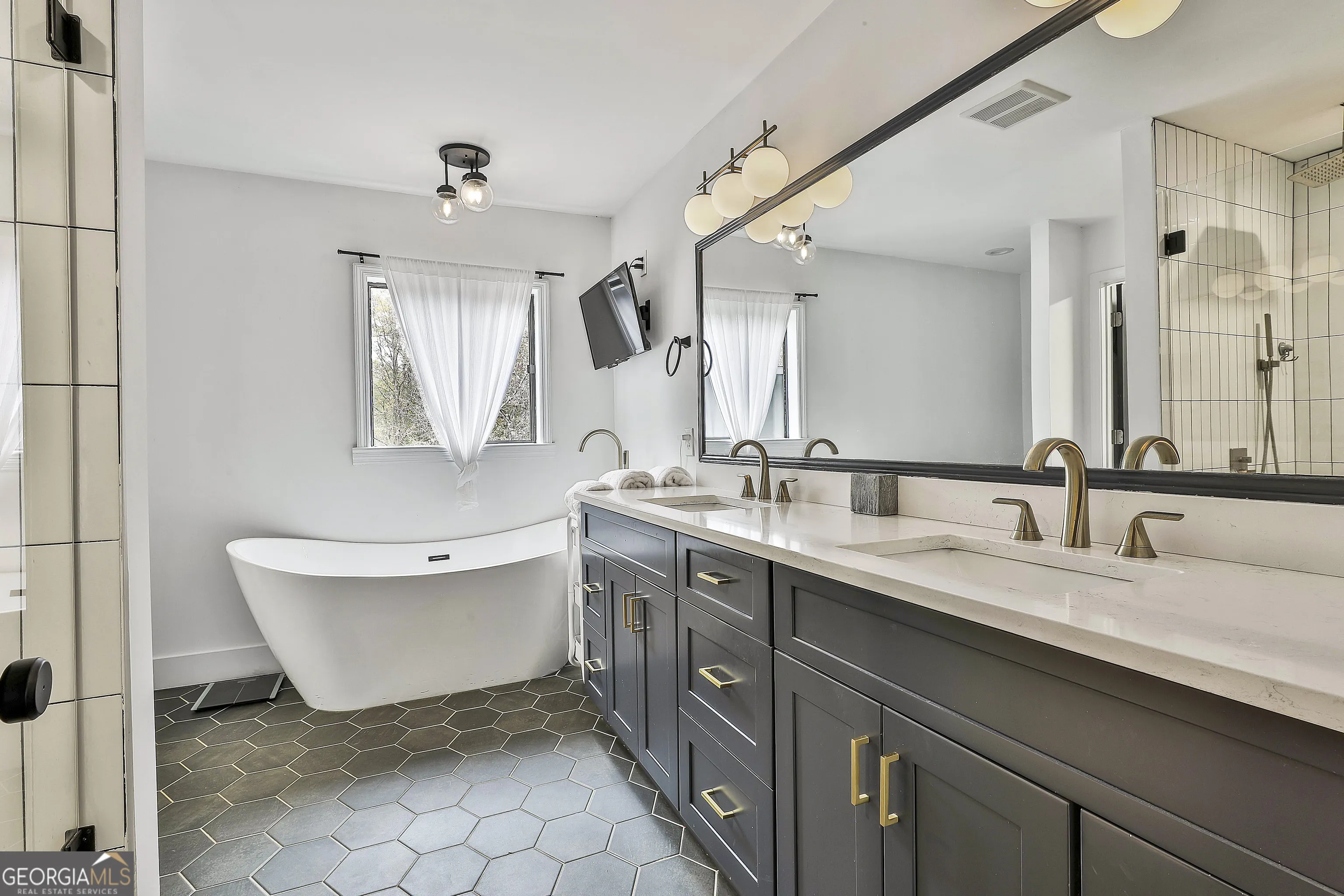 Welcome to your mid-century modern dream home. Nestled within walking distance to Main Street in the expanding town of Hogansville, you’ll find this recently upgraded home to have all the sophisticated and sleek character for a 1950s home you could imagine. Start by parking under your covered carport and make your way inside with the option to head into your library with builtins with expansive natural light from your wall of windows or the option to head into your beautiful dining/living area. The kitchen is the hub of this home updated with quartz counter tops that showcase the homes solid wood cabinets. While cooking, you’ll never miss the conversations with this centralized location to the dining and living area. When you’ve finished and want to relax make your way to the large living room and cozy up in front of your wood burning fire place. Upstairs you’ll find the privacy every owner suite should hold along with a private balcony, luxurious owner bathroom with separate shower, soaking tub, double vanity, and large walk in closet. You have plenty of room for your guests, since this house in a 4 bed 4 bath with the main dwelling hosting 3 beds and 3 baths. The split floor plan has your owner suite upstairs and the two bedrooms and two full baths down the hall off the dining area. Attached with a breeze way, you’ll find the perfect spot for rental income or for a multi-generational living option in the 1 bed 1 bath apartment with quaint kitchen. Enjoy entertaining in your private backyard with cover patio for grilling. Don’t miss this architectural delight. It is waiting for you!