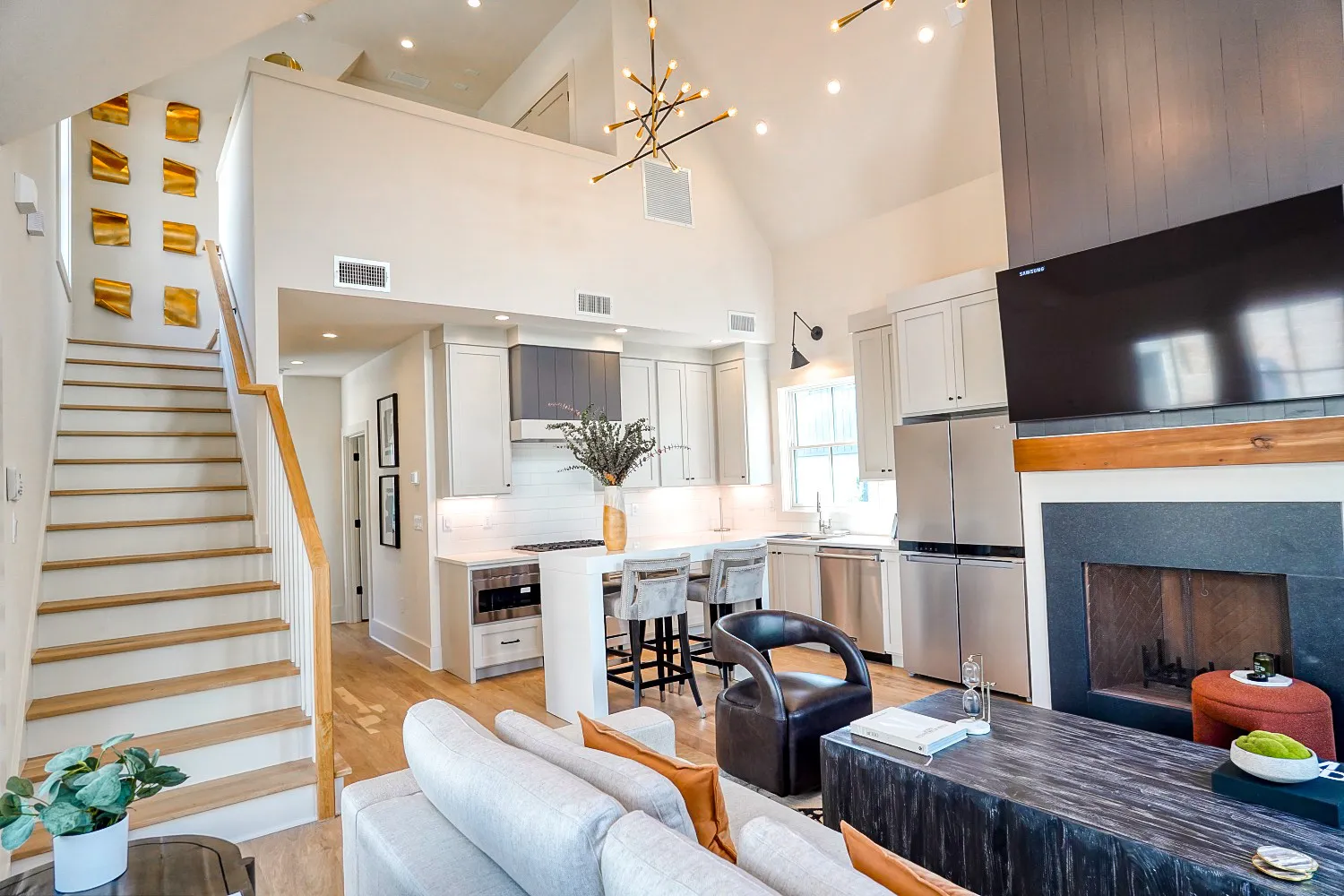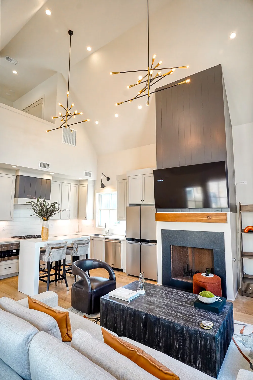 Experience inspired living in this charming, professionally designed 3-bed, 3-bath FURNISHED Wald Cottage in Trilith. The home boasts an expansive open floor plan with soaring ceilings and abundant natural light throughout the seamlessly integrated living, dining, and kitchen areas. The first floor features the luxurious Primary Suite with an ensuite bath (double vanity, walk-in shower), plus a versatile second bedroom with a Murphy bed for flexible use. Enjoy a spacious dine-in kitchen with a large island and main-level laundry. The second floor offers an airy loft office space overlooking the living room and a third bedroom suite. Includes one off-street parking spot. The Trilith Difference: Located in the heart of Fayetteville, Trilith is the largest geothermal community in the US, offering a unique lifestyle with over 51% green space, 15 miles of trails, parks, the 60,000 sq ft Piedmont Wellness Center, upscale shops, dining and Trilith Live (opening soon). Live steps away from world-class film studios in this creative, vibrant town!