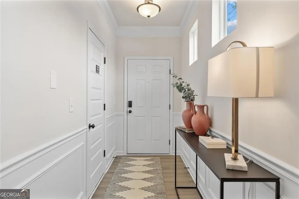 Move-in Ready December 2025! Welcome home to The Ellison II by Smith Douglas Homes, located in the exciting new Jameson Towns community in Villa Rica, GA! This end unit is one of our most popular 3-bedroom, 2.5-bath townhome plans offering the perfect blend of style, comfort, and low-maintenance living. Step inside from the welcoming foyer to an open-concept main level featuring luxury vinyl plank flooring, a spacious great room with a modern linear fireplace, and a kitchen complete with a large center island, granite countertops, upgraded cabinetry, tile backsplash, stainless steel appliances, and a walk-in pantry. The kitchen flows seamlessly to the rear patio and private yard-ideal for relaxing or hosting friends and family. Upstairs, the open iron staircase leads to a luxurious primary suite designed for comfort, featuring a tray ceiling, dual vanity bath, tiled shower, Garden tub, separate water closet, and a generous walk-in closet. Two additional bedrooms, a shared hall bath, and a convenient laundry room round out the upper level. Enjoy 9-foot ceilings on both floors, enhancing the home’s bright and airy feel throughout. Residents at Jameson Towns will love planned community amenities including a pool with cabana, playground, and lawn maintenance included in the HOA, giving you more time to enjoy life. Photos are representative of the plan and not the actual home. Seller incentives with use of preferred lender.