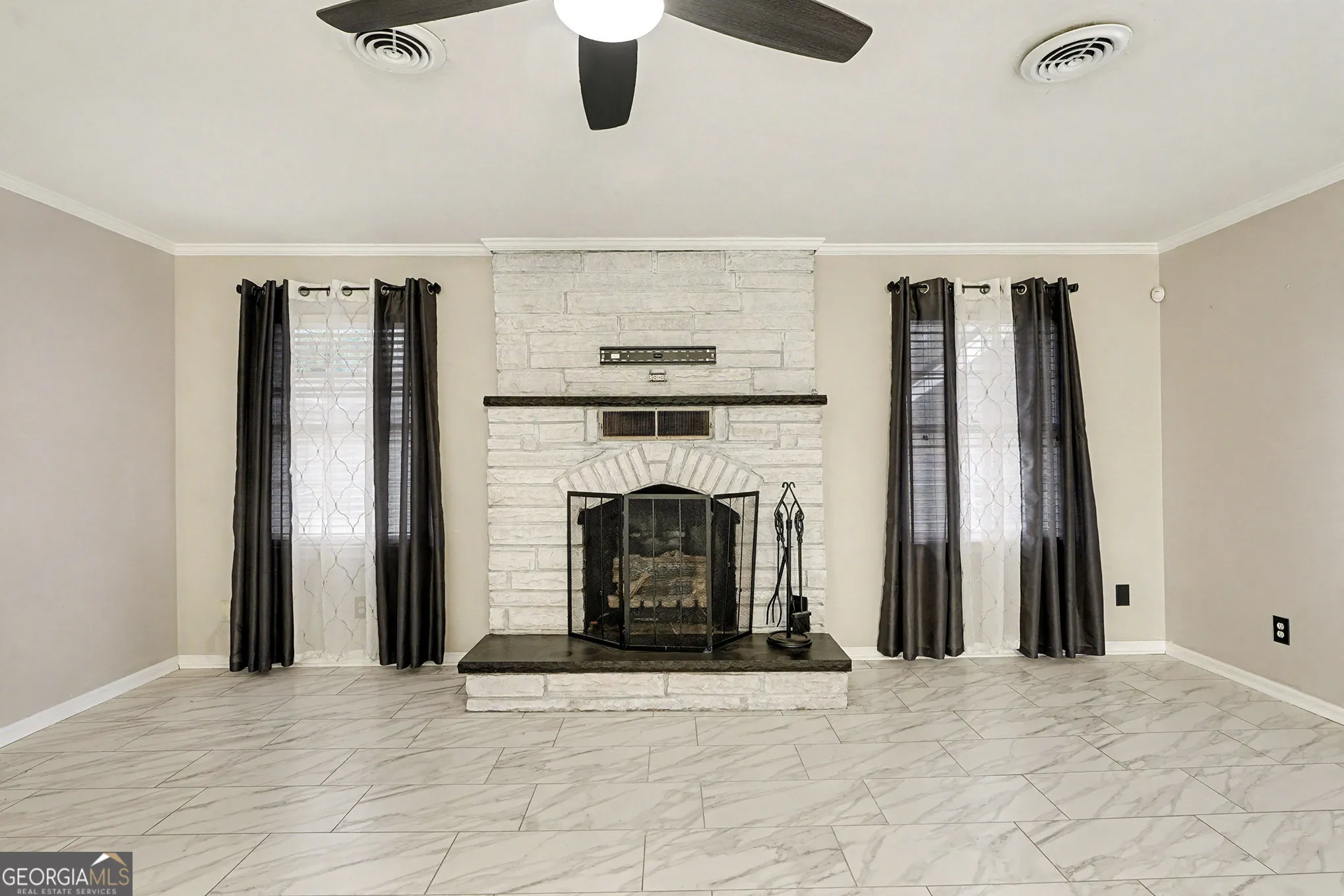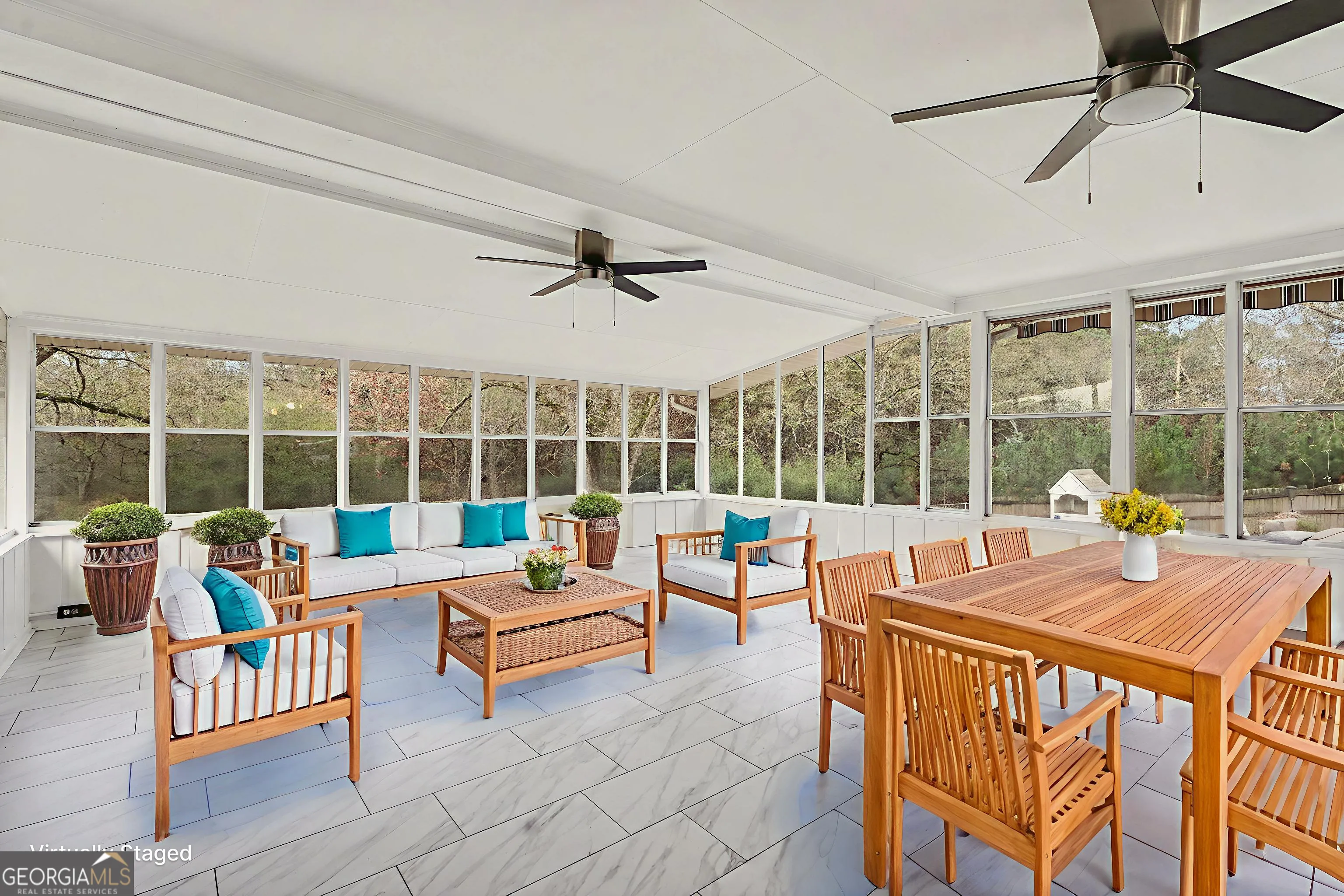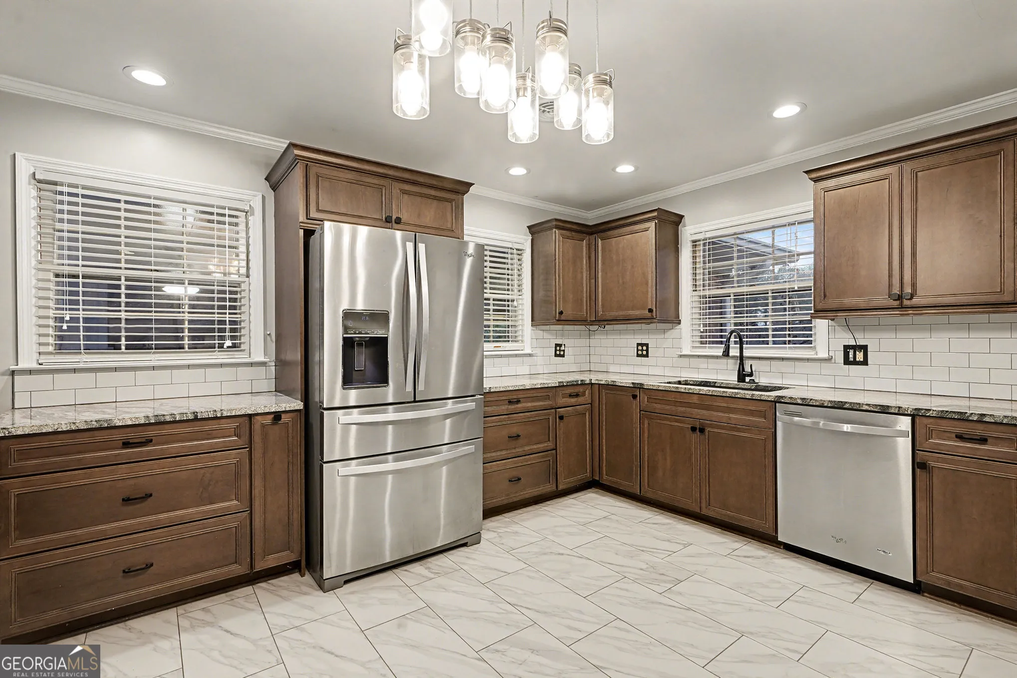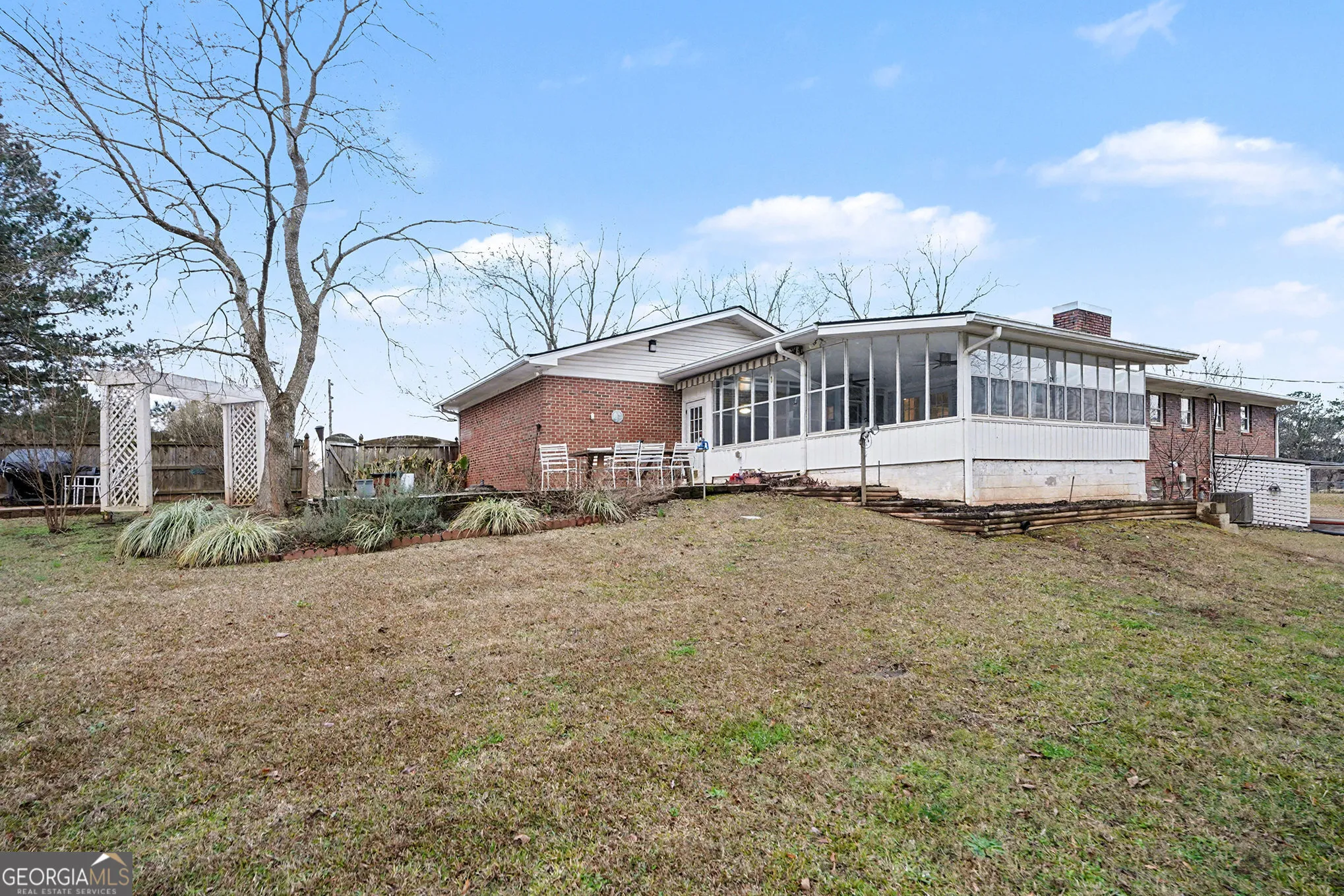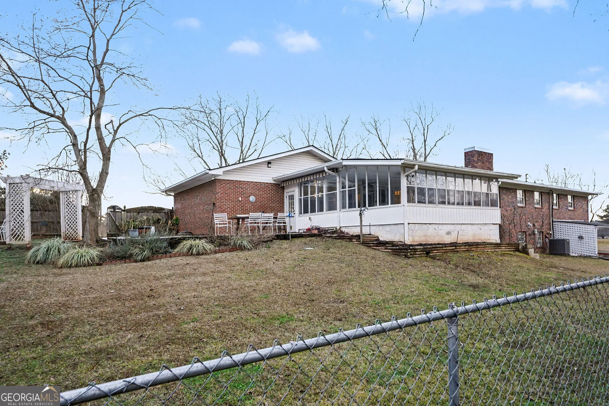 Interior & Living Spaces Welcome to this classic style spacious home, 4-sided brick Ranch w/ partially finished basement. Sit on a beautiful 1.48 acre lot boast 3BR + 2 baths at 1983 sq ft on main level. The kitchen – completely renovated in 2023 – showcases stainless steel appliances, a double-oven range, a built-in microwave, and a breakfast bar opening into the family room. A walk-in pantry adds functional storage space. Both bathrooms have been completely updated w/ new, beautiful tile, fixtures, tub + shower. They are stunning. A standout feature is an expansive 36 36 ft sunroom, offering serene backyard views, ideal for entertaining or simply relaxing. Temp. controlled. Downstairs, a partially finished basement – provides two additional rooms – perfect for a home office, gym, or guest quarters. A second fireplace in the basement adds warmth and versatility. Interior finishes include hardwood and tile flooring; there’s also flexibility for laundry hookups (electric or gas) and a separate formal large dining area. This one is a must see!