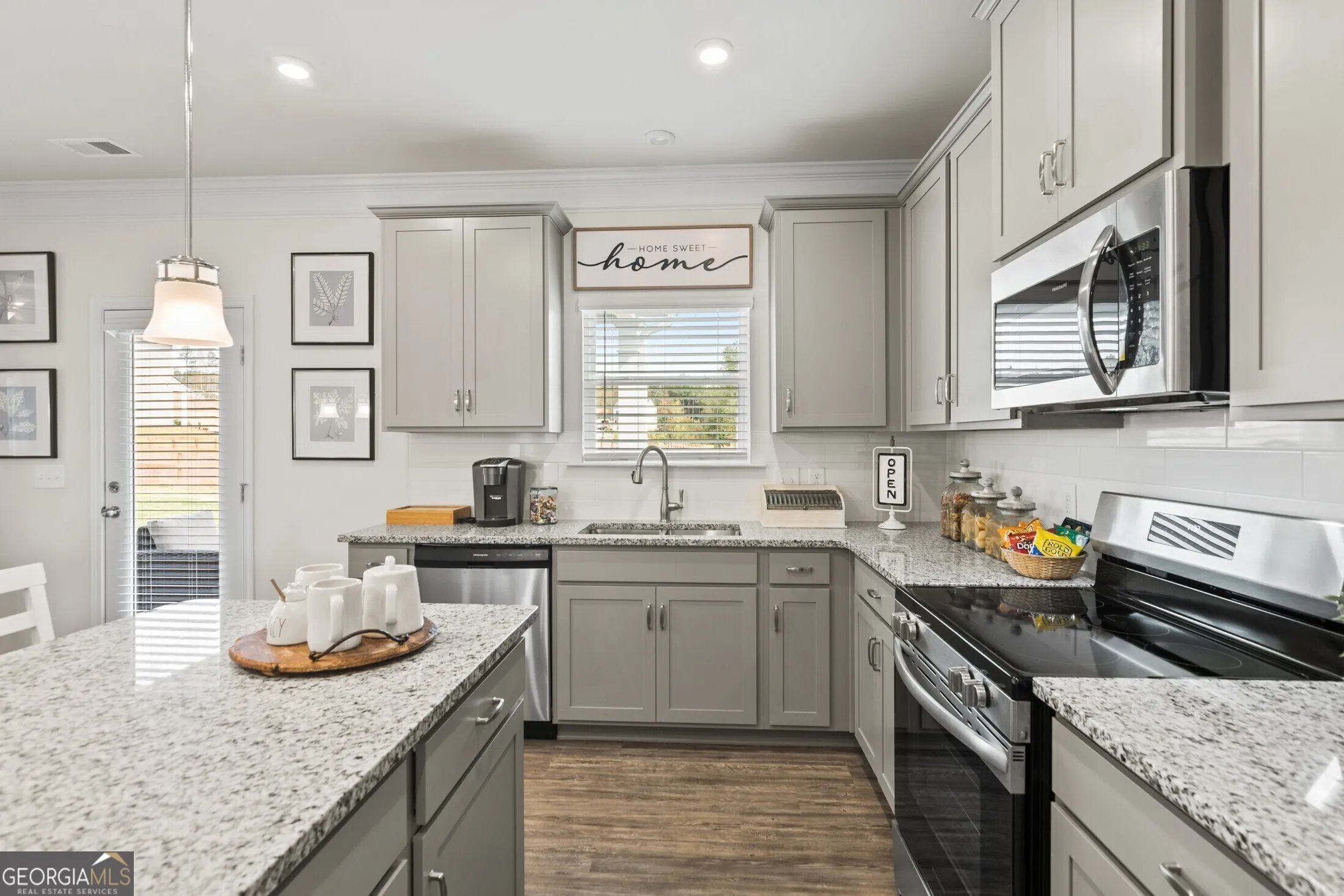 Move in Ready March! The Coleman plan located in Smith Douglas Homes community, Summerfield Place! The 4BR/2.5BA Coleman welcomes guests with a spacious foyer that leads to an open concept living/dining/kitchen area. The large eat-in kitchen, features granite countertops, upgraded cabinetry with crown molding, an island, stainless steel appliances and is adjacent to the family room with a linear fireplace. Upgraded Vinyl Plank floors throughout the main level add to the open flow of the home. Great for entertaining is a rear covered patio. An open iron staircase leads to the second story where you will find the Owners suite with a tray ceiling and three generous bedrooms, a shared bath, and a convenient laundry room. Marble counters in baths. Large closets add an amazing amount of storage. Both floors have 9ft ceiling heights. Photos representative of plan not of actual home being built. Seller incentives with use of preferred lender.