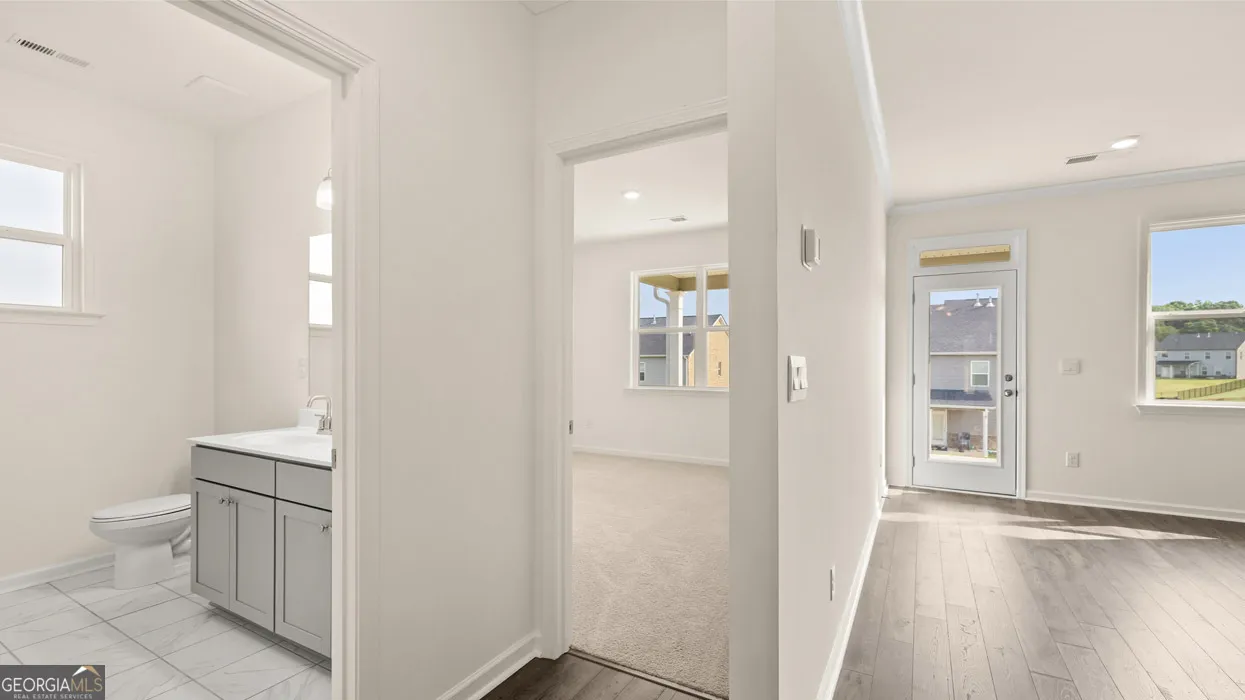 GOLF CART PATH TO HISTORIC DOWNTOWN SENOIA | MINUTES TO PEACHTREE CITY WITHOUT THE PRICE TAG | OVERSIZED LOTS WITH TREE LINED BACKYARD PRIVACY. The Marlene floorplan at Heritage Pointe is a 4 bedroom, 3 bathroom single level home with bonus space up. The 2-car garage ensures plenty of room for vehicles, electric cars and storage. Walking down the dramatic double foyer you are lead past a formal dining room to an expansive kitchen with a central island, contemporary cabinetry, stainless steel appliances and beautiful quartz countertops. Whether you’re planning a quiet dinner or hosting the holidays, an oversized pass through keeps you connected to the family room beyond. The private bedroom suite is situated on one side of the home for privacy and features a spa-like bath with dual vanities, separate shower, garden tub and extra closet space. Two secondary bedrooms that share a well-appointed bath and a laundry room complete the main level. Upstairs offers an impressive bonus bedroom and full bath, ideal as a teen retreat or for guests when they visit. And you will never be too far from home with Home Is Connected. Your new home is built with an industry leading suite of smart home products that keep you connected with the people and place you value most. Photos used for illustrative purposes and may not depict actual home.