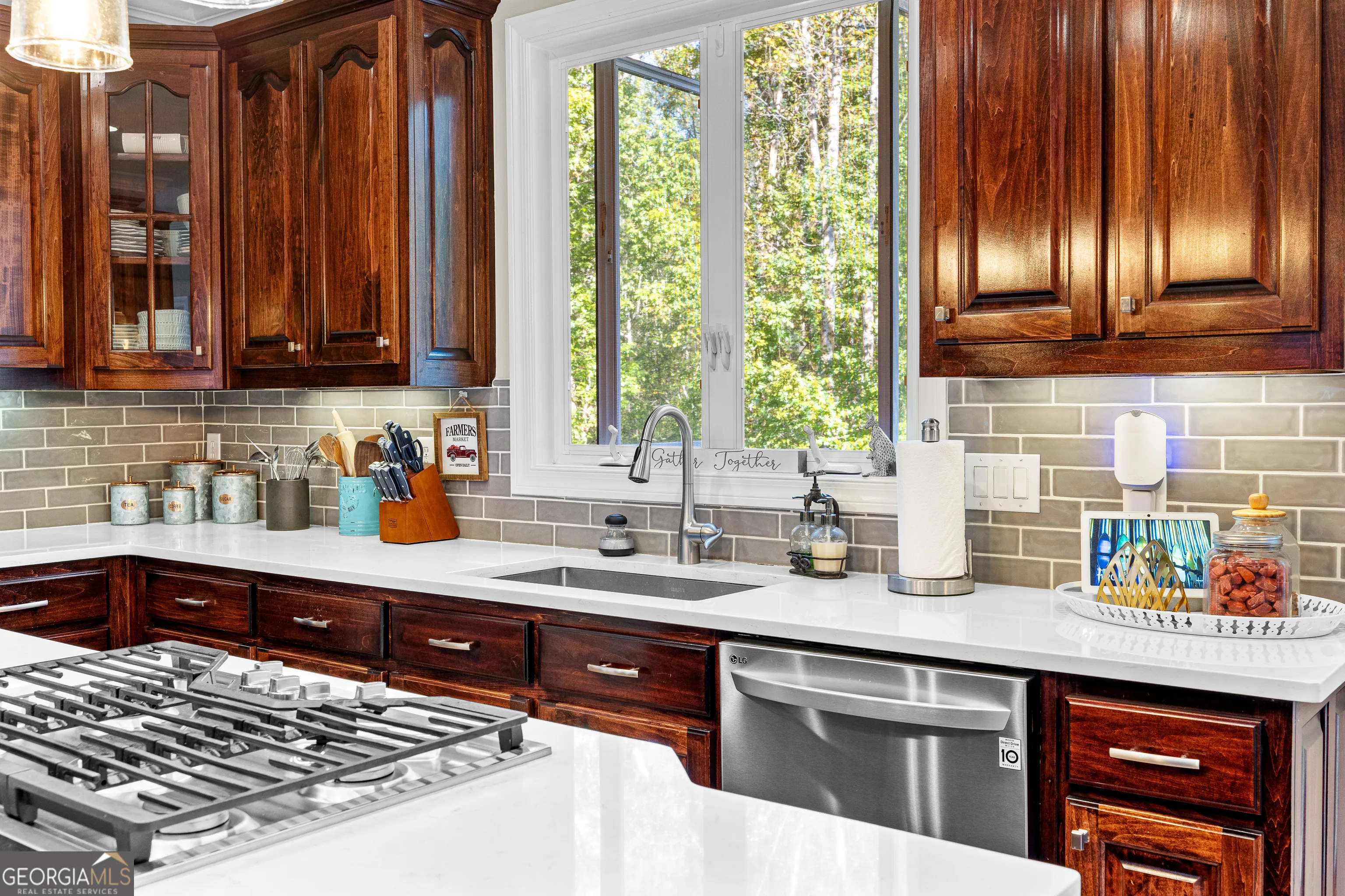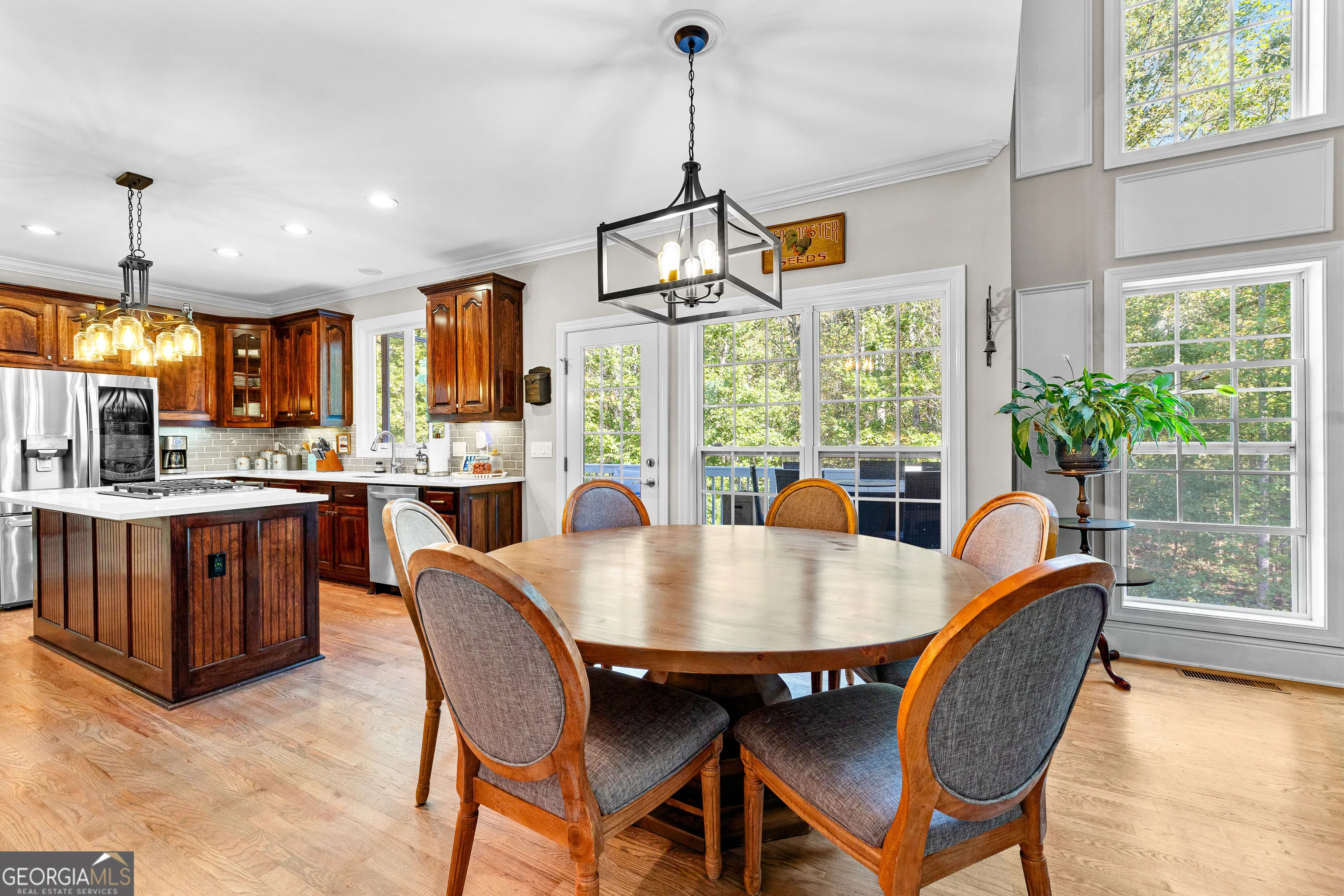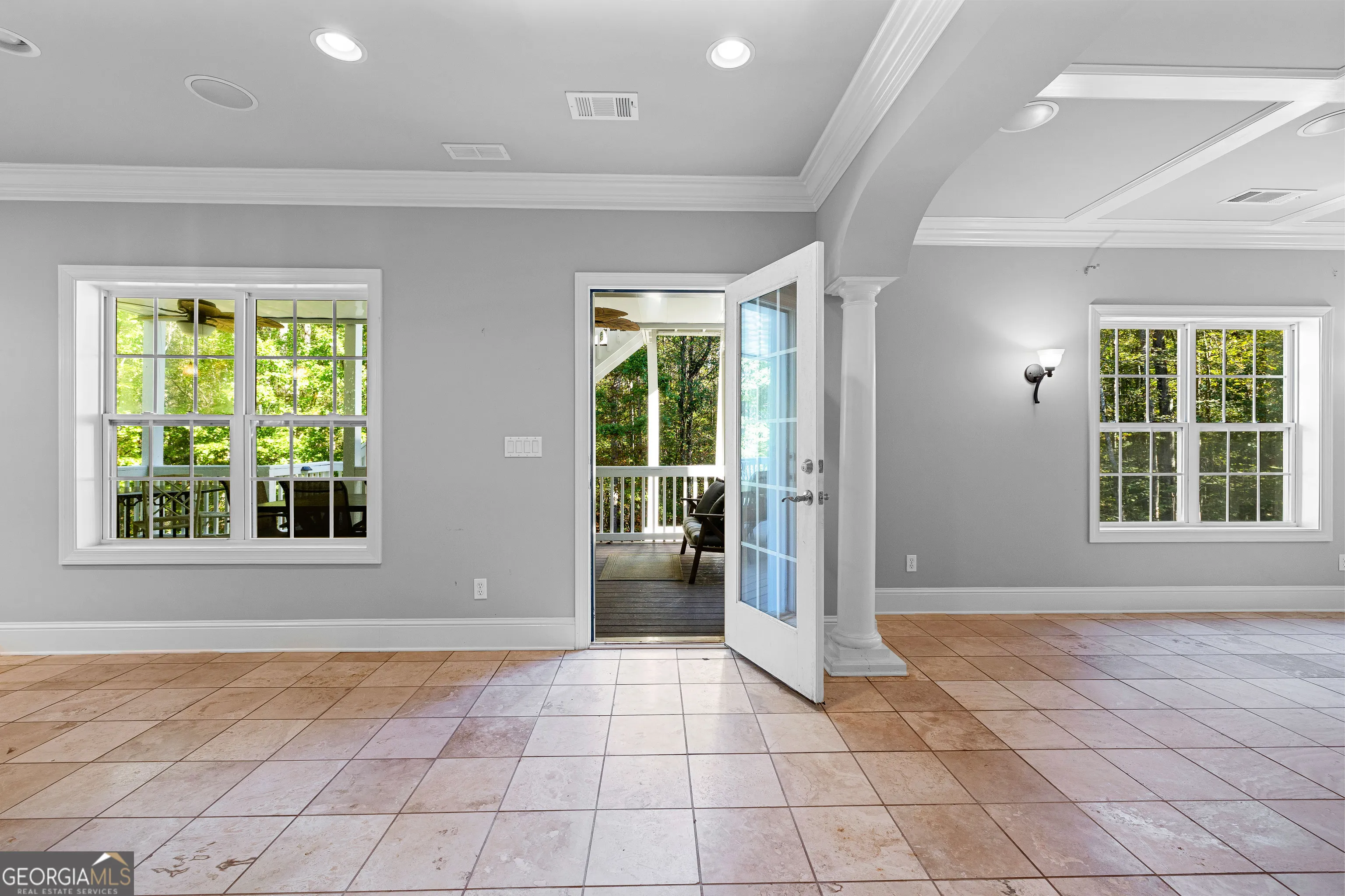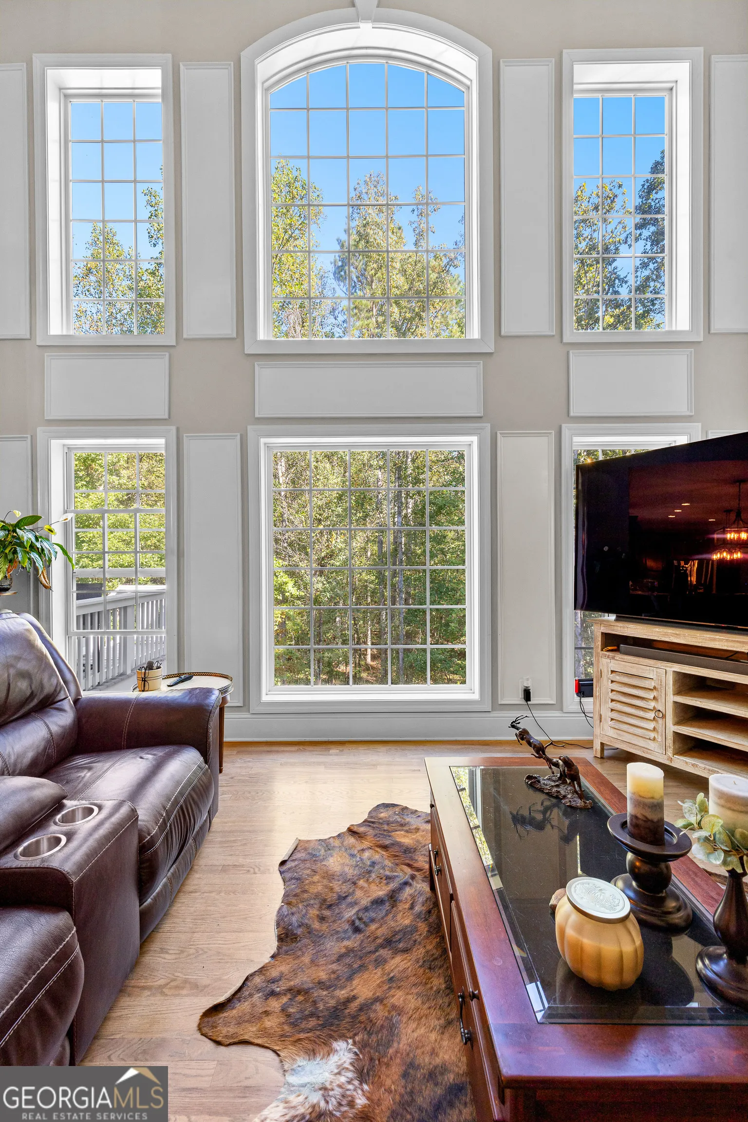 Located in the prestigious Arbor Springs golf community and the sought after school district of Arbor Springs Elementary, Madras Middle School, and Northgate High School, this 4 bedroom, 4 bath home with a finished terrace level offers timeless European inspired architecture, elegant living spaces, and a private wooded backdrop, all enhanced by RECENT UPGRADES INCLUDING A NEW ROOF, FRESH EXTERIOR PAINT, NEW GUTTERS AND DOWNSPOUTS, AND A BRAND NEW HVAC SYSTEM FOR THE TERRACE LEVEL, providing peace of mind and energy efficiency for years to come. From the moment you arrive, the circular driveway, manicured landscaping, and classic European style exterior create a striking first impression. Inside, soaring ceilings, gleaming hardwood floors, and a grand staircase set the tone for the home’s inviting and refined atmosphere. The overall feel of the home is warm, peaceful, and connected to nature. Sitting in the living room, you can look out onto the private wooded backdrop, giving the sense of being tucked away in the mountains. The two story great room serves as the heart of the home, featuring a beautiful stone fireplace with custom millwork and a wall of oversized windows that fill the space with natural light while framing serene, wooded views. The chef’s kitchen offers custom cabinetry, quartz countertops, stainless steel appliances, a double oven, and a large gas cooktop island, perfect for both everyday meals and entertaining. Enjoy looking out over the wooded backyard from the kitchen sink, where charming crank windows allow fresh air to drift through the home. Just off the dining room sits a warm and versatile keeping room that flows effortlessly into the kitchen area. The kitchen also features a large eat in dining space that can comfortably accommodate six to eight people, creating the perfect setting for casual gatherings and everyday living. A formal dining room with vaulted ceilings and detailed trimwork adds warmth and sophistication. The bedroom layout provides comfort and versatility. Upstairs, the primary suite is a serene retreat with a spacious sitting area and private fireplace, along with a spa inspired bath boasting vaulted ceilings, a soaking tub, separate shower, dual vanities, and a custom walk in closet. Two additional bedrooms share a Jack and Jill bath with a double vanity, ideal for family or guests. On the main level, a fourth bedroom with access to a full bath is perfect for hosting visitors or creating a private home office. The finished terrace level provides exceptional versatility, featuring a custom bar, living area with fireplace and built ins, a full bath, and one flexible room perfectly suited for a gym, office, media space, or a potential fifth bedroom. Outdoor living shines with multi level decks, including an open air grilling deck and a covered porch with dual ceiling fans, both overlooking the private fenced backyard framed by mature trees. Living in Arbor Springs means enjoying an active resort style lifestyle. This golf course community features two swimming pools including a new one currently being built, tennis courts, nature trails, a playground, and a community clubhouse, everything you need to relax, play, and connect.All of this is just minutes from I 85, Serenbe, B T Brown Reservoir, and Cochran Mill Park, and only about 25 minutes from Hartsfield Jackson Atlanta International Airport, making both travel and commuting remarkably convenient.This home beautifully combines luxury, comfort, and location, offering the best of both worlds peaceful suburban living with easy access to Atlanta’s premier amenities.