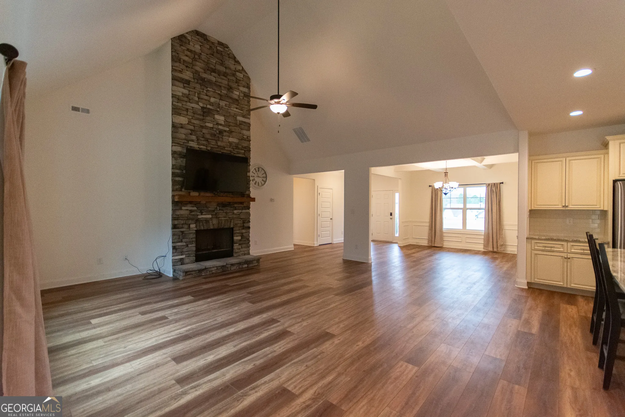 Welcome to a beautifully maintained home tucked away on a quiet cul-de-sac in a desirable community featuring a clubhouse and pool. This spacious two-story residence blends comfort, style, and convenience with a thoughtful master-on-main layout and a fully equipped upper level. Step inside to an inviting main floor offering high ceilings, a stunning custom tray ceiling in the dining room, and an open, split-bedroom design ideal for everyday living. The bright kitchen is a true standout with solid surface counters, a large island, pantry, and a cozy breakfast area. It comes fully outfitted with stainless steel appliances, including a restaurant-grade convection oven, cooktop, microwave, refrigerator, washer, and dryer. The main level hosts 3 bedrooms and 2 full baths, including a spacious primary suite with a double vanity and walk-in closet. A convenient mud room sits just off the kitchen near the garage and laundry space. Head upstairs on the extra-wide staircase to find a versatile bonus area, an additional bedroom, and a full bath-perfect for guests, a teen suite, or a private office. This home also offers tons of storage throughout and the comfort of two HVAC units. Enjoy outdoor living in the fully fenced backyard, complete with a patio and front porch. Parking is easy with an attached garage, off-street parking, and a parking pad. Don’t miss your chance to own this beautiful, well-appointed property in one of Senoia’s favorite communities.