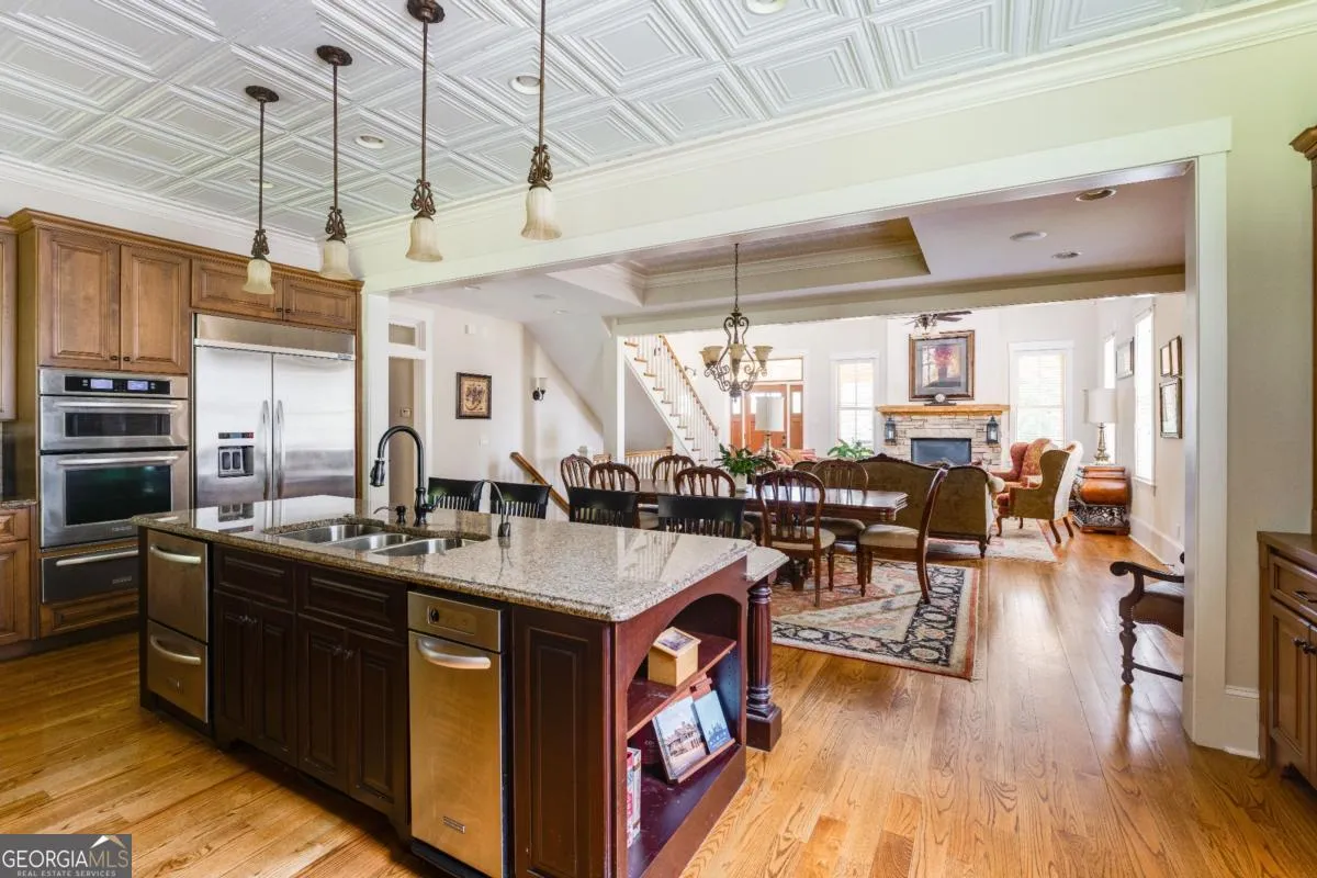 Welcome HOME to this elevated 6 bedroom, 4.5 bathroom chalet in Newnan’s beautiful Arbor Springs community. The two story living room with gas fireplace offer views of the open sky and allow tons of natural light. Easy indoor/outdoor entertainment with covered porches & level backyard-perfect for a future pool. Gourmet kitchen with commercial hood & 5 star stainless steel appliances including 6 burner gas stove top with a griddle, double ovens, convection oven, warming drawer, & instant hot water dispenser can satisfy every chef! Custom wood cabinets plus a butler’s pantry are a showstopper with lighting & creative storage under a beautiful decorative tin ceiling. Granite countertops are low maintenance & island bar offers additional seating & under counter storage. Primary bedroom and en-suite bathroom on main level with separate garden tub & shower, toilet room, double vanity, & his/hers closets. Upstairs has a lofted living room/library with built-in bookcases & two bedrooms that share a Jack & Jill bathroom. Down the hall is a huge bonus room/bedroom with a full private bathroom. The basement has its own private entry and is the perfect 2 bedroom/1 bathroom apartment with a kitchenette for extended family, nanny, home theater, or a private gym. Two Laundry rooms located on main floor and basement apartment. Multiple storage rooms on every level plus a 3 car garage. Bonus: Recently painted interior & exterior, EarthCraft & Energy Star Qualified Home, Whole House Vacuum system & house intercom. Arbor Springs is set in the beautiful Coweta Golf Club & offers loads of amenities including swimming, tennis, playgrounds and is located in award winning Northgate school district and convenient shopping. Only 3 minutes to grocery, 5 minutes to I-85 and 30 minutes to ATL airport. Brilliant move!