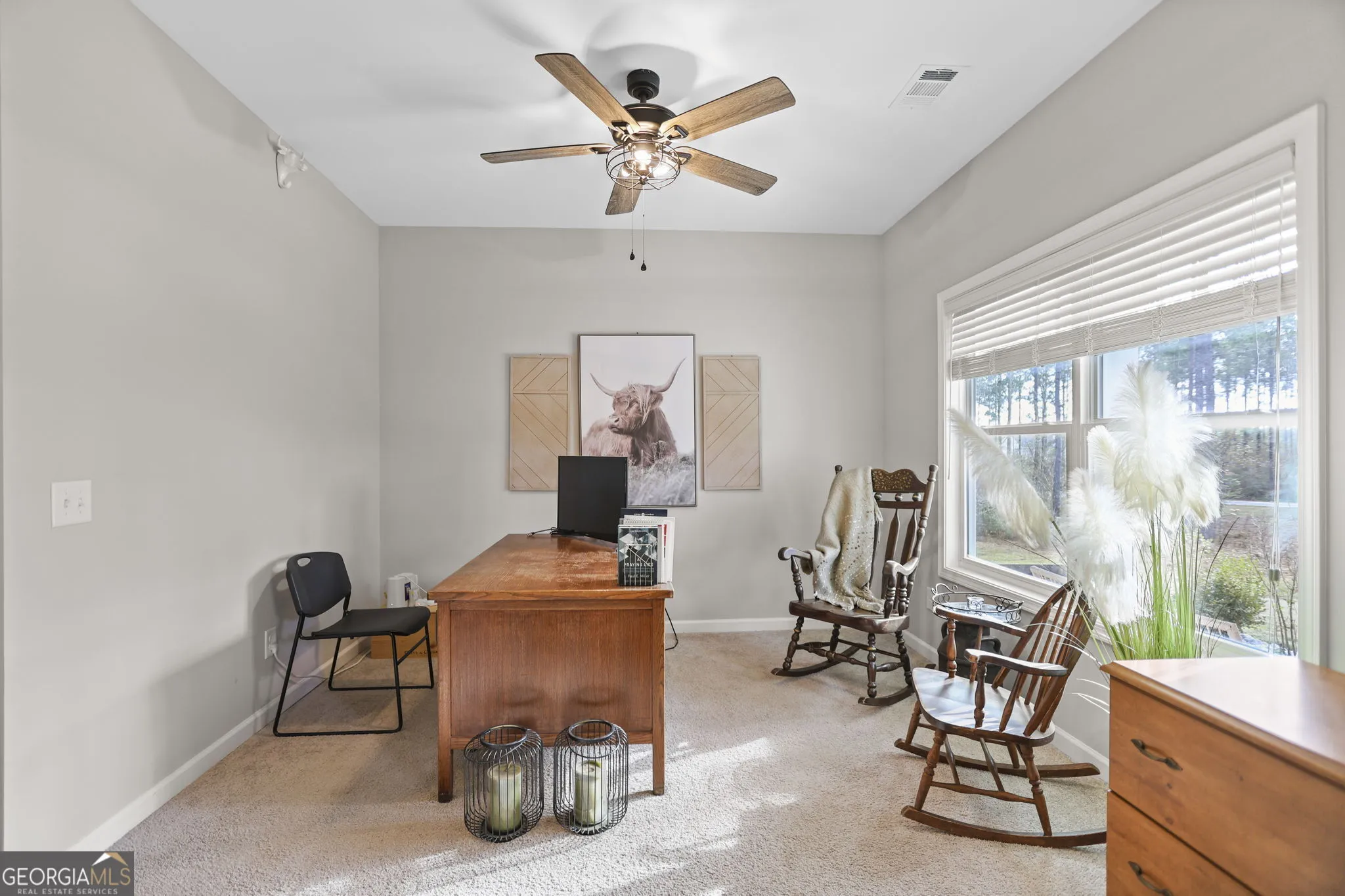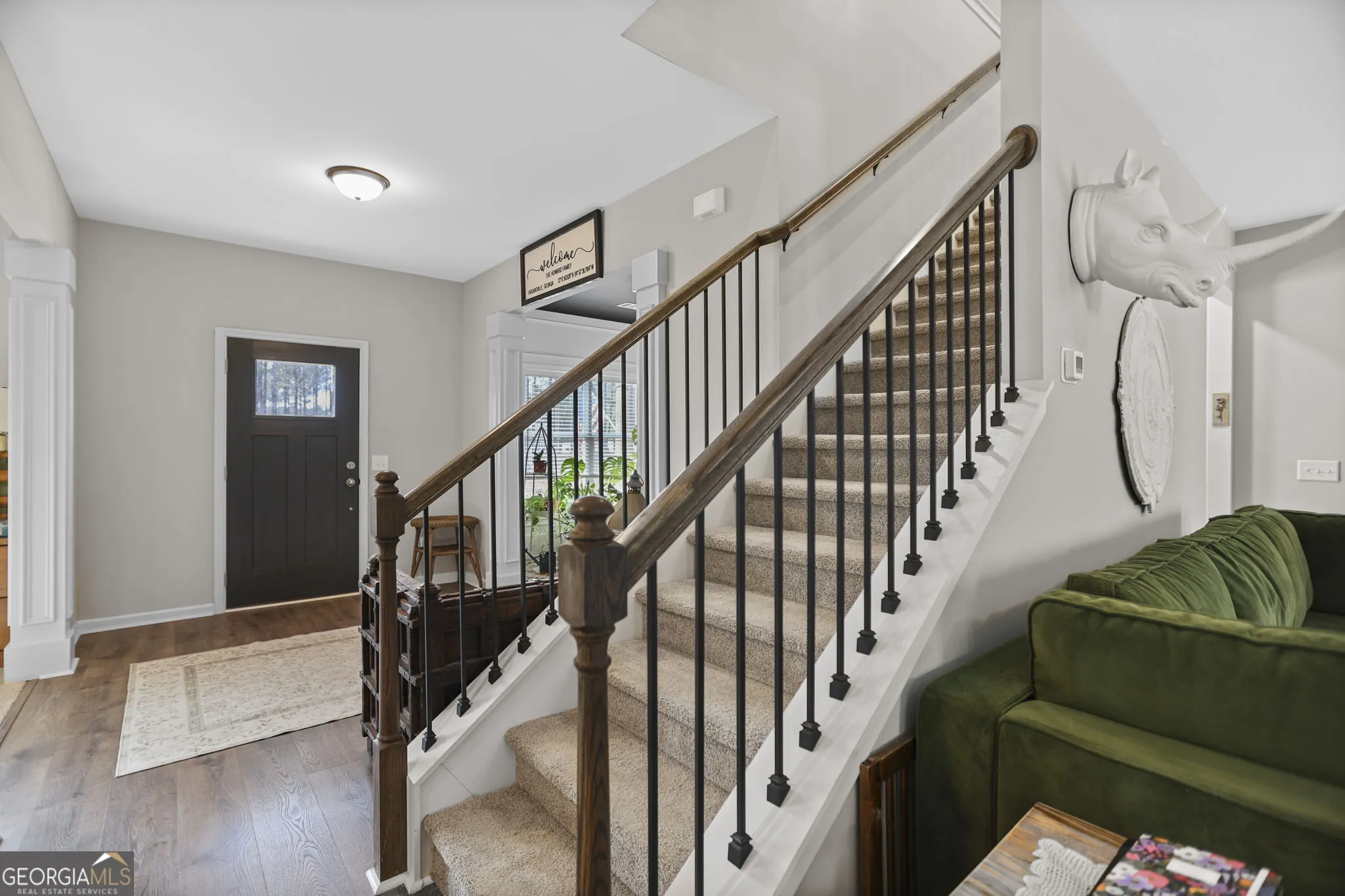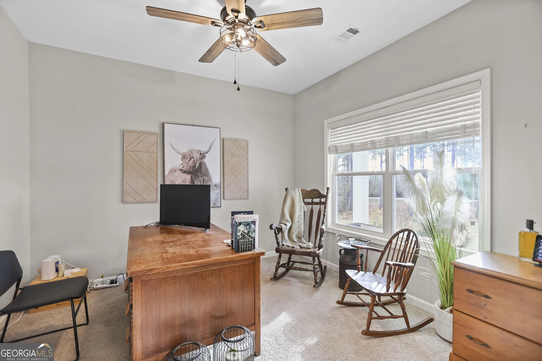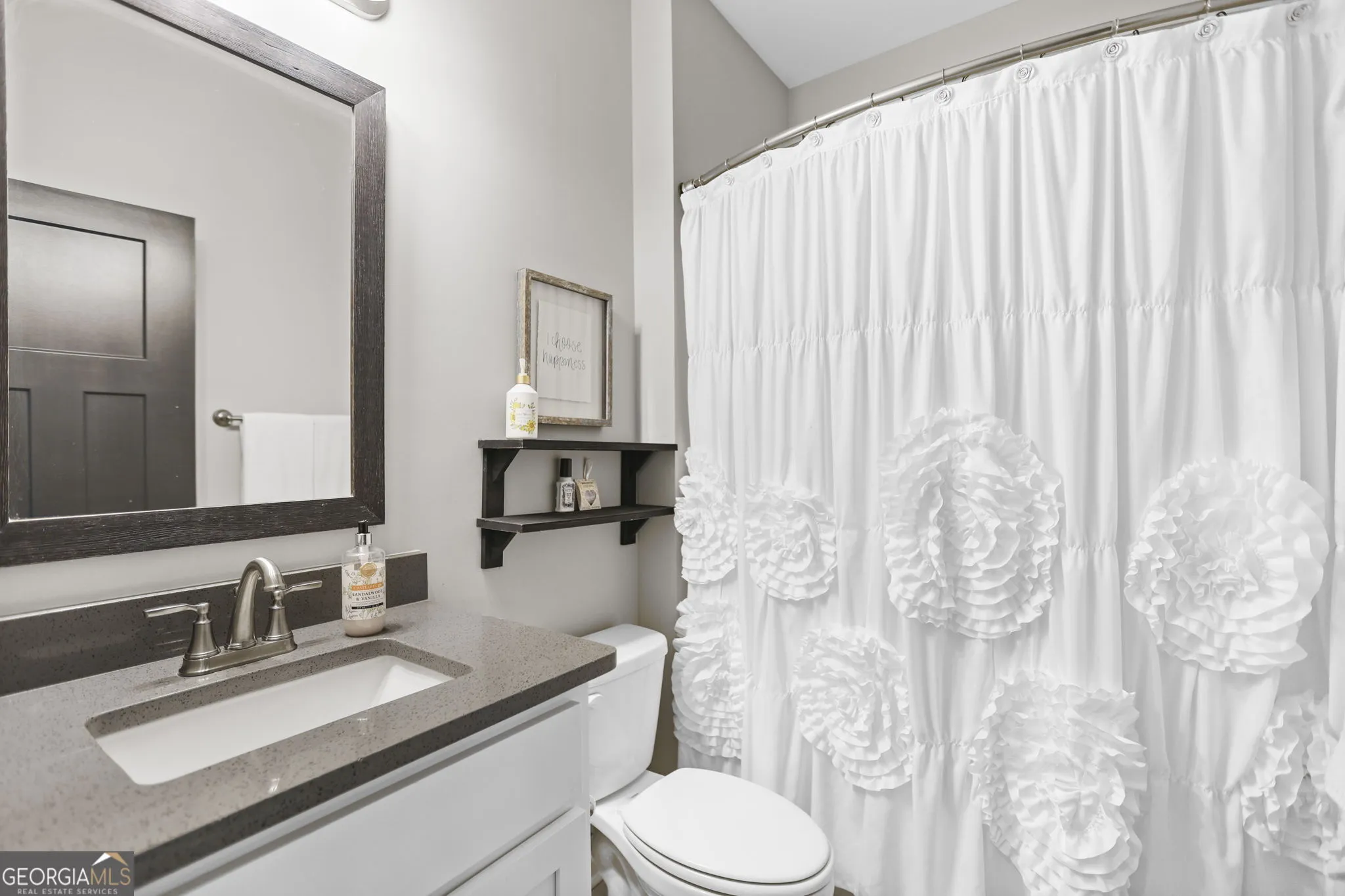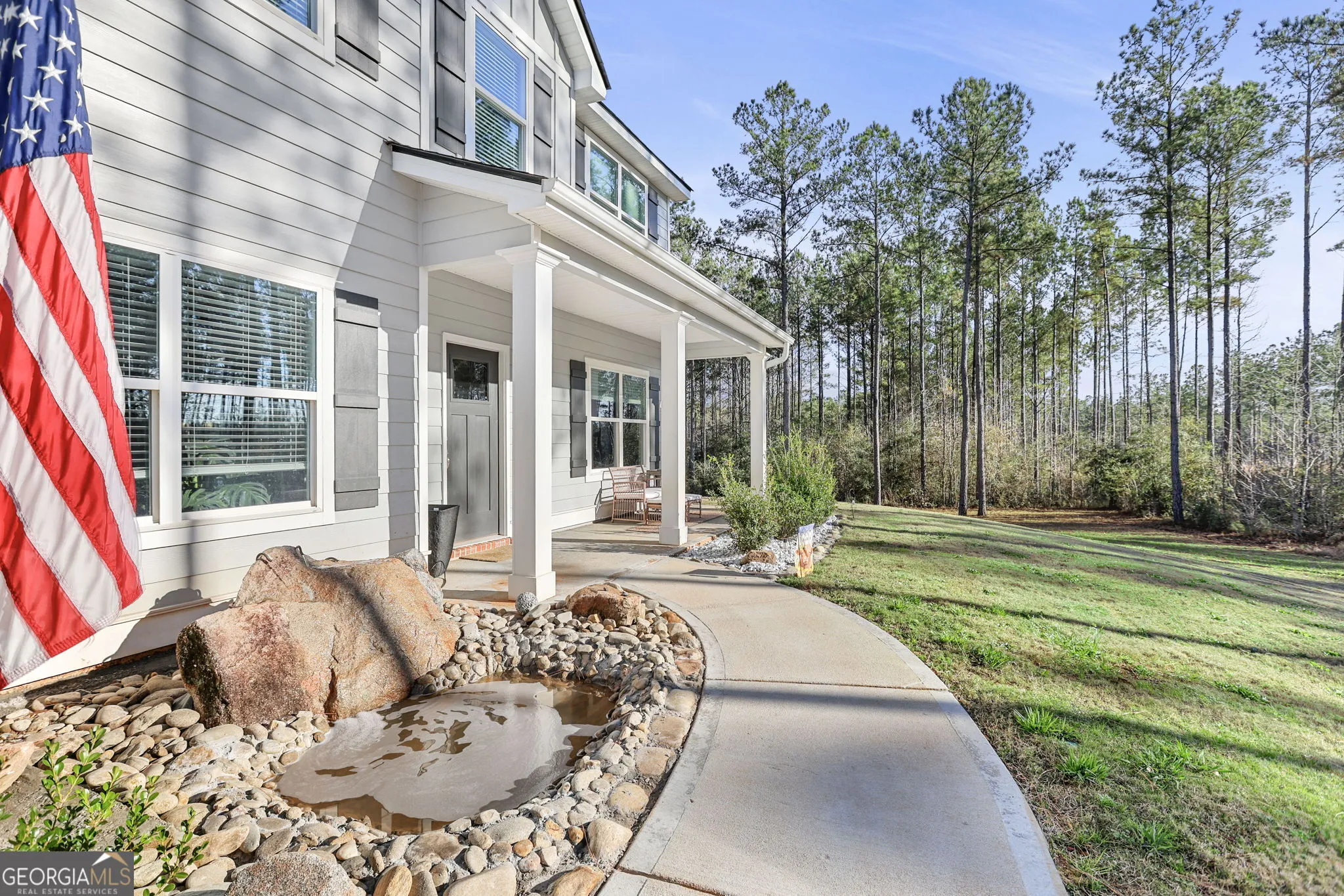 Step inside the welcoming foyer, where beautiful hard surface flooring and refined trim immediately set the tone for the thoughtful craftsmanship found throughout the home. Just off the entry, two versatile rooms offer endless possibilities and are ideal for a home office, formal dining room, or play space tailored to your lifestyle. At the heart of the main level, the spacious family room centers around an elegant fireplace, creating a warm and inviting gathering place. From here, the home flows seamlessly into the kitchen, thoughtfully designed with solid surface countertops, a stylish tile backsplash, stainless steel appliances, and abundant storage including a generous pantry. A guest bedroom is conveniently located on the main level, with a full bathroom just outside the room, offering comfort and accessibility for visitors. Upstairs, the oversized primary suite serves as a peaceful retreat and features a beautifully tiled bath and a striking walk in shower. Two additional bedrooms share a well appointed full bath, while a spacious secondary living area provides exceptional flexibility for a media room, homework zone, or creative space. Hard surface flooring enhances much of the main level, and carefully selected details throughout the home add both charm and everyday functionality. Outdoor living truly shines here. A covered rear patio opens to a private backyard oasis highlighted by an inground sports pool with a premium PebbleTec finish, surrounded by CoolCrete surfaces designed for durability and barefoot comfort and ideal for hot Georgia summers. Whether relaxing poolside or hosting gatherings, this outdoor space is designed for enjoyment. Beyond the pool, a generous thirty by thirty foot shop with power offers endless possibilities for woodworking, storage, or hobbies. The exterior of the home features durable fiber cement siding, architectural shingles, and Low E windows, all contributing to excellent energy efficiency and long term value. Blending comfort, craftsmanship, and exceptional outdoor amenities, this property offers a lifestyle you will enjoy for years to come.