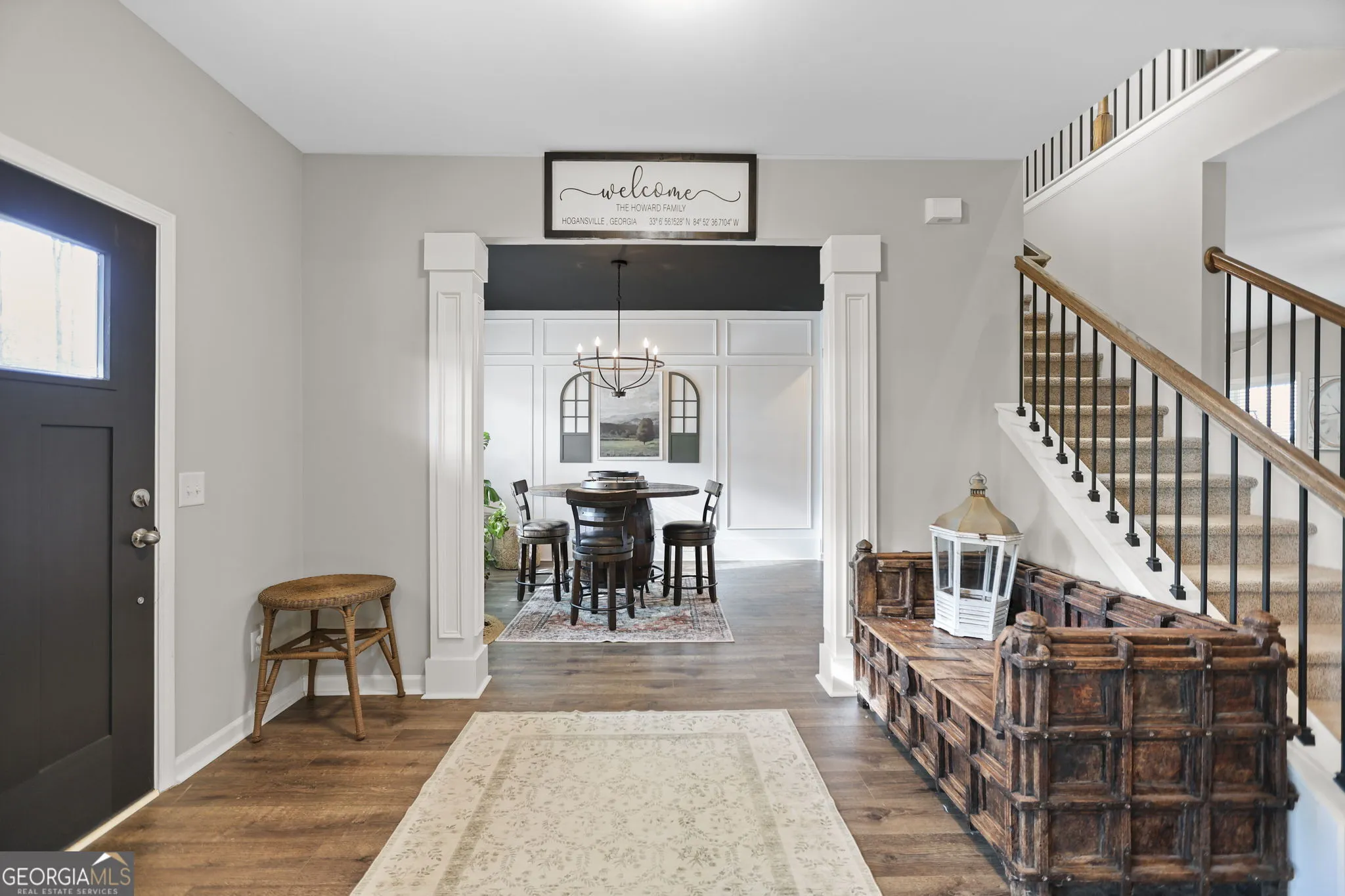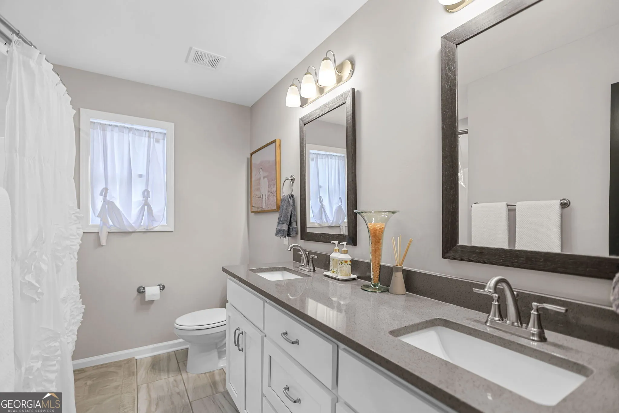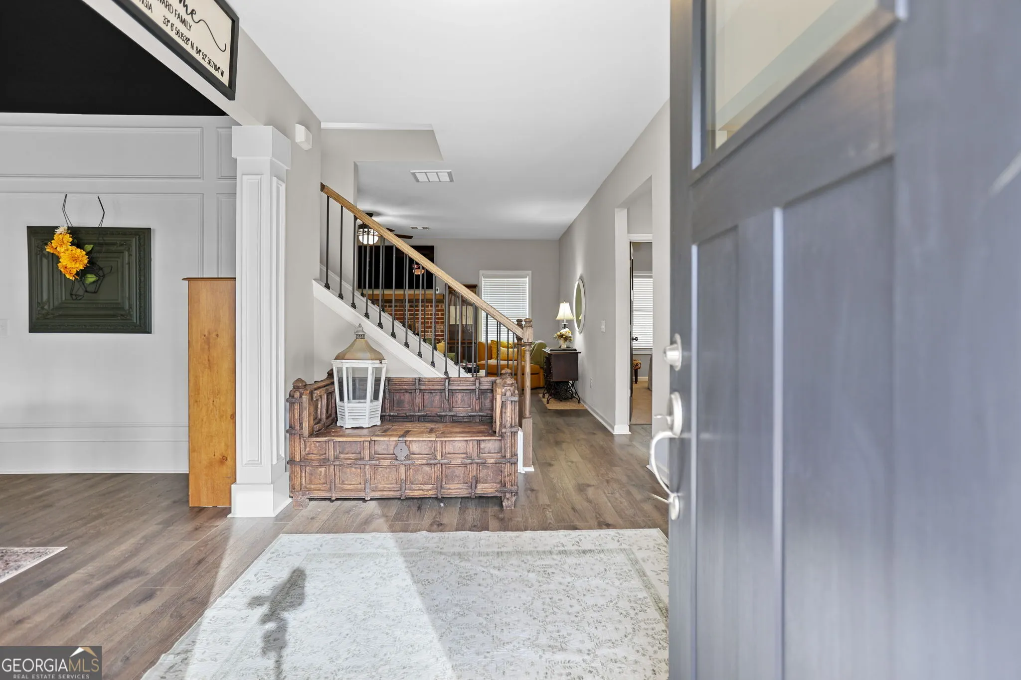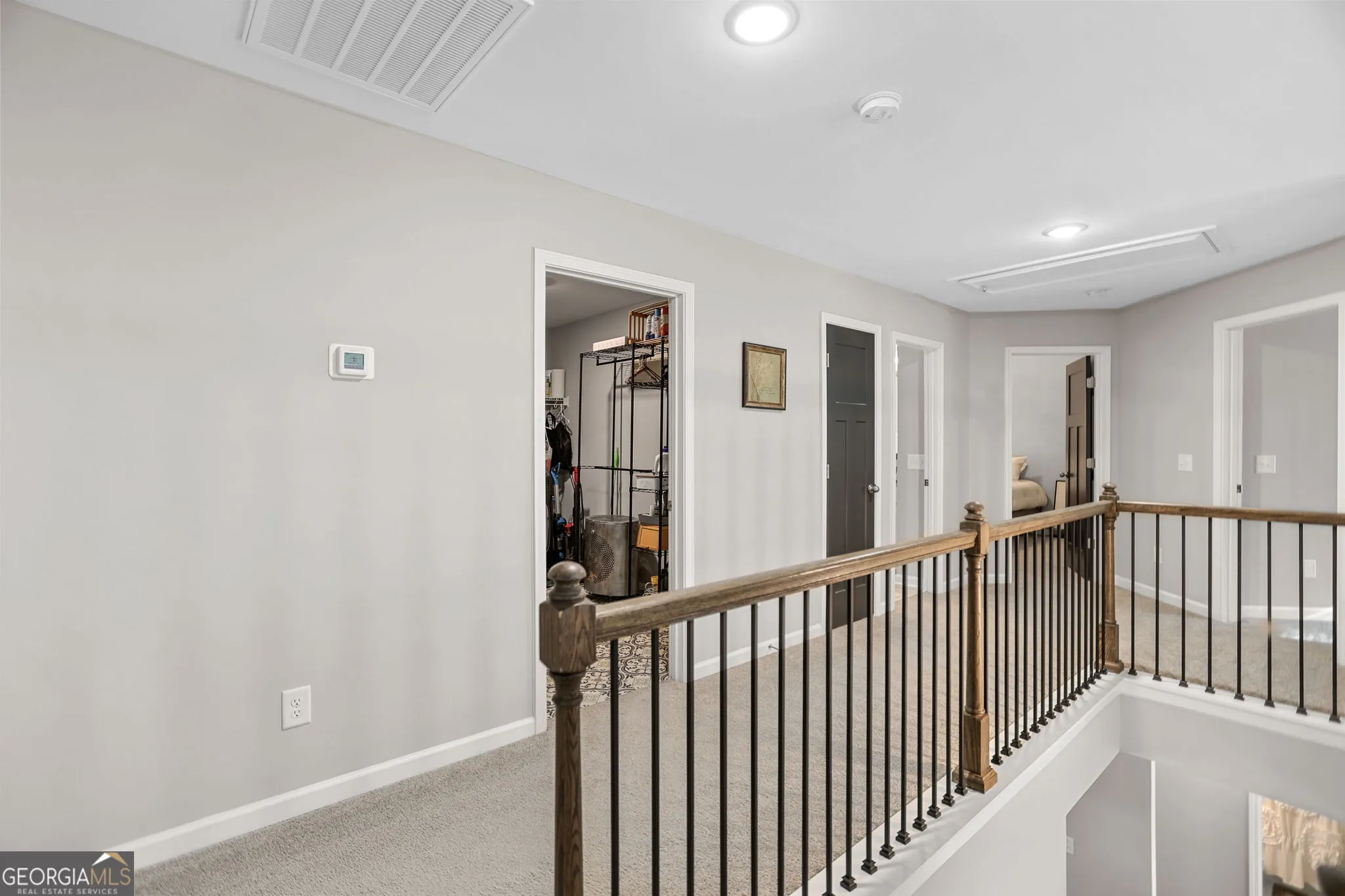 Step inside the welcoming foyer, where beautiful hard surface flooring and refined trim immediately set the tone for the thoughtful craftsmanship found throughout the home. Just off the entry, two versatile rooms offer endless possibilities and are ideal for a home office, formal dining room, or play space tailored to your lifestyle. At the heart of the main level, the spacious family room centers around an elegant fireplace, creating a warm and inviting gathering place. From here, the home flows seamlessly into the kitchen, thoughtfully designed with solid surface countertops, a stylish tile backsplash, stainless steel appliances, and abundant storage including a generous pantry. A guest bedroom is conveniently located on the main level, with a full bathroom just outside the room, offering comfort and accessibility for visitors. Upstairs, the oversized primary suite serves as a peaceful retreat and features a beautifully tiled bath and a striking walk in shower. Two additional bedrooms share a well appointed full bath, while a spacious secondary living area provides exceptional flexibility for a media room, homework zone, or creative space. Hard surface flooring enhances much of the main level, and carefully selected details throughout the home add both charm and everyday functionality. Outdoor living truly shines here. A covered rear patio opens to a private backyard oasis highlighted by an inground sports pool with a premium PebbleTec finish, surrounded by CoolCrete surfaces designed for durability and barefoot comfort and ideal for hot Georgia summers. Whether relaxing poolside or hosting gatherings, this outdoor space is designed for enjoyment. Beyond the pool, a generous thirty by thirty foot shop with power offers endless possibilities for woodworking, storage, or hobbies. The exterior of the home features durable fiber cement siding, architectural shingles, and Low E windows, all contributing to excellent energy efficiency and long term value. Blending comfort, craftsmanship, and exceptional outdoor amenities, this property offers a lifestyle you will enjoy for years to come.