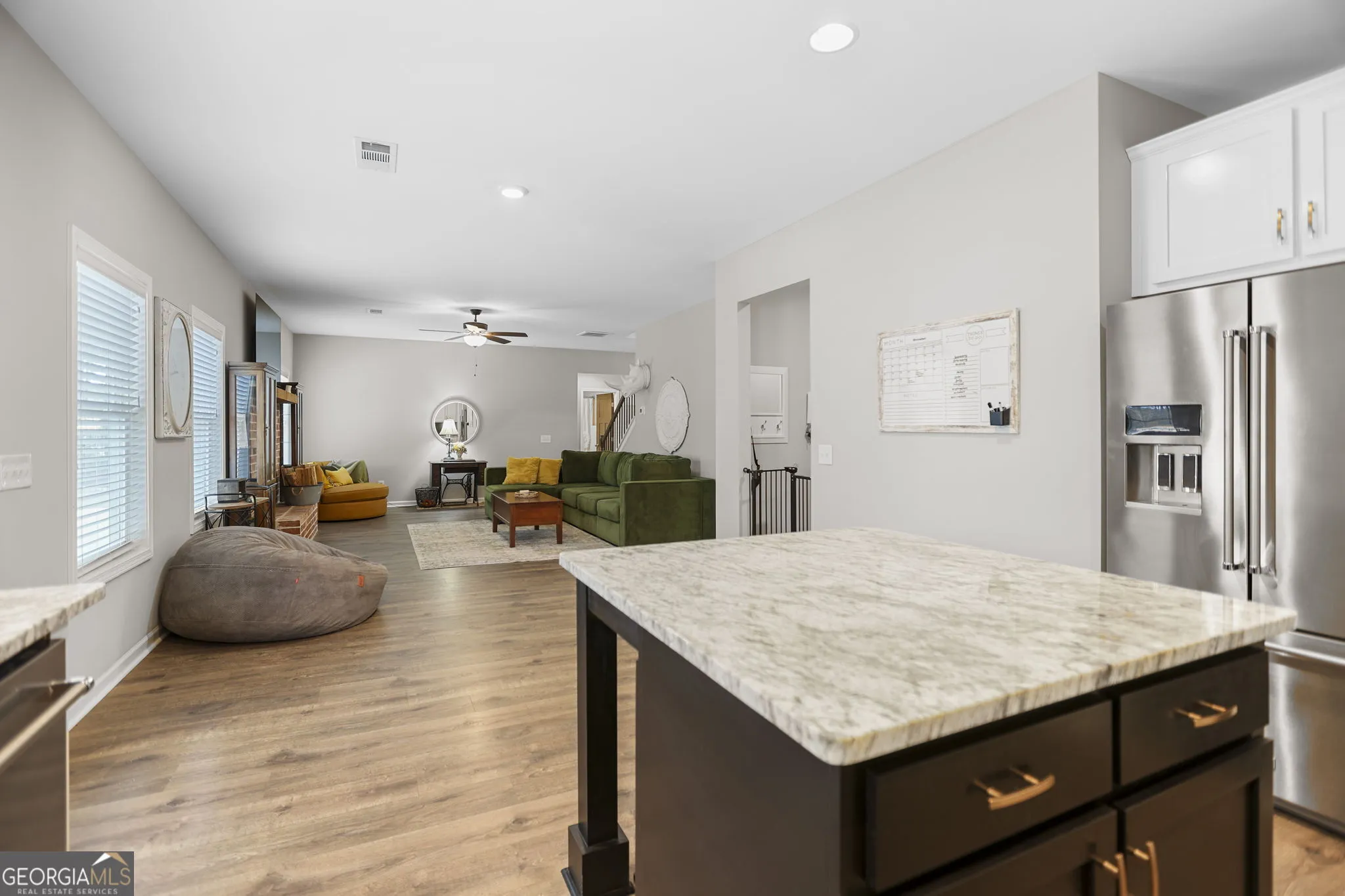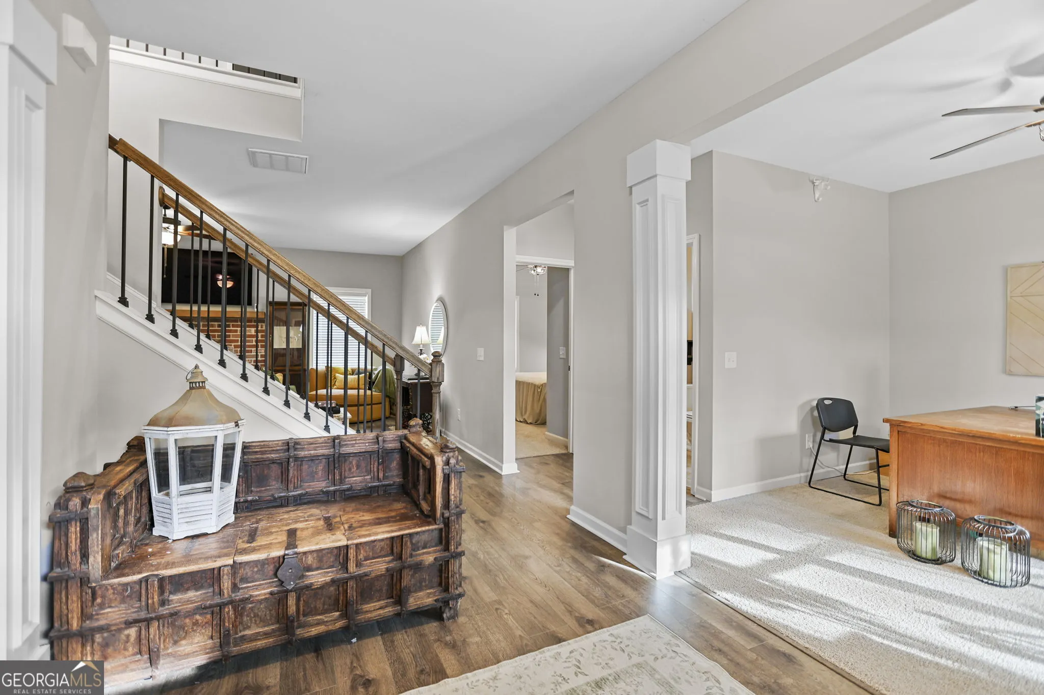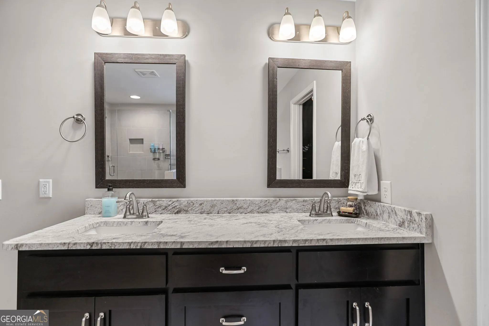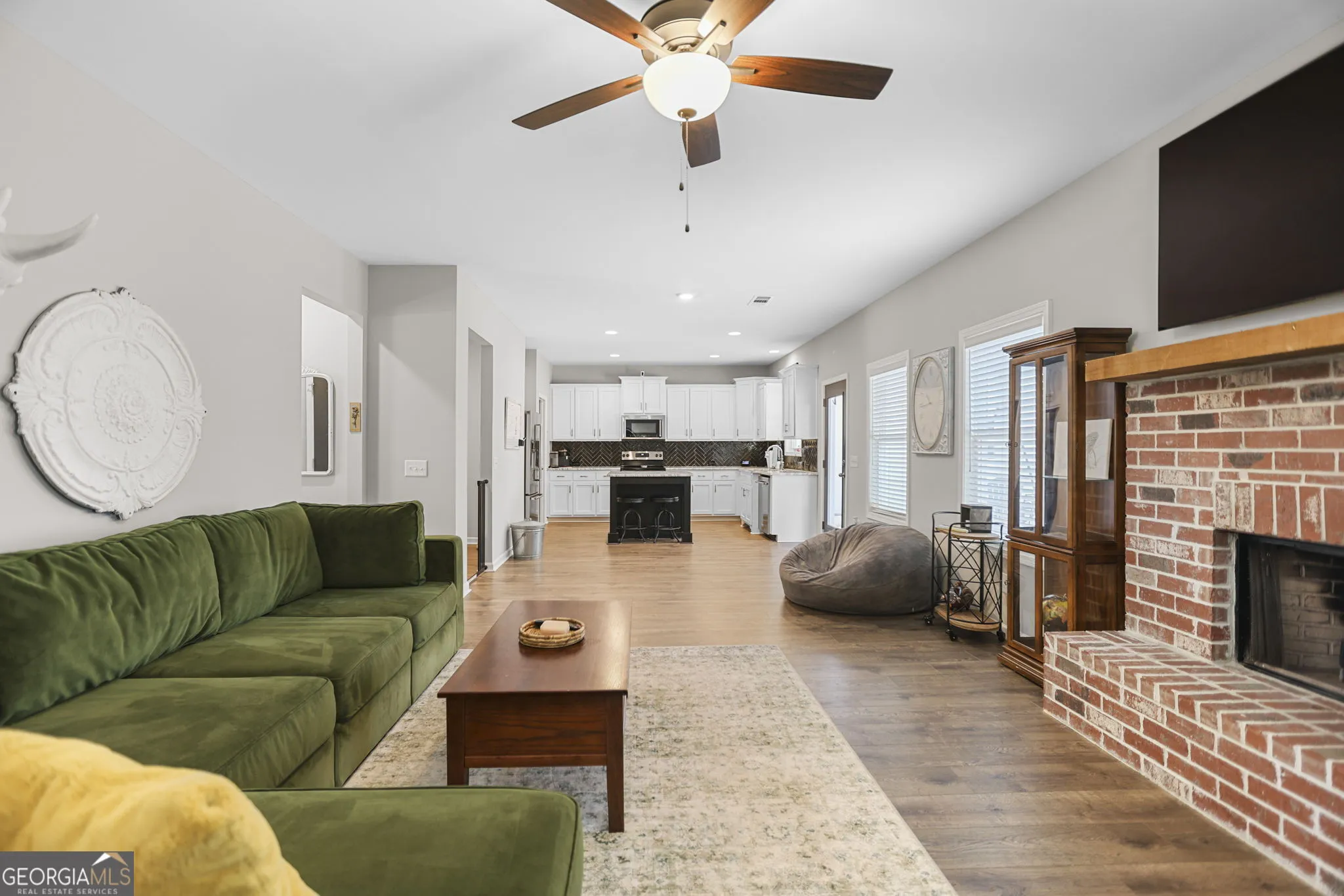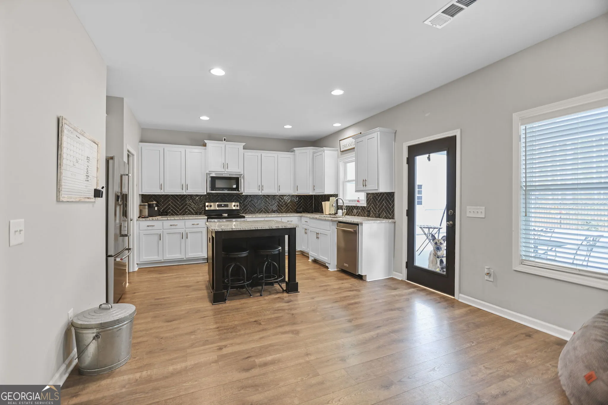 Step inside the welcoming foyer, where beautiful hard surface flooring and refined trim immediately set the tone for the thoughtful craftsmanship found throughout the home. Just off the entry, two versatile rooms offer endless possibilities and are ideal for a home office, formal dining room, or play space tailored to your lifestyle. At the heart of the main level, the spacious family room centers around an elegant fireplace, creating a warm and inviting gathering place. From here, the home flows seamlessly into the kitchen, thoughtfully designed with solid surface countertops, a stylish tile backsplash, stainless steel appliances, and abundant storage including a generous pantry. A guest bedroom is conveniently located on the main level, with a full bathroom just outside the room, offering comfort and accessibility for visitors. Upstairs, the oversized primary suite serves as a peaceful retreat and features a beautifully tiled bath and a striking walk in shower. Two additional bedrooms share a well appointed full bath, while a spacious secondary living area provides exceptional flexibility for a media room, homework zone, or creative space. Hard surface flooring enhances much of the main level, and carefully selected details throughout the home add both charm and everyday functionality. Outdoor living truly shines here. A covered rear patio opens to a private backyard oasis highlighted by an inground sports pool with a premium PebbleTec finish, surrounded by CoolCrete surfaces designed for durability and barefoot comfort and ideal for hot Georgia summers. Whether relaxing poolside or hosting gatherings, this outdoor space is designed for enjoyment. Beyond the pool, a generous thirty by thirty foot shop with power offers endless possibilities for woodworking, storage, or hobbies. The exterior of the home features durable fiber cement siding, architectural shingles, and Low E windows, all contributing to excellent energy efficiency and long term value. Blending comfort, craftsmanship, and exceptional outdoor amenities, this property offers a lifestyle you will enjoy for years to come.