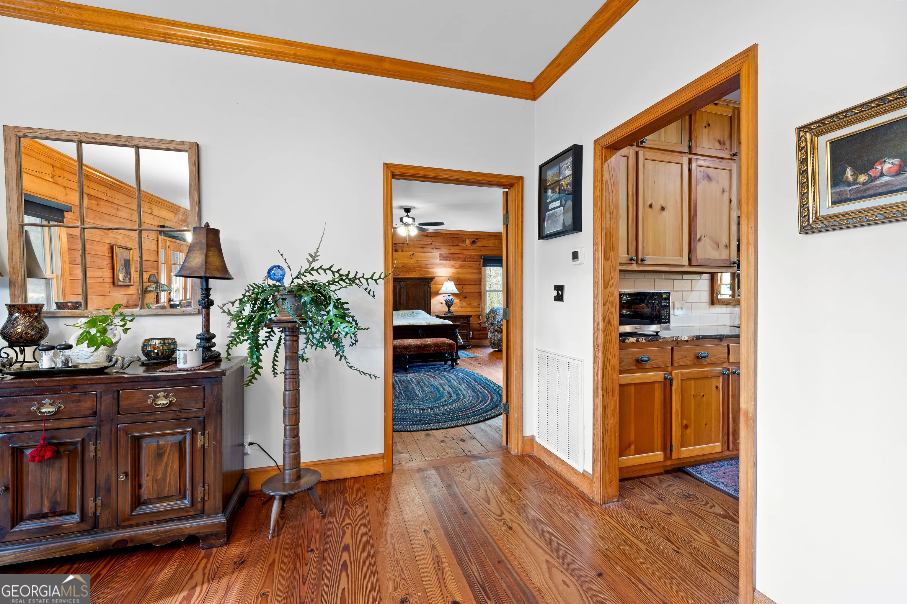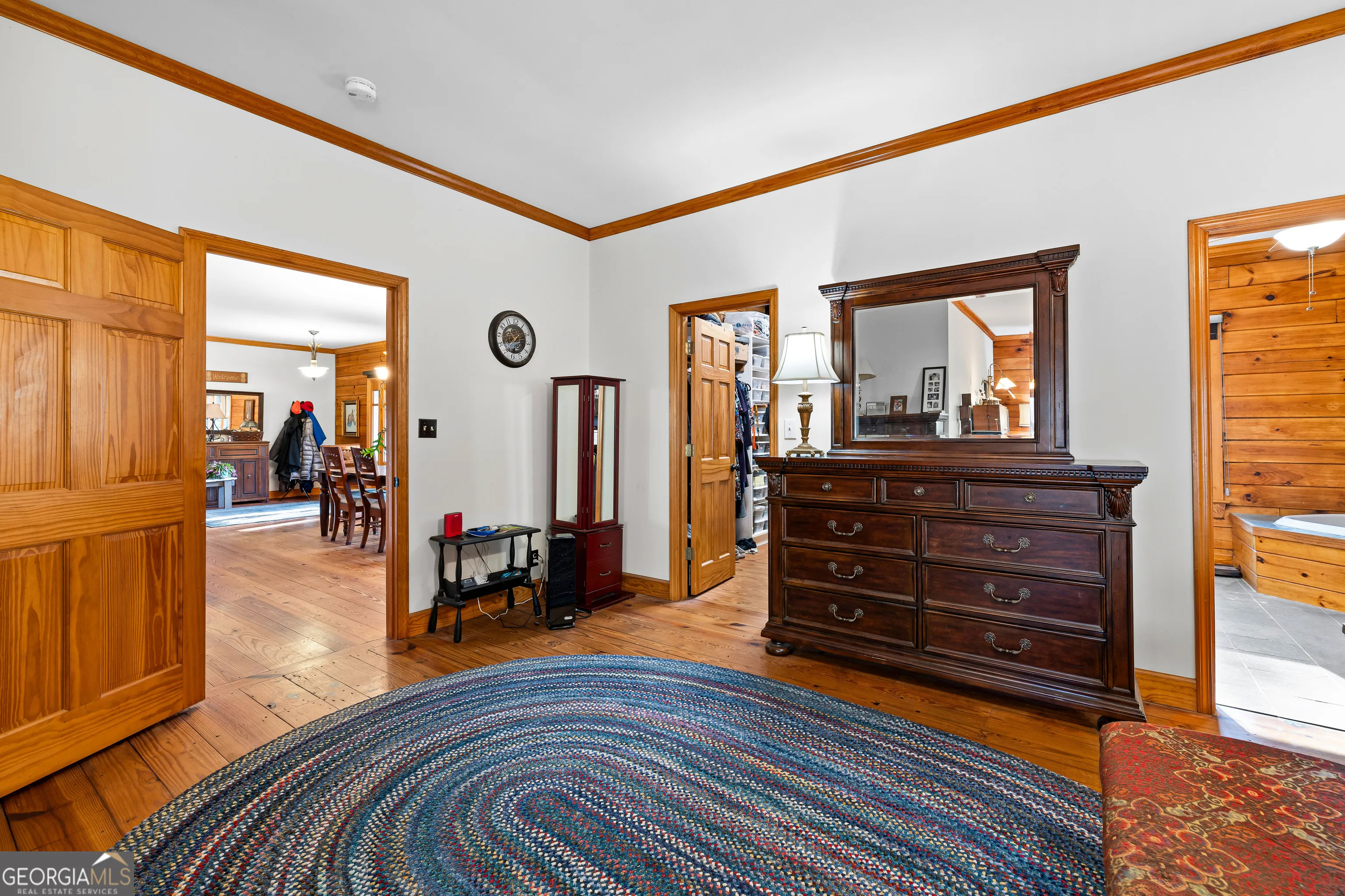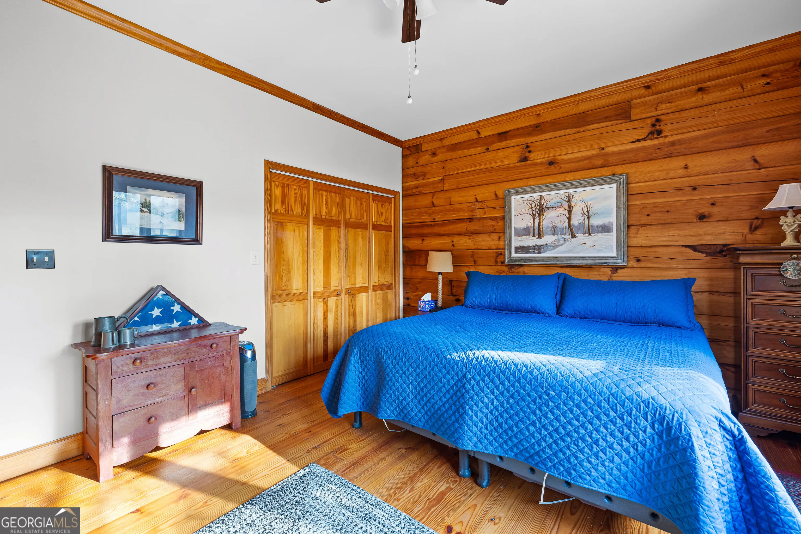 Tucked away on just under 20 acres, this beautifully crafted 2,528 sq ft log home offers privacy, natural surroundings, and thoughtfully designed outdoor living. Located in Meriwether County, near the Troup County line, the property provides a peaceful rural setting with a long private drive leading to a gazebo, saltwater pool, and multiple outdoor structures ideal for storage, equipment, or recreational use. While remaining approximately 6 miles to Interstate 85. Inside, the home offers an open floor plan with vaulted ceilings, exposed beams, and a spacious main living area anchored by a floor-to-ceiling stacked stone fireplace. Large windows provide abundant natural light and showcase views of the surrounding acreage. The kitchen serves as the heart of the home, featuring an oversized granite island with seating, extensive cabinetry, and ample workspace. It flows seamlessly into the living area, creating an ideal layout for gathering, entertaining, or everyday living. A finished two-room bonus area behind the carport provides an additional estimated 280 sq ft of heated and cooled flexible space suitable for an office, studio, gym, or additional storage needs. The outdoor living includes front and rear porches with peaceful, scenic views, while the rear of the home is overlooking the saltwater pool and shared lake with dock. A covered patio connects the home to the outdoor living area, while a pole barn with a wired workshop adds valuable utility space. With nearly 20 acres of open fields, mature trees, and total privacy, this property offers plenty of space for recreation, hobbies, and peaceful rural living in a truly magnificent setting.