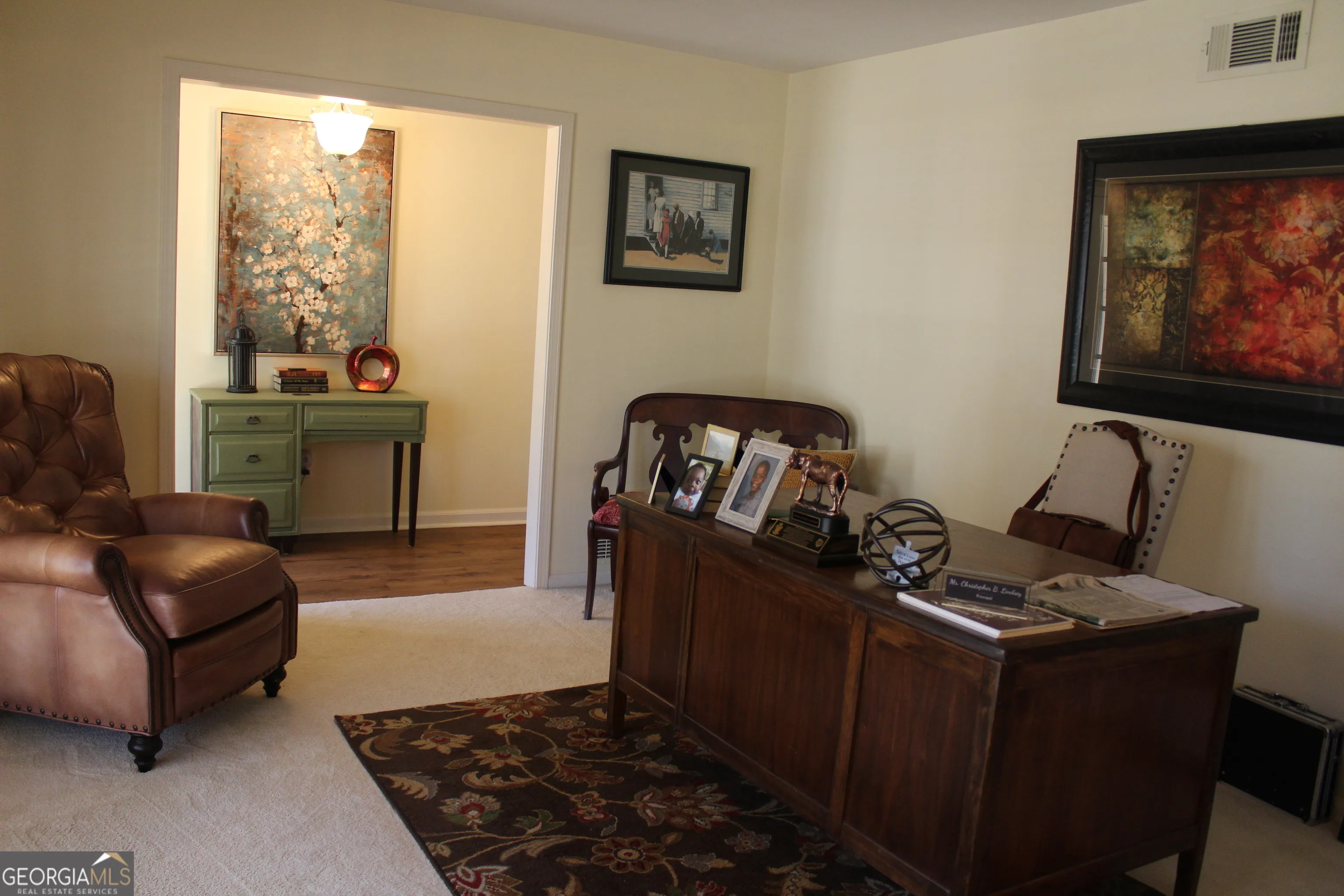 Well-maintained and full of charm, this 4-bedroom, 2-bath brick ranch is nestled in the established Windsor Park subdivision and offers just over 2,000 square feet of comfortable, single-level living. A shaded front porch sets the tone-perfect for rocking chairs and quiet mornings. Inside, LVP flooring flows through the main living spaces, connecting formal living and dining rooms with a warm, inviting family room anchored by a wood-burning fireplace. The kitchen is both functional and welcoming, featuring granite countertops, ample cabinet and counter space, and a bright breakfast area framed by a bay window overlooking the back patio. A side entry opens into a spacious laundry and mudroom, adding everyday convenience. The living room extends into a four-seasons sunroom, offering peaceful views of the backyard and creating an ideal space to relax year-round. Outside, the approximately .32-acre lot is beautifully manicured with blooming perennials that come alive in the spring and summer, while a sprinkler system makes upkeep effortless. The backyard also features a patio, and storage outbuilding-perfect for entertaining or quiet evenings at home. Conveniently located near Heath Park and the lake, with easy access to walking and biking trails, as well as nearby schools, shopping, and dining.