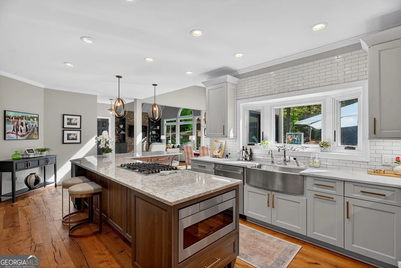 COMING SOON! Beautiful home in prestigious Moss Creek S/D. Remodeled and updated by Splash of Lagrange, this home welcomes you as you enter the stately front door into a two story foyer. Enter into the gourmet kitchen and find beautiful quartz countertops, Jenn Aire appliances, soft close drawers and cabinets and many extras found in high end chef’s kitchens. Open floor plan opens up to a large breakfast room and spacious family room with fireplace and bookcases and spectacular view through new Renewal by Andersen Windows overlooking guinite heated pool and spa. Pool has an automatic pool cover and new heater and filtration system. Outside pool house has cozy seating area with storage, half bath and shower with hot and cold water with a Rinnae tankless water heater. Other features downstairs include a bar, formal living room and dining room and downstairs bedroom (with Murphy bed included or can be stored and used as a playroom) adjoining a full bath. Easy to care for Oiled hardwood flooring is featured in main living areas and main bedroom. Many extras including Velux skylights with remote control shades. Back staircase leads to large master bedroom with large walk in closet and master bath with separate tub and shower and double sinks. Upstairs has additional two large bedrooms with jack and jill bath. Home also has a finished basement including an office and large rec room area with luxury vinyl flooring and ample storage area. Roof is 4 years old and gutters replaced with covers. An additional feature is the Generac whole house generator installed in 2024. Moss Creek is a pool, tennis and clubhouse neighborhood with a community dock on West Point Lake. Restrictive covenants keep the neighborhood one of the most desired in the area!