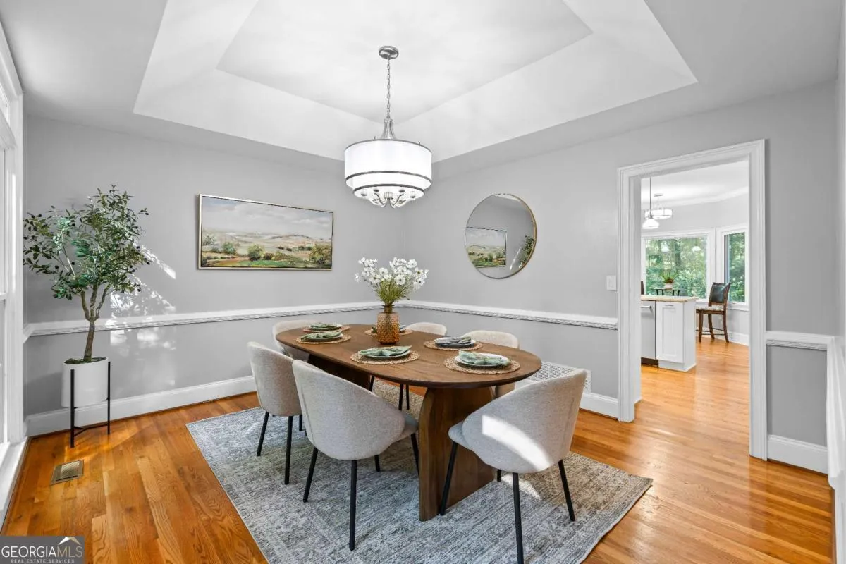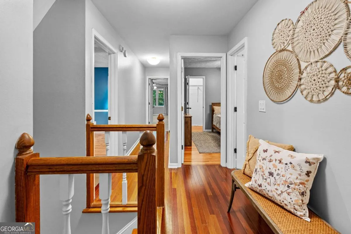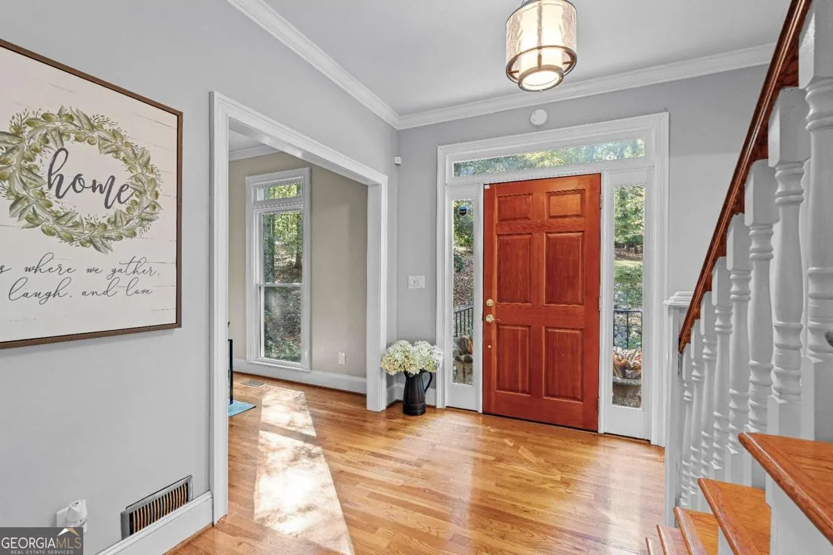 Move-in ready and beautifully renovated, this 2-story home offers 4 spacious bedrooms, 3.5 baths, and a fully finished basement with potential for multi-generational living or flexible use. The main level features a versatile living/flex room, formal dining room, and a newly remodeled eat-in kitchen with KitchenAid stainless steel appliances, quartz countertops, 42-inch cabinets with built-in organization (spices rack & utensil cabinets) , and bay windows overlooking the double deck with gorgeous, tranquil private view. A spacious family room with fireplace and built-in bookcases opens to a stunning all-season sunroom with vaulted ceilings and abundant natural light. Throughout the home, enjoy 9-foot ceilings, crown molding, hardwood, tile, and slate flooring, and neutral fresh paint. The oversized owner’s suite is a private retreat with tray ceilings, dual vanities, soaking tub, generously sized glass-enclosed tile shower, and walk-in closet. Don’t forget to check out the hidden private office and attic access. Secondary bedrooms are generously sized, including a large fourth bedroom/bonus room with rear staircase-perfect private suite. Finished basement offers endless possibilities; second family room with fireplace, full bathroom, 2 addition rooms that can be bedrooms/gym/ game/media space, and includes an exterior and interior entry, covered porch, and extra garage/workshop. Additional updates include 33 maintenance-free windows and a new HVAC system. Located in the highly sought-after Whitewater school district, with community amenities including a pool, clubhouse, and playground-just 35 minutes from Hartsfield-Jackson Atlanta International Airport. This impeccably maintained home blends elegance, comfort, and functionality. Don’t miss this exceptional opportunity!