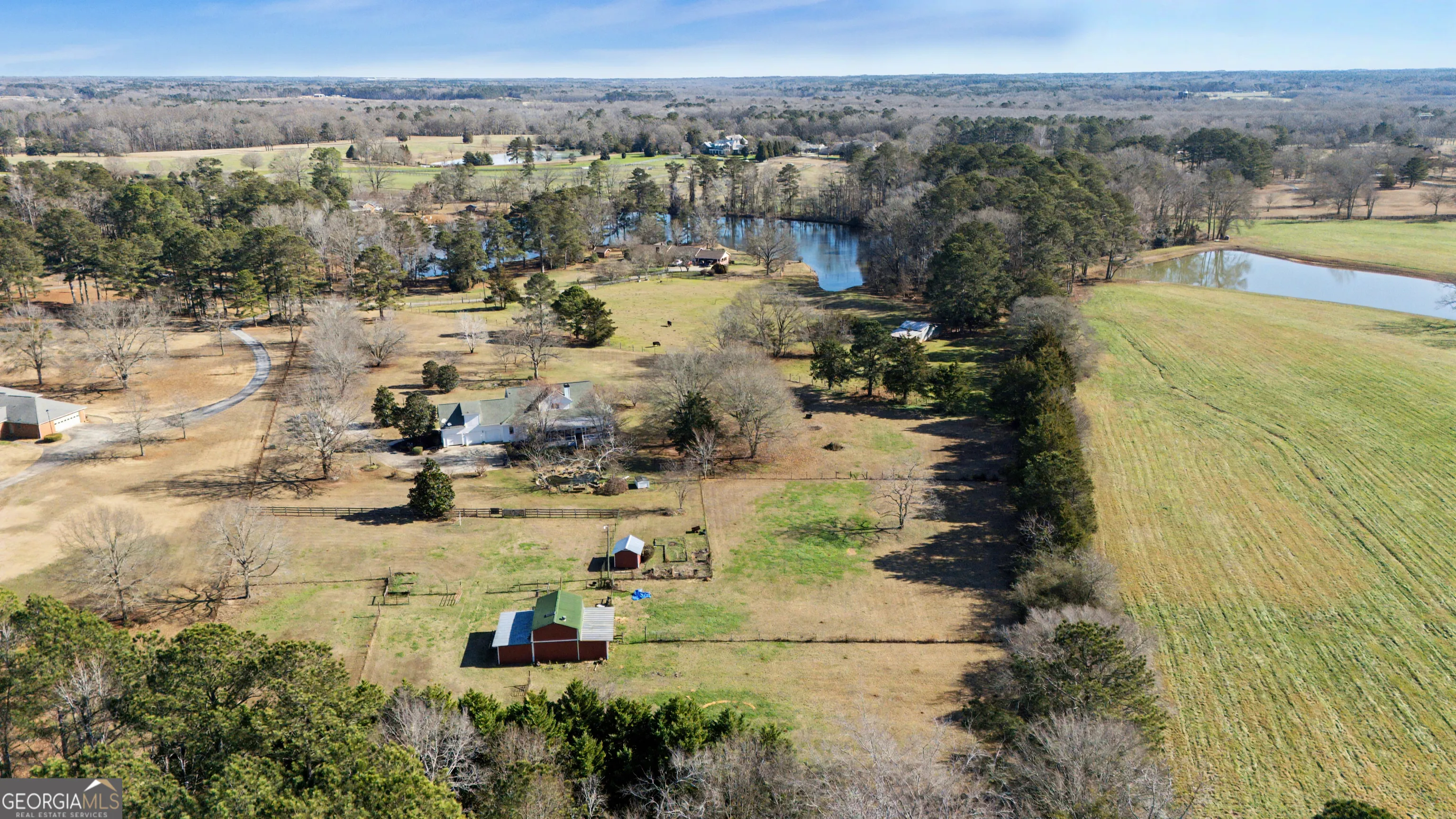 An exceptional opportunity to own a beautifully maintained estate on 5.6 picturesque acres in desirable South Fayette County. Surrounded by six fenced pastures, this stunning property offers privacy, serenity, and timeless charm, thoughtfully designed and lovingly cared for by the original owners. From the moment you enter through the electric gated drive, you’re welcomed by a peaceful, tree-lined approach that instantly sets the tone for relaxation and country living at its finest. The inviting rocking chair front porch, overlooking the manicured grounds and pastures, is the perfect place to unwind and take in the beauty of the property. Step inside to a two-story foyer with hardwood flooring, creating an elegant first impression. To the right, the formal dining room features hardwood floors, crown molding, and double chair rail-ideal for hosting memorable gatherings. The bright, open kitchen is a true centerpiece, offering abundant cabinetry, quartz countertops, tile backsplash, stainless steel appliances, double ovens, recessed lighting, a walk-in pantry, breakfast bar, and a charming bay window breakfast area with hardwood flooring. The entertaining family room is warm and inviting with hardwood floors, crown molding, ceiling fan, stone-surround fireplace, wet bar with custom cabinetry and bookshelves, and a convenient coat closet. From here, step out onto the screened porch and enjoy breathtaking views of the manicured lawn, pastures, and tranquil pond-an ideal setting for morning coffee or evening relaxation. The primary suite on the main level offers a private retreat with crown molding, ceiling fan, and direct access to the deck. The spa-inspired primary bath features tile flooring, soft-close cabinetry with granite countertops, a tile walk-in shower with dual shower heads, marble-surround Jacuzzi tub, and a spacious walk-in closet. A guest bedroom on the main level includes a walk-in closet and ceiling fan, along with a full hallway bathroom featuring granite counters, soft-close cabinetry, hardwood flooring, and a tile tub/shower combination. Upstairs, you’ll find two oversized bedrooms, each with double-door closets and attic access for additional storage, along with a full bathroom offering tile flooring, dual sinks, cultured marble vanity, and a tile tub/shower combination. A bonus room provides flexible space for recreation, a home office, or media room. A second, private staircase leads to an additional suite area, complete with a ceiling fan, walk-in closet, more attic storage, and a full bathroom with tile flooring and a tub/shower combination-perfect for extended family, guests, or a private retreat. Additional features include a mudroom off the kitchen with tile flooring and built-in storage, a three-car garage with new doors, two-story barn with hay loft, storage building, koi pond, six fenced pastures, covered deck area, screened porch, three HVAC units, two septic tanks, propane tank, drilled well, alarm/security system, and numerous updated windows. Move-in ready and rich with possibilities, this remarkable property offers the perfect blend of comfort, functionality, and peaceful country living-while still being conveniently located. A truly special place to call home.