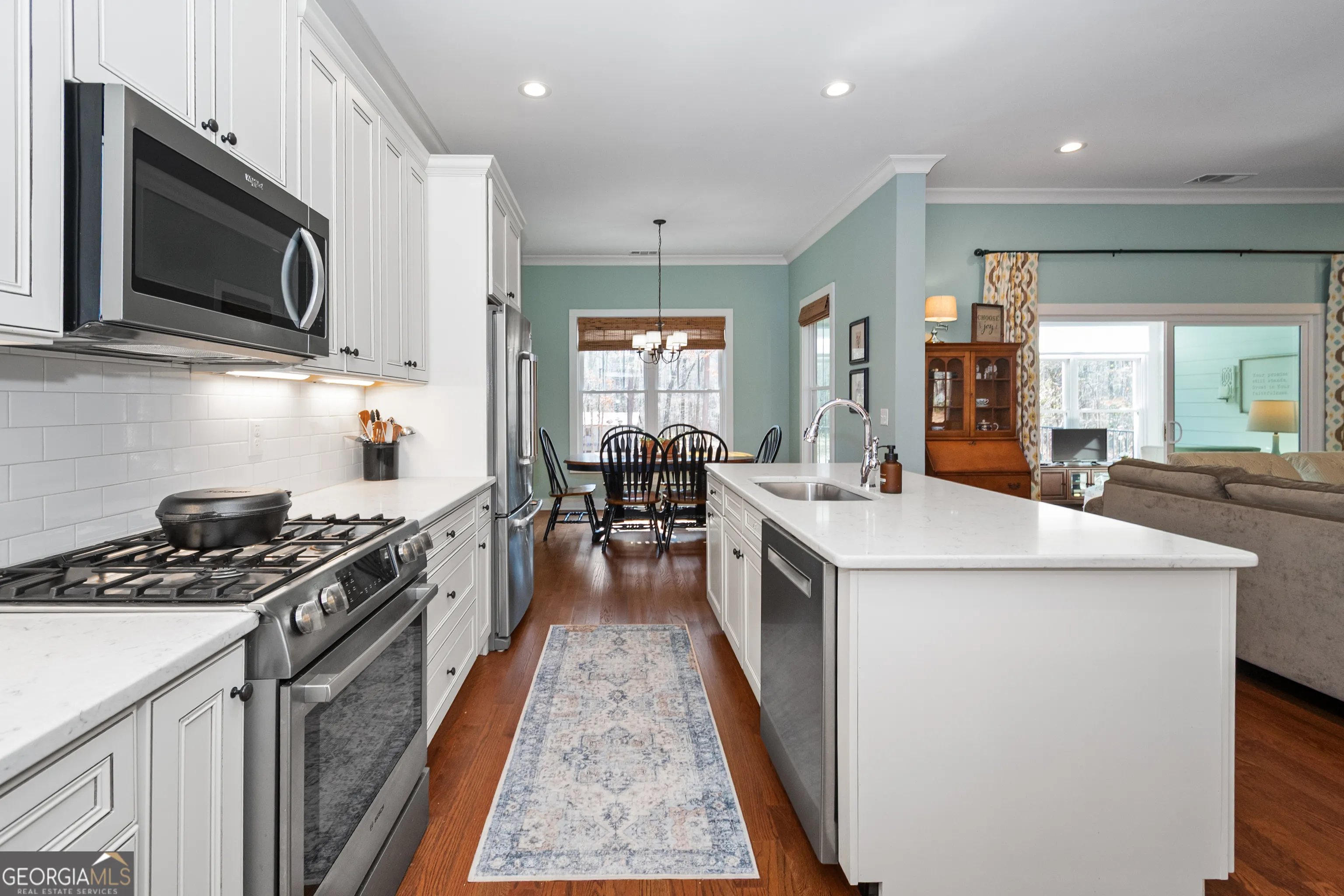 Immaculate , Super clean & like new, move in ready, Custom built in 2018, Ranch style home with 4 bedrooms & 3 full baths total with 1 bedroom & 1 full bath suite upstairs, on 2.4 Level, private acres in the desirable South Fayette County area. This is it! Starting with the inviting, extended, vaulted covered front porch with area for your rocking chairs you will see the home has 4 sides brick exterior half the way up the home then Hardie plank concrete siding the top half for low maintenance exterior. Entering in the home, which is light & bright from the natural light & the 10 foot interior ceilings you will see all real hardwood flooring in like new condition throughout the home (everywhere but the tiled bathrooms). The foyer has 11 foot ceiling entry with a formal dining multiple purpose area to your left. Going forward the floor plan is all open with a large family room with a fireplace that has a wood mantle & tile surround with gas logs. It brings in extra light from the large glass doors leading out the the sunroom which is heated & cooled from its own mini-split heat & air unit. Originally a covered, screened in finished porch, it was enclosed space in 2021 adding an additional 170 finished sq ft. The open Kitchen is large, white & bright with distress finishing on cabinetry with a center island, quartz countertops that has the Stainless steel sink and dishwasher included. Lots of Custom cabinetry throughout the kitchen with tons of quartz countertops space for entertaining & prep space & all hardwood flooring. All cabinets have custom shelving & pull out drawers. The Kitchen has all stainless steel appliances including a gas cooktop, Electric oven, & build in microwave. There is a butler’s pantry prep area & then a pocket door to a separate walk in pantry, all with custom shelving & base cabinets in both. Tons of recessed lighting, smooth ceilings and crown molding through the entire home. Behind the kitchen wall is a hallway with hardwood flooring & custom built in floor to ceiling storage cabinets. Off this hallway is a door leading to the oversized two garage with two separate garage doors with openers, Hardwood stairs that lead up to a large Finished bedroom suite with a closet, a full tiled floor custom bathroom with tiled custom Shower with tile surround to the ceiling. Back down off the main floor back hall there is a door leading to the laundry room with has customer uppers & base cabinet beside the washer and dryer. The laundry room is over sized with extra space, tiled floors and a back entry to the Owners suite custom closet. Also off the back end of this hall is the entry to the Owners Suite, here on the main floor. The hardwoods continue into the large owner suite with 10 foot ceiling with crown molding and a bumped up tray ceiling, large fan with lights. Owner suite bath has tiled flooring throughout. Their is a large Double vanity area with quartz counter tops & dual undermounted sinks, custom cabinets, recessed lighting Separate custom shower all tiled to the ceiling with white subway tile, freshly, professionally cleaned, large floor to ceiling custom glass door, large separate soaking tub & private toilet, water closet area. Walk into the owners closet with custom organizers & shelving. Again the owners closet has a convenient door back entry into the laundry room. The other side of the home on the main floor has a hallway leading to 2 secondary, good size bedrooms and a beautiful custom full hall bathroom which has tiled flooring, Quartz countertop vanity with undermounted sink & custom shower w tile surround. The sunroom has lots of glass windows & glass door which features the private rear deck. The deck flooring is high end, trex deck planks for long life & low maintenance, metal iron railing w steps to the expansive private rear yard. Storage building included. Whitewater High School dist. Tankless water heater. Propane gas heat. No HOA restrictions. Occupied use showingtime for appt. PLS