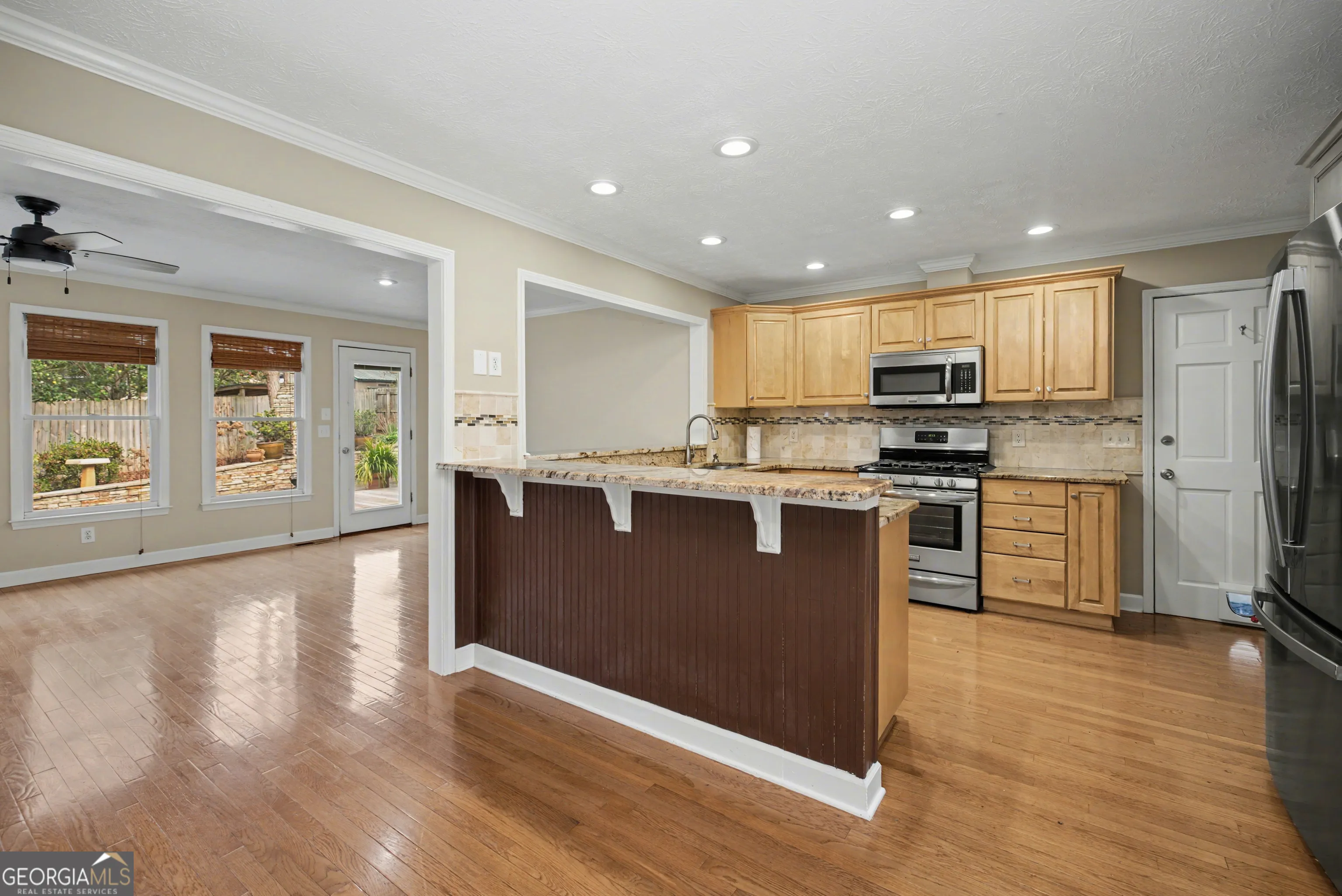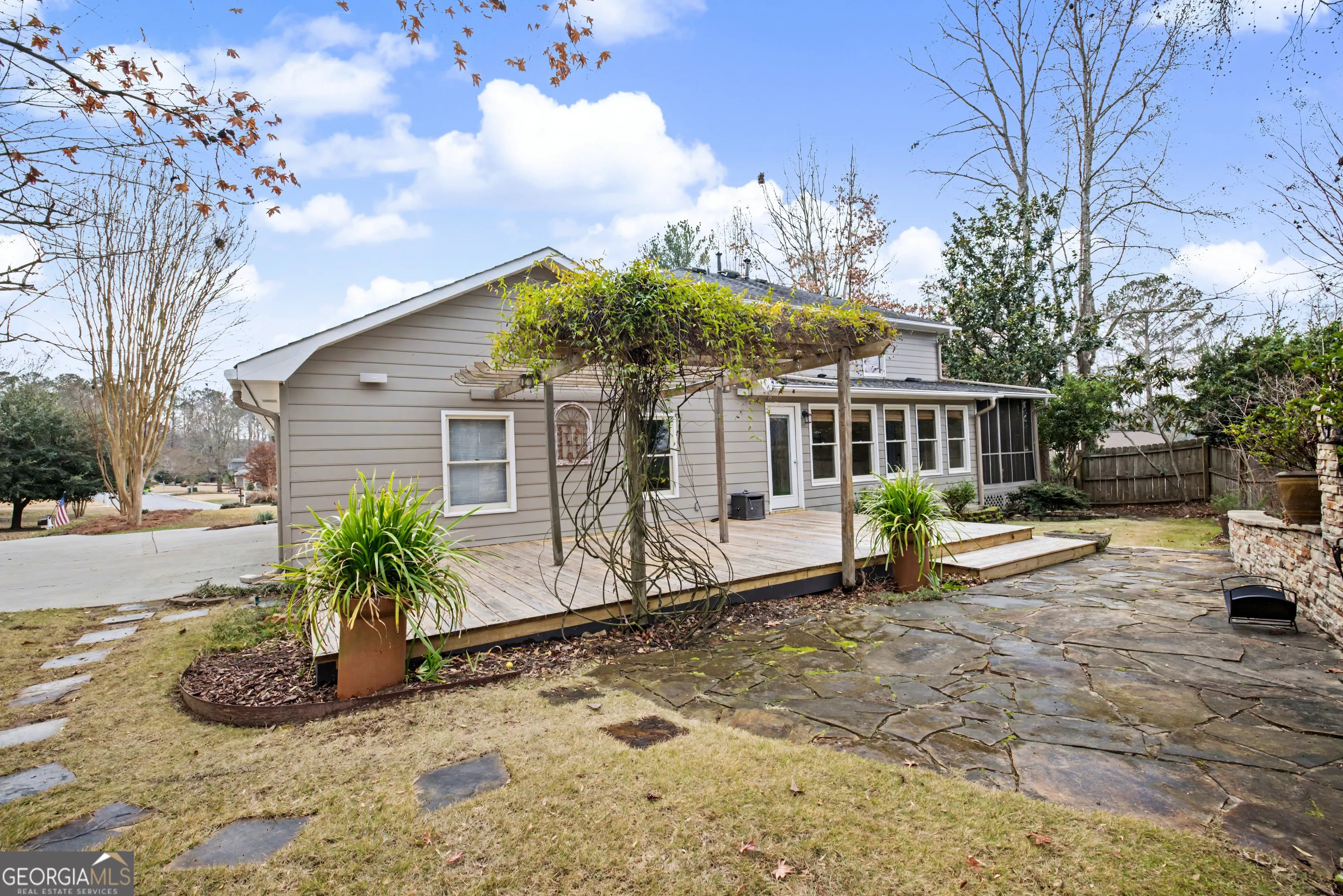 Charming family home in the “Heart of Peachtree City” in the wonderful Edgewater Subdivision just across the street from Lake Peachtree. Steps away from over 100 miles of cart paths connecting you to the lake, Drake Field, Playgrounds, award winning schools, shops, restaurants, and so much more! The home has four bedrooms and two and a half baths. The primary suite has two separate closets. Separate living and family rooms. The living room has a fireplace and opens to the screened in porch. The family room is open to the kitchen, screened in porch, has an eat in area, and also opens up the backyard with a new deck and a stone fireplace. The yard is perfect for entertaining, relaxing, amazing sunsets, 4th of July fireworks, or some tasty smores! The wide driveway offers ample parking and 3 garages with the third garage having additional space for a work area. Lots of storage above the garages. Great location in the center of Peachtree City just minutes to everywhere!