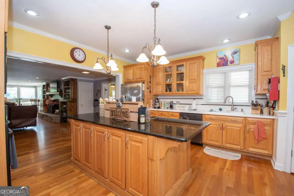 Welcome to your own private paradise, tucked away on 28 secluded, wooded acres in the highly desirable Rosemont school zone. This exceptional property offers a rare combination of privacy, luxury, and natural beauty. A winding paved driveway leads to a stunning home overlooking a peaceful 4-acre lake, complete with a private dock, perfect for fishing, kayaking, or simply enjoying the view. The expansive residence features over 4,000 square feet of thoughtfully designed living space, offering 5 bedrooms and 3.5 bathrooms. A split-bedroom floor plan provides ideal privacy, highlighted by a luxurious primary suite with vaulted ceilings, a garden tub, separate shower, and dual vanities, your perfect retreat at the end of the day. Designed for both everyday comfort and entertaining, the home offers multiple versatile living areas, including a cozy family room with a stone fireplace, a den, a dedicated office, and a large bonus room ideal for a playroom, gym, or guest space. The flexible layout also allows for multi-generational living or a private mother-in-law or teen suite. Step outside to enjoy resort-style living with an in-ground pool overlooking the lake, a fully equipped summer kitchen, and an expansive back deck that spans the length of the home-perfect for relaxing evenings or hosting gatherings. Additional features include a 44×20 barn/shop ideal for hobbies, storage, or a home business, brand-new field lines, a new roof installed in 2020, and a newly installed pool liner. All of this is set in a peaceful, private location while still offering easy access to I-85 for convenient commuting and travel. This one-of-a-kind estate delivers the perfect balance of serene country living and modern convenience. Schedule your private showing today and experience everything this incredible property has to offer.