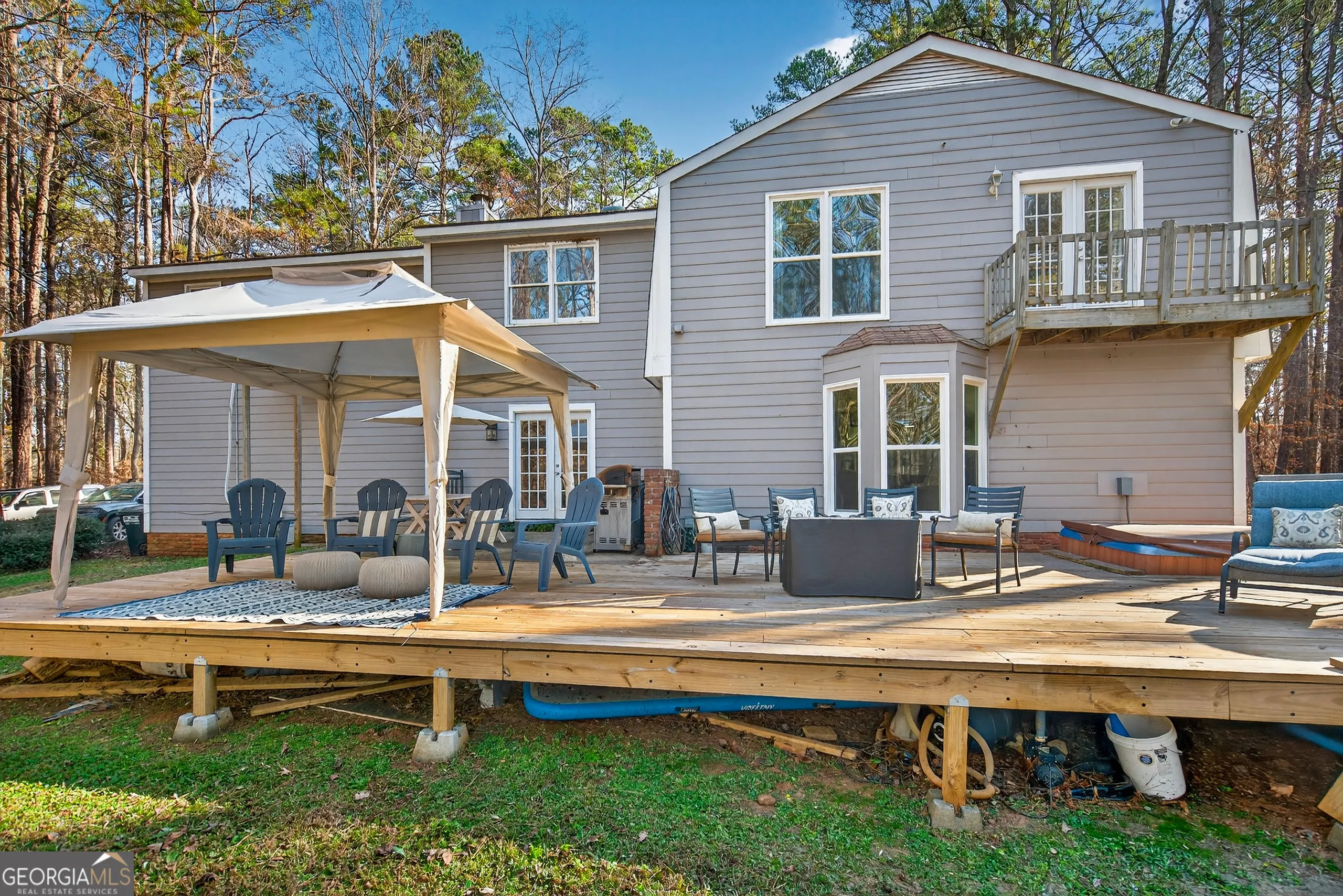 Beautifully renovated 5-bedroom, 3.5-bath lake home nestled in the family-oriented Yorktown Estates swimming pool community. Enjoy a short golf cart ride to Highland Marina, & Captains restaurant! There is quick access to all that LaGrange has to offer by car, and a desirable mid-lake location-making boating to restaurants, marinas, and recreation effortless. Designed and built with a strong emphasis on quality family time and entertainment, this home offers a spacious, flowing floor plan that has been thoughtfully updated with a true no-detail-left-behind approach. Wide-plank Life Proof flooring runs throughout the main living areas, combining timeless style with everyday durability. The gourmet kitchen serves as the heart of the home, featuring a massive custom-built island, all-new cabinetry, quartz countertops, and a striking custom tile backsplash-perfect for hosting gatherings large or small. The oversized main family room is warm and inviting with a tranquil stone hearth fireplace, while a second family room captures beautiful views of the private backyard and lake. Step outside to a giant newly constructed deck, creating multiple outdoor living spaces ideal for relaxing, entertaining, or enjoying lake sunsets. A clear, easy stroll leads directly to the dock, grab your swim trunks and flip-flops, because summer is right around the corner! This exceptional lake home seamlessly blends comfort, quality, and an unbeatable location-perfect for full-time living or an unforgettable weekend retreat. Sought after Hollis hand elementary school zone!!!! Please note the photos don’t reflect the lake at full pool the us army corps of engineers is completing work to the dam, so lake was lowered to unseasonable level over the winter months Great water depth at full pool