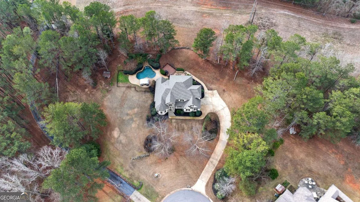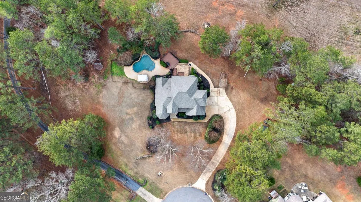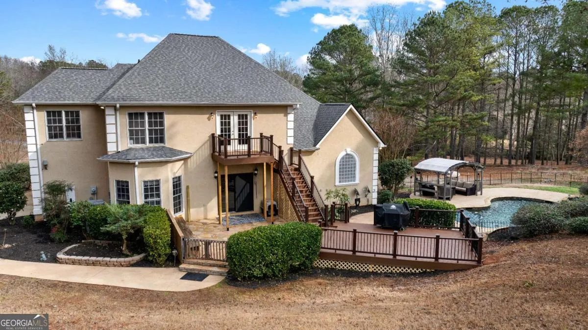 Beautiful executive home in the highly sought-after Fields Golf Course Community, minutes from I-85 and I-185, and zoned for the highly desired Rosemont School district. This home features an in-ground gunite pool with waterfall and new Trex composite decking, perfect for outdoor living and entertaining. The spacious floor plan offers 4-5 bedrooms, including a main-level primary suite with double trey ceiling, floor-to-ceiling windows, and a spa-like bath with marble countertops, tiled shower, jacuzzi tub, and oversized his-and-hers walk-in closets. Upstairs includes four additional bedrooms (one currently used as an office), two renovated baths, including a Jack-and-Jill,and a large bonus/great room with built-in cabinetry and exterior stairs leading to the backyard and pool. Walk-in attic space provides expansion potential plus a finished utility room with extra planks put down. The main level showcases a chef’s kitchen with stainless steel appliances, center island, breakfast bar, floor-to-ceiling cabinetry, trash compactor, and breakfast area, open to a sunken den with gas-log fireplace and double doors. New hardwood flooring red oak, was added throughout the main level in 2023. Extensive updates include an encapsulated crawlspace with dehumidifier and sump pump, transferable termite bond, whole-house PEX replumbing, tankless water heater, new HVAC system, rear Anderson Energy efficient slider (2023), architectural shingle roof with 30-year shingle (2024), new dishwasher (2024), updated pool equipment, and a new front door (2025). A meticulously maintained home offering luxury, space, and exceptional convenience.