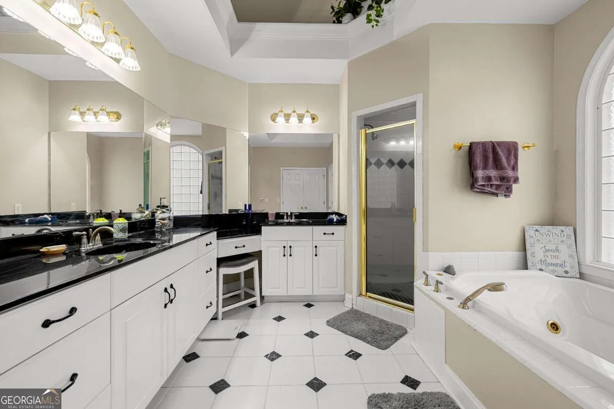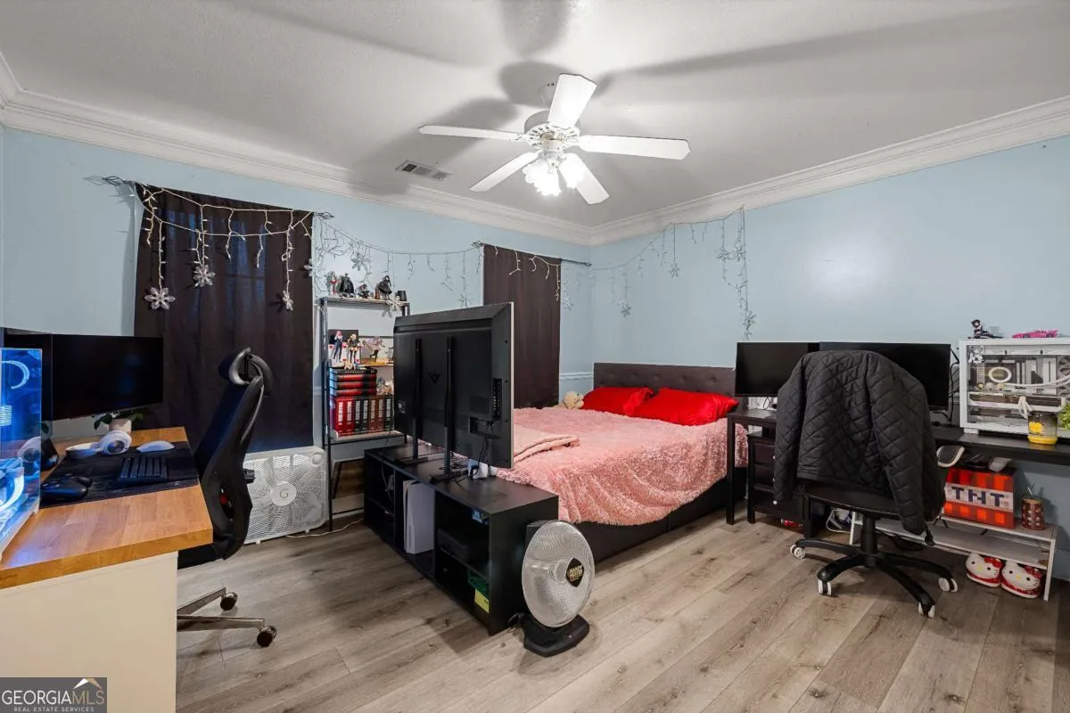 Beautiful executive home in the highly sought-after Fields Golf Course Community, minutes from I-85 and I-185, and zoned for the highly desired Rosemont School district. This home features an in-ground gunite pool with waterfall and new Trex composite decking, perfect for outdoor living and entertaining. The spacious floor plan offers 4-5 bedrooms, including a main-level primary suite with double trey ceiling, floor-to-ceiling windows, and a spa-like bath with marble countertops, tiled shower, jacuzzi tub, and oversized his-and-hers walk-in closets. Upstairs includes four additional bedrooms (one currently used as an office), two renovated baths, including a Jack-and-Jill,and a large bonus/great room with built-in cabinetry and exterior stairs leading to the backyard and pool. Walk-in attic space provides expansion potential plus a finished utility room with extra planks put down. The main level showcases a chef’s kitchen with stainless steel appliances, center island, breakfast bar, floor-to-ceiling cabinetry, trash compactor, and breakfast area, open to a sunken den with gas-log fireplace and double doors. New hardwood flooring red oak, was added throughout the main level in 2023. Extensive updates include an encapsulated crawlspace with dehumidifier and sump pump, transferable termite bond, whole-house PEX replumbing, tankless water heater, new HVAC system, rear Anderson Energy efficient slider (2023), architectural shingle roof with 30-year shingle (2024), new dishwasher (2024), updated pool equipment, and a new front door (2025). A meticulously maintained home offering luxury, space, and exceptional convenience.