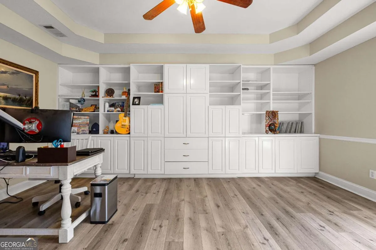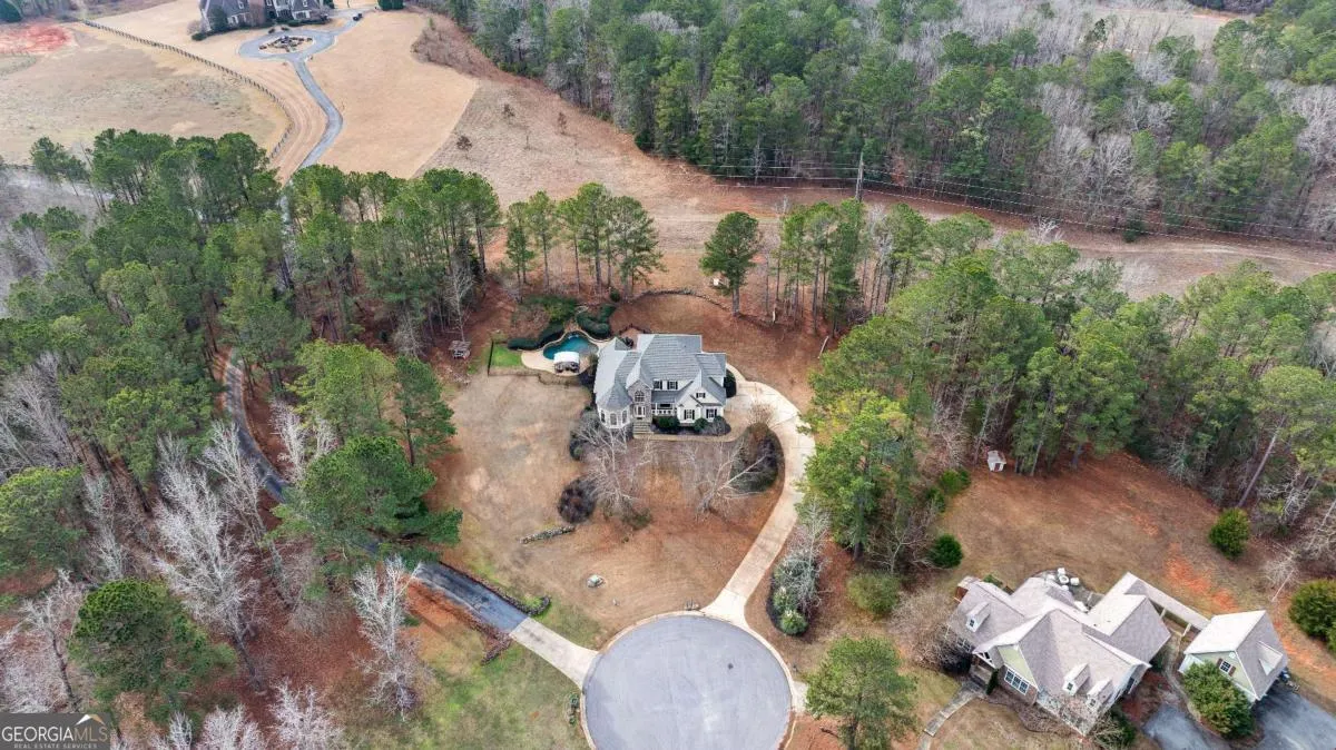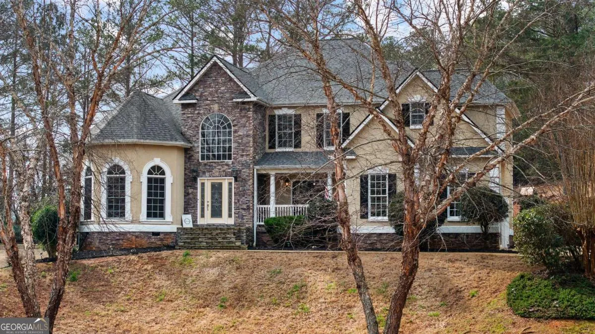 Beautiful executive home in the highly sought-after Fields Golf Course Community, minutes from I-85 and I-185, and zoned for the highly desired Rosemont School district. This home features an in-ground gunite pool with waterfall and new Trex composite decking, perfect for outdoor living and entertaining. The spacious floor plan offers 4-5 bedrooms, including a main-level primary suite with double trey ceiling, floor-to-ceiling windows, and a spa-like bath with marble countertops, tiled shower, jacuzzi tub, and oversized his-and-hers walk-in closets. Upstairs includes four additional bedrooms (one currently used as an office), two renovated baths, including a Jack-and-Jill,and a large bonus/great room with built-in cabinetry and exterior stairs leading to the backyard and pool. Walk-in attic space provides expansion potential plus a finished utility room with extra planks put down. The main level showcases a chef’s kitchen with stainless steel appliances, center island, breakfast bar, floor-to-ceiling cabinetry, trash compactor, and breakfast area, open to a sunken den with gas-log fireplace and double doors. New hardwood flooring red oak, was added throughout the main level in 2023. Extensive updates include an encapsulated crawlspace with dehumidifier and sump pump, transferable termite bond, whole-house PEX replumbing, tankless water heater, new HVAC system, rear Anderson Energy efficient slider (2023), architectural shingle roof with 30-year shingle (2024), new dishwasher (2024), updated pool equipment, and a new front door (2025). A meticulously maintained home offering luxury, space, and exceptional convenience.