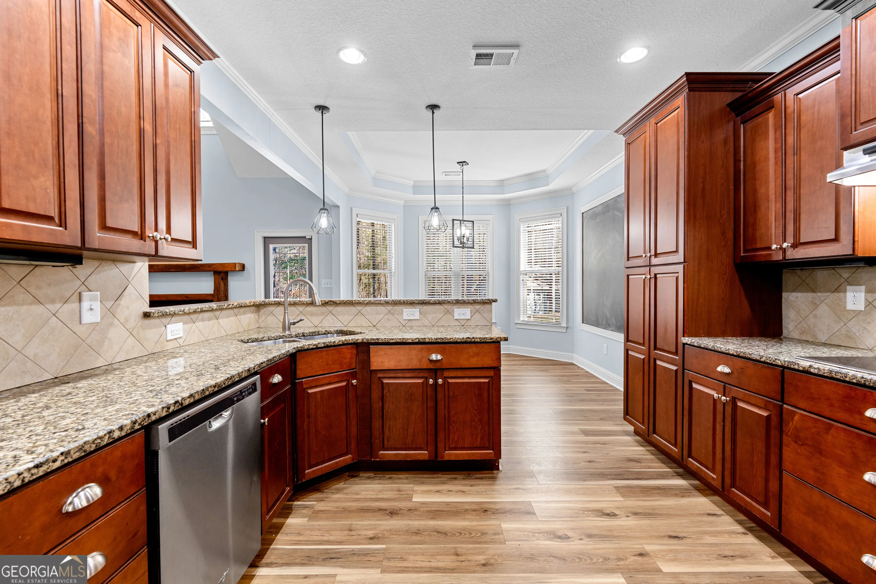 Welcome home to 104 Hidden Springs Drive in LaGrange, located just minutes from West Point Lake. This spacious and well-maintained home offers 5 bedrooms plus a bonus room that can easily serve as a 6th bedroom, home office, or media room, providing flexibility for today’s lifestyles. Step inside to a bright, open layout with beautiful LVP floors, soaring ceilings, and abundant natural light. The inviting foyer flows into a formal dining room, perfect for hosting gatherings. The living area features an open-concept design with views into the kitchen, creating a comfortable space for everyday living and entertaining. The kitchen is a standout with granite countertops, rich cabinetry, stainless steel appliances, ample counter space, and a large breakfast area overlooking the backyard. The primary suite offers a relaxing retreat with dual vanities, a soaking tub, separate tiled shower, and generous walk-in closet. Additional bedrooms are well-sized, and the bonus room adds even more flexibility for guests or hobbies. Outside, enjoy the private yard and the 16′ x 20′ outbuilding, ideal for a workshop, storage, gym, or creative space. This home is move-in ready and loaded with possibilities-it is a must-see!