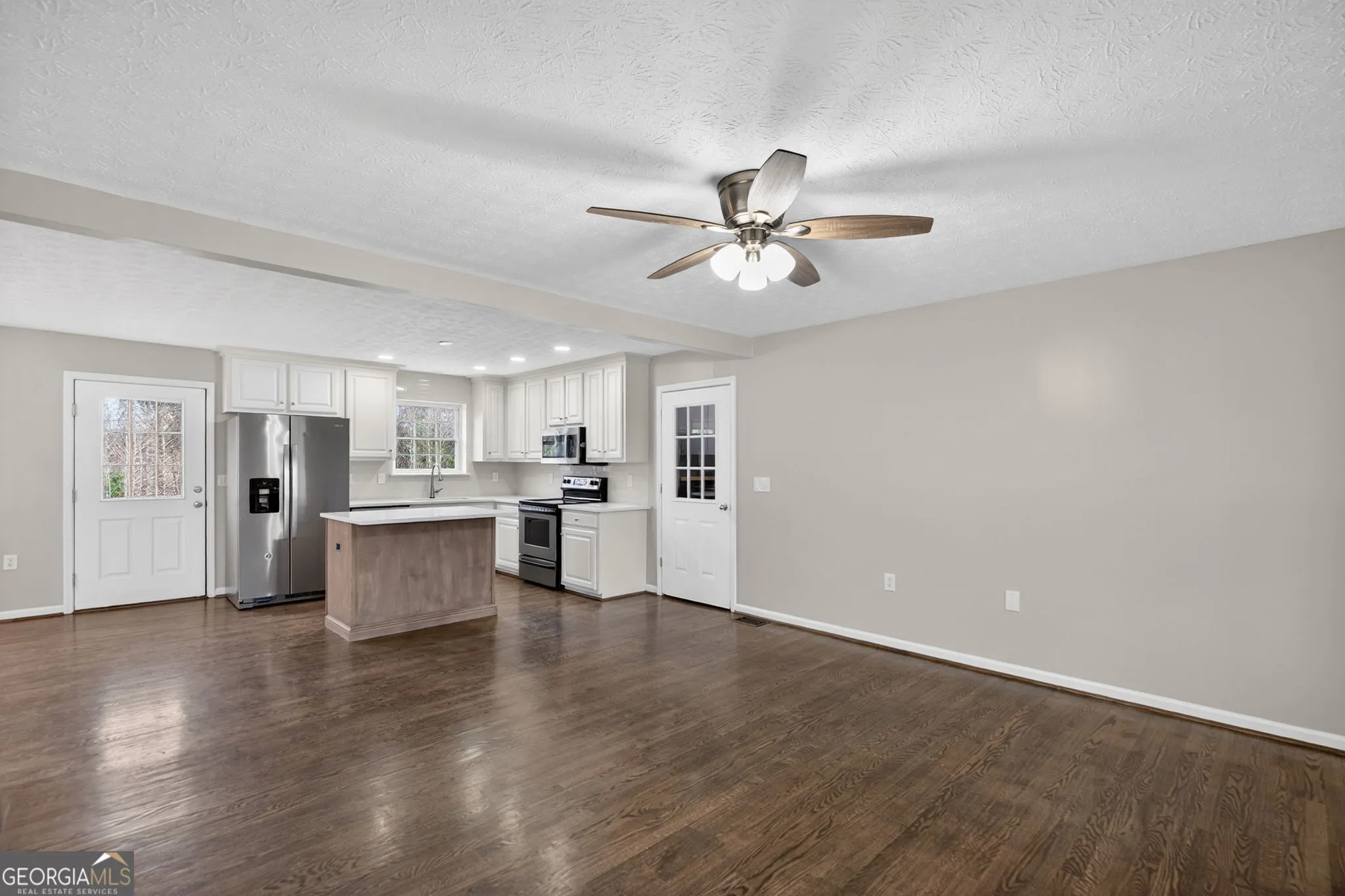 Refined country living meets modern luxury on 6 private acres with creek frontage, sunset views, and a nearly finished basement-just minutes from town with no HOA. This thoughtfully updated residence offers 1,716 sq ft above grade plus 1,144 sq ft in a partially finished basement, designed for flexibility, entertaining, and multi-generational living. The main level features refinished hardwood floors (2023) in a rich Aged Barrel finish and an open-concept layout ideal for both everyday living and hosting. The kitchen showcases Carrera marble quartz countertops (2025), a glass tile backsplash, a single-basin sink with a touch-activated faucet, and updated designer lighting. Bathrooms were refreshed in November 2025 with new quartz surfaces, sinks, and fixtures. Major improvements include new HVAC systems (2022) and a new roof (October 2025). The basement is nearly complete with a kitchenette, bedroom, flex room, gym, and theater space, featuring downturned HVAC vents, drop ceilings, and independently zoned, dimmable lighting-perfect for a private guest suite, wellness area, or media retreat. Upstairs, two secondary bedrooms offer LVT flooring and walk-in closets, while an open loft provides an ideal home office or flex space with elevated views of both sunrise and sunset, overlooking the main living area. Outdoors, enjoy rolling pasture, wooded privacy, and an all-weather creek, along with updated decks and porches ideal for taking in peaceful views and abundant wildlife. Located on a quiet road, yet only 20 minutes to Bremen or Cedartown and 25 minutes to I-20, this property delivers space, privacy, and convenience without compromise. A rare opportunity for privacy, flexibility, and refined living in a truly special setting.