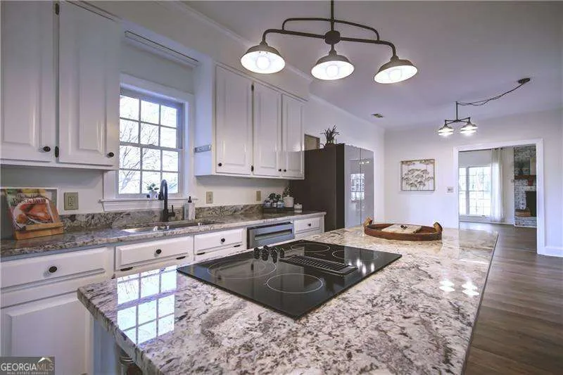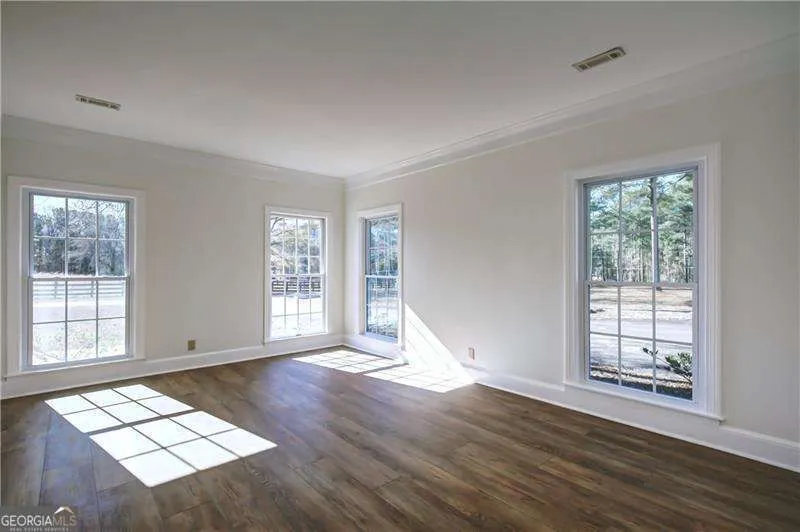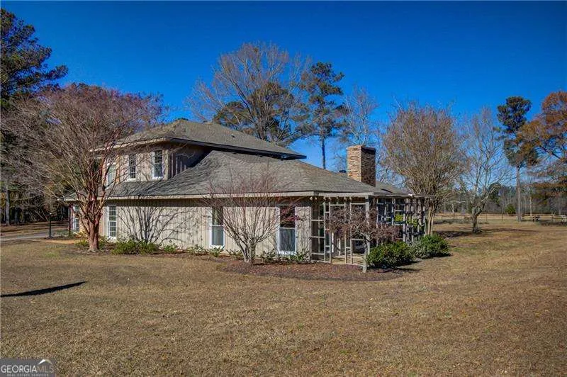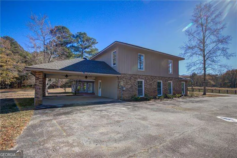 The transformation is complete and Move-In ready! Come see the exciting renovations, featuring all-new flooring, updated bathrooms, an improved kitchen layout, and new fixtures throughout. This tranquil hobby farm is a true oasis of beauty located just one hour from the Atlanta Airport. Originally designed for horses, the property sits on 26 acres of pasture and woods with a year-round stream supporting local wildlife like deer and turkey. The land features several outbuildings, including a pole barn, tractor/tack barn, and a spacious 16×20 storage barn, plus a charming tree house. The main house is surrounded by mature trees, including Japanese maples, which beautifully contrast the native hardwoods and pines. Inside, the home offers endless possibilities with a versatile layout: four bedrooms and two baths upstairs, plus two additional bedrooms and baths on the main level, including the primary suite. A bonus room serves perfectly as a home office. The kitchen boasts new stainless steel appliances and opens to a breakfast room, flowing into a generous formal dining area, cozy living room, expansive great room, and bright sun room.