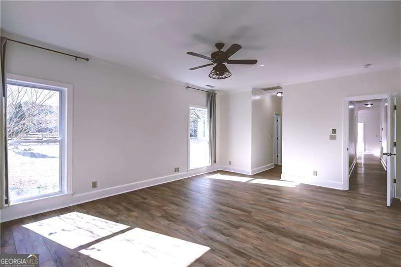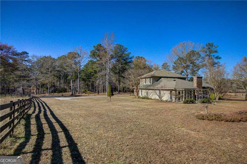 The transformation is complete! Come see these exciting renovations, featuring all-new flooring, updated bathrooms, an improved kitchen layout, and new fixtures throughout. This beautiful, tranquil hobby farm is located just one hour from the Atlanta Airport. Originally designed for horses, the property sits on 26 acres of pasture and woods with a year-round stream supporting local wildlife like deer and turkey. The land features several outbuildings, including a pole barn, tractor/tack barn, and a spacious 16×20 storage barn, plus a charming treehouse. The main house is surrounded by mature trees, including Japanese maples, which beautifully contrast the native hardwoods and pines. Inside, the home offers endless possibilities with a versatile layout: four bedrooms and two baths upstairs, plus two additional bedrooms and baths on the main level, including the primary suite. A bonus room serves perfectly as a home office. The kitchen boasts new stainless steel appliances and opens to a breakfast room, flowing into a generous formal dining area, cozy living room, expansive great room, and bright sunroom. Outside, enjoy the gazebo and patio for al fresco dining. The property includes a 2-car carport and ample guest parking. Key updates include three HVAC systems, a new septic tank/drain field, and a newer roof. (Note: Recording devices are active; please do not drive on the property without approval from the listing agent)