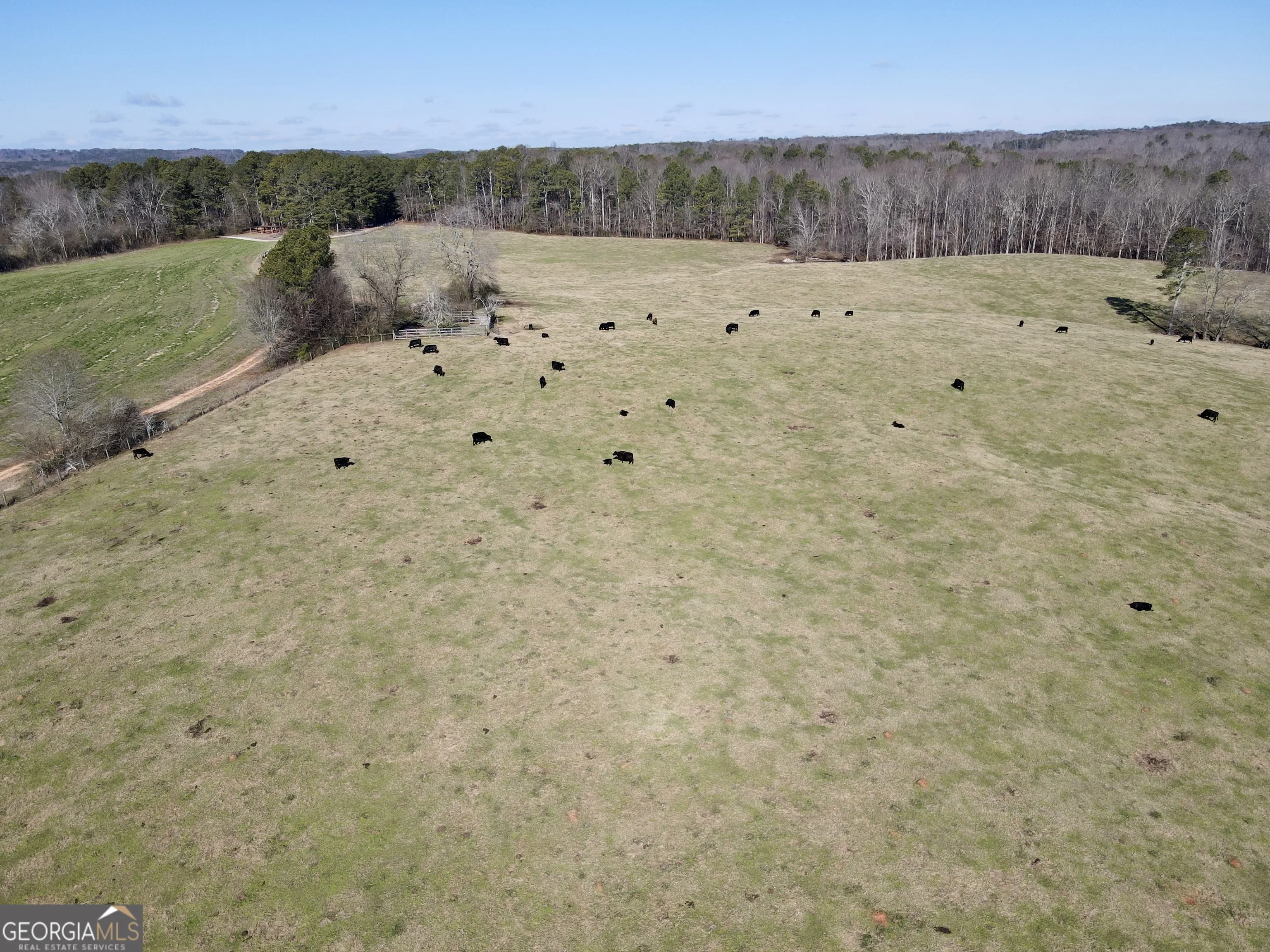 Maple Branch Farm is a 167 acre working cattle farm located in Carroll County, Georgia. The property is well improved and thoughtfully laid out, offering productive pasture, multiple water sources, residential improvements, and recreational value in a desirable rural location. The farm is predominantly open pasture and is fully fenced with multiple cross-fenced pastures and paddocks, allowing for efficient livestock rotation and management. Several fields are currently in hay production. Three large ponds provide reliable water sources, and Maple Branch flows through the property, adding additional water frontage and wildlife habitat. Scattered areas of mature hardwoods offer shade and diversity across the tract. Improvements include a 3,120 square foot farmhouse with four bedrooms and three bathrooms, offering strong potential for updates. A second 1,248 square foot modular home provides additional living space suitable for guests, family, or farm help. Additional structures include a 3696 finished shop building, 6050 pole barn, 3632 equipment shed, 3648 hay barn, 4636 barn, 2838 detached garage, and multiple working cattle pens for handling and loading. The property supports a healthy population of deer and turkey, providing recreational and hunting opportunities. Conveniently located approximately 10 minutes from Bowdon, 15 minutes from Carrollton, and less than one hour from downtown Atlanta, the farm offers a balance of rural setting and accessibility. This is a well-rounded cattle farm with quality improvements, productive pasture, abundant water, and multiple residences.