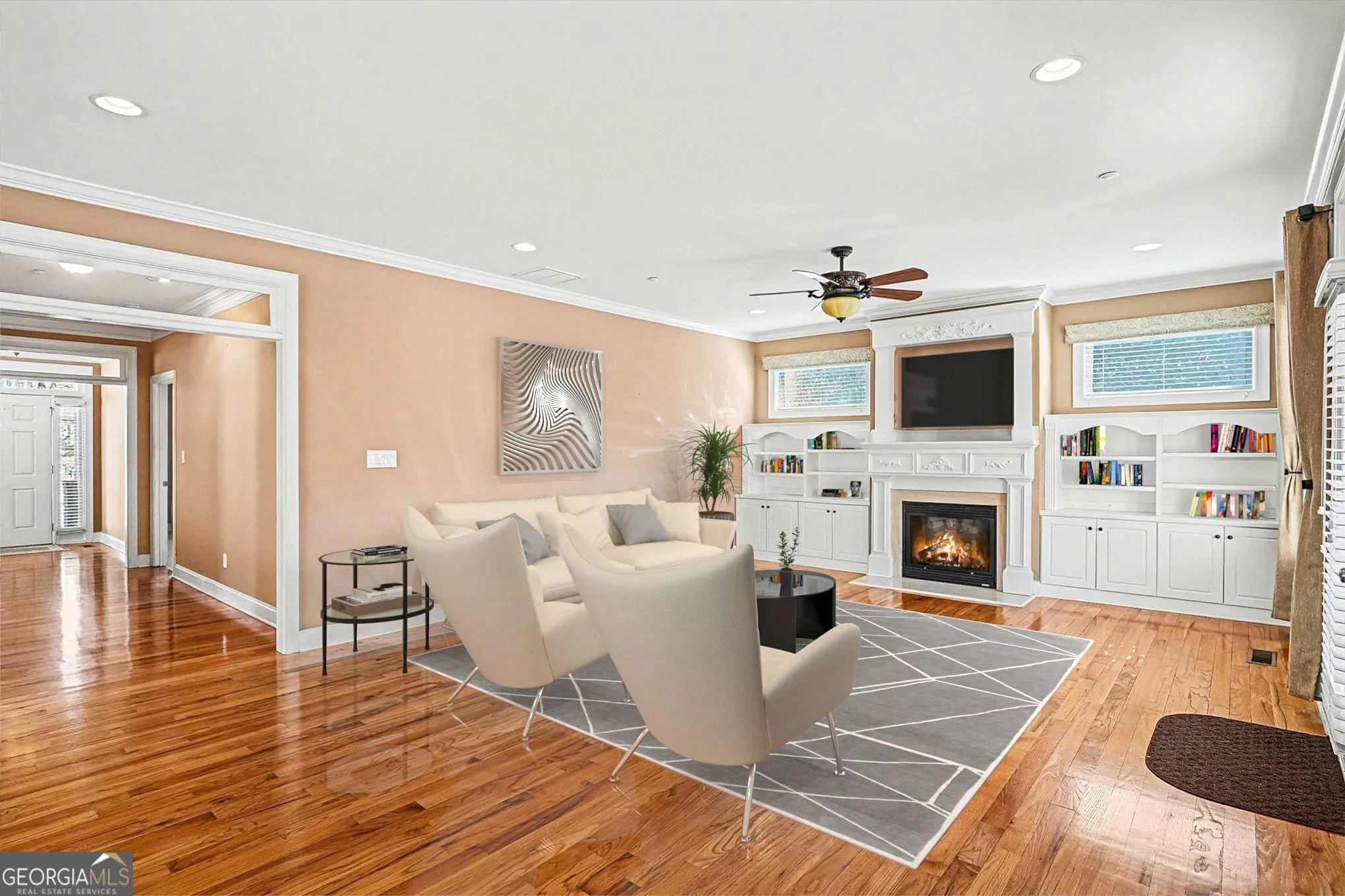 You’re going to absolutely love this home! With it’s PERFECT LOCATION adjacent to THE VILLE AMPITHEATER and within walking distance to DOWNTOWN FAYETTEVILLE and CITY CENTER PARK . An ideal layout, this beautifully crafted CUSTOM HOME is truly a must-see! From the moment you arrive, you’re welcomed by a CHARMING FRONT PORCH that sets the tone for what’s inside. Stepping in, you’ll find GORGEOUS HARDWOOD FLOORING and light-filled spaces throughout. The FORMAL DINING ROOM offers the perfect setting for entertaining, while the MASSIVE OWNER’S SUITE provides a private retreat, complete with an en suite bath featuring a separate PRIVATE WATER CLOSET. The main level also includes a SECONDARY BEDROOM and FULL BATH, along with a GINORMOUS GREAT ROOM showcasing a CUSTOM MANTLE and BUILT-IN BOOKSHELVES. The OPEN-CONCEPT DESIGN flows seamlessly into the spacious, BEAUTIFULLY UPDATED KITCHEN with a BUILT-IN BREAKFAST NOOK-ideal for everyday living. TONS OF CABINET SPACE and a HUGE PANTRY will delight any cook. CONVENIENT HALF BATH, WALK-IN LAUNDRY ROOM and 3 CAR GARAGE complete the main level. UPSTAIRS, you’ll find TWO ADDITIONAL BEDROOMS, EACH with its OWN PRIVATE EN SUITE FULL BATH, offering comfort and privacy for family or guests. Relax outside in the FENCED- IN BACKYARD on the COVERED PORCH and BEAUTIFULLY STAINED DECK with optional Roll Out Awning for additional shade, perfect for unwinding your day or entertaining! Located in a neighborhood with SIDEWALKS and a NEIGHBORHOOD SWIMMING POOL, PLAYGROUND and PICKLE BALL COURTS – what are you waiting for? Make your appointment today!
