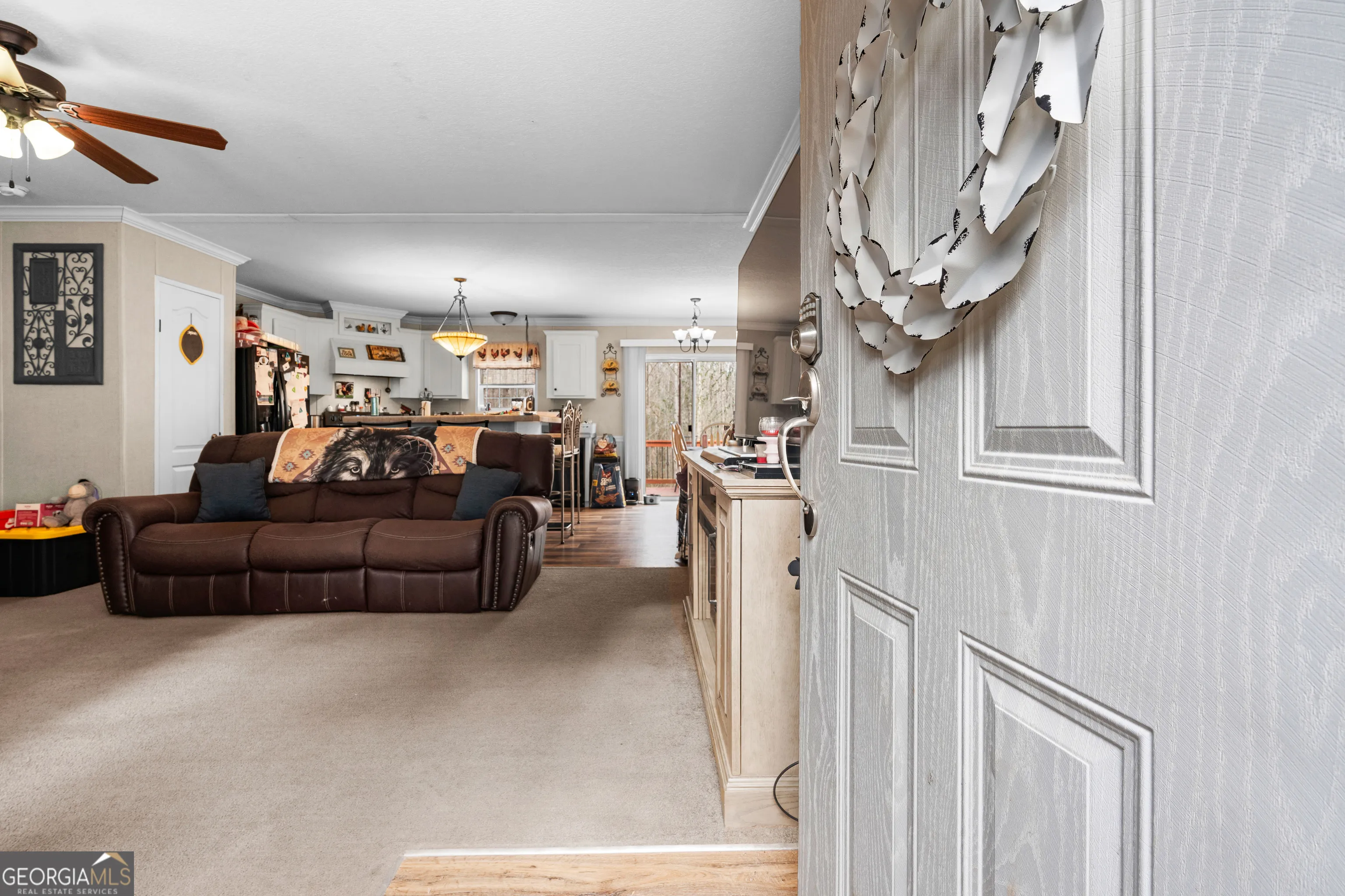Built in 2018, this beautifully maintained 3-bedroom, 2-bath home sits on 3.64 peaceful acres with Potato Creek flowing through the back of the property. Thoughtfully designed with a smart, open layout and stylish LVP flooring throughout, the home offers both comfort and functionality. The inviting kitchen features a breakfast bar, pantry, and space for a dining table-perfect for everyday living and entertaining. The primary suite on the main level includes a spacious walk-in closet and a spa-like five-piece en suite with a large shower and soaking tub. Enjoy the serenity of nature from the expansive back deck, ideal for relaxing or hosting gatherings-a rare blend of modern living and natural beauty in Hogansville.