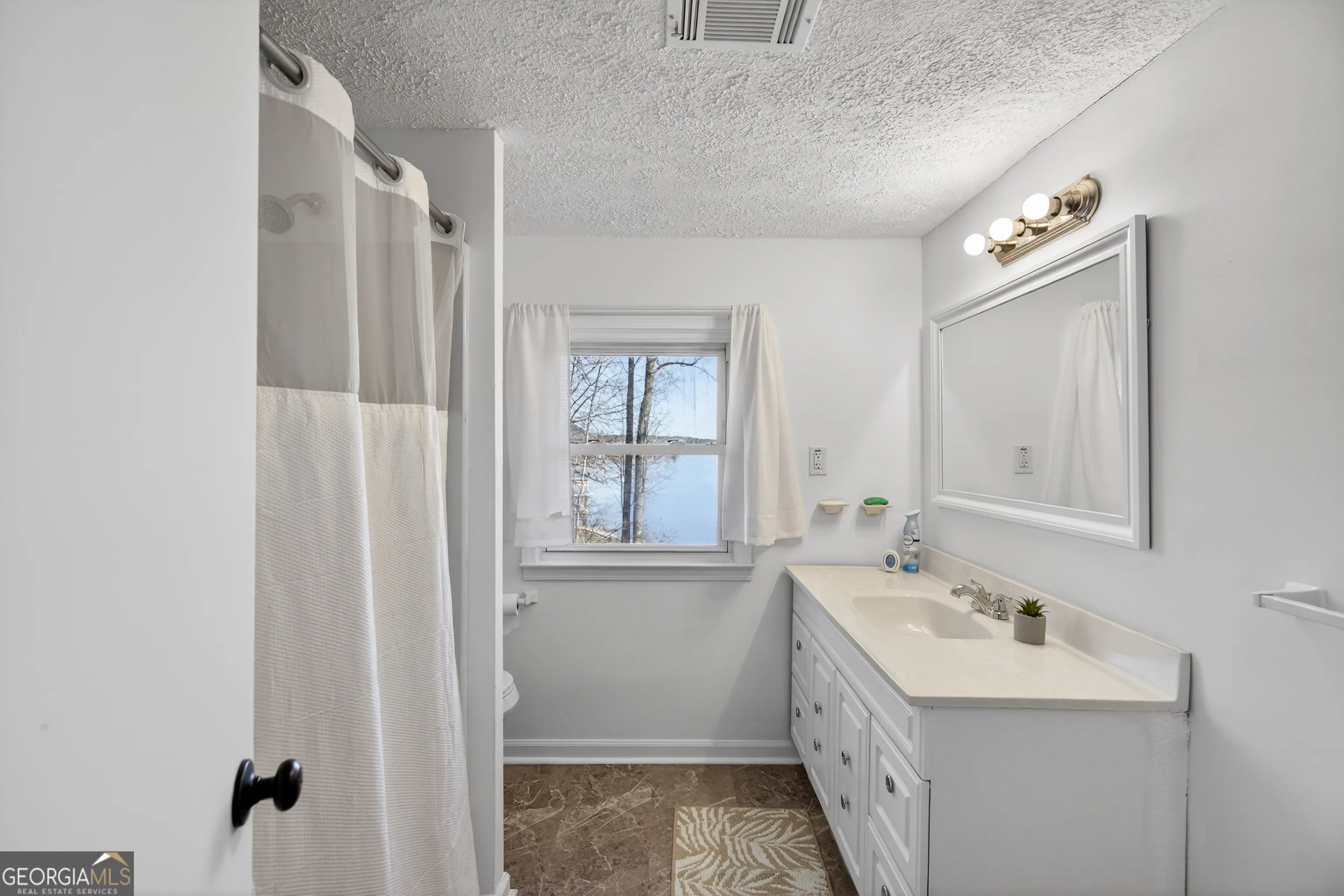 Lakefront Luxury Living with Stunning Views! This beautifully renovated lakefront home offers the perfect blend of comfort, style, and resort-style living. Recent upgrades include fresh interior paint, a brand-new roof, a newly painted front porch, a brand-new HVAC system, brand-new carpet and flooring, and updated hardware, making this home truly turnkey and move-in ready. The main level features a spacious primary suite with a full bath, along with a welcoming living area highlighted by a fieldstone wood-burning fireplace, ideal for cozy winter evenings. The kitchen is well-appointed with granite countertops and stainless-steel appliances, creating an inviting space for everyday living and entertaining. Upstairs, you’ll find two generously sized bedrooms and a full bath, while the fully finished basement adds exceptional flexibility with an additional bedroom, full bath, separate office area, and a family room with a second wood-burning stove fireplace. Step outside to enjoy breathtaking lake views from the large deck, perfect for relaxing or hosting guests-including the ability to view the annual fireworks display without ever leaving your property. Custom-made rock walls throughout the property and a stone pathway leading to the gazebo enhance the home’s outdoor charm. The outdoor space continues with an oversized stone fire pit, a nearby gazebo, and direct access to the dock, making lakefront enjoyment effortless. Located in a highly sought-after, resort-style community, residents enjoy access to three lakes, a golf course, country club, full-service restaurant, bar, and marina with live music, tennis and pickleball courts, two pools, beach access, walking trails, a recreation center, and 24/7 security. Conveniently located near I-20 and Highway 166, this home offers both tranquility and accessibility. Lake life awaits! Don’t miss this opportunity to own an adorable home in an amenity-rich neighborhood. Schedule your private showing today.