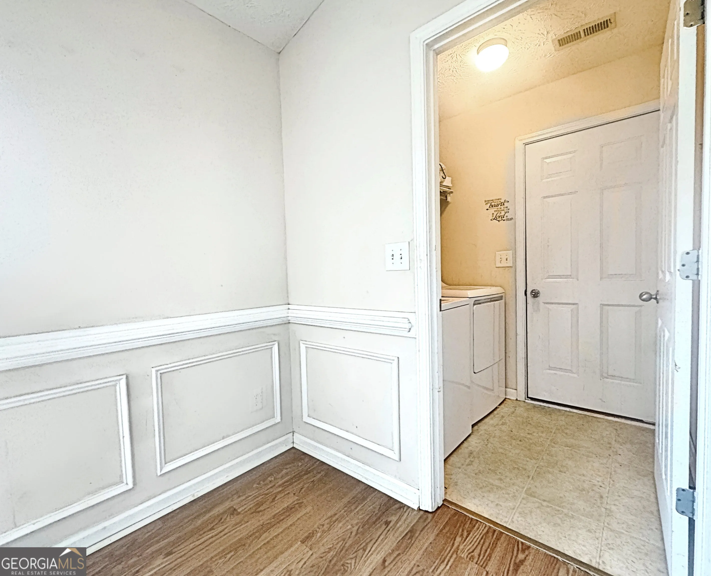 Cute three bedroom ranch with a perfect open floor plan. The large living area features a vaulted ceiling and fireplace, with a view of the kitchen and dining area, and convenient laundry/ mud room. Down the hall are three bedrooms, including a generous primary bedroom with an attached private bath and closet. The kitchen features plenty of cabinets, breakfast bar, and a large eat-in area. Off the kitchen are french doors that lead to the side patio and around to the spacious, fenced back yard. Just minutes from downtown Hogansville, a historic small town with a thriving and growing business community, unique shops and antique stores, conveniently located between Atlanta and Columbus.