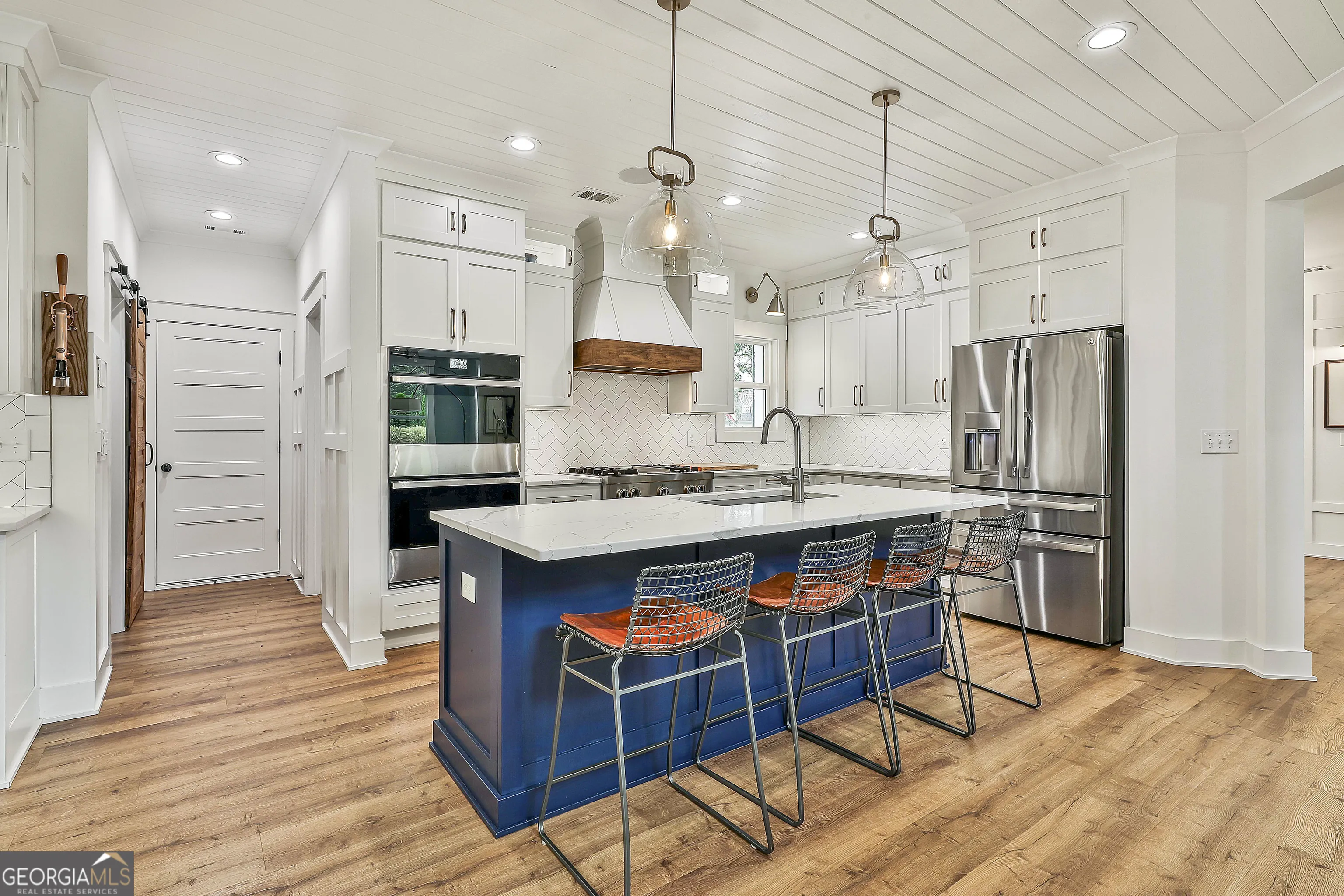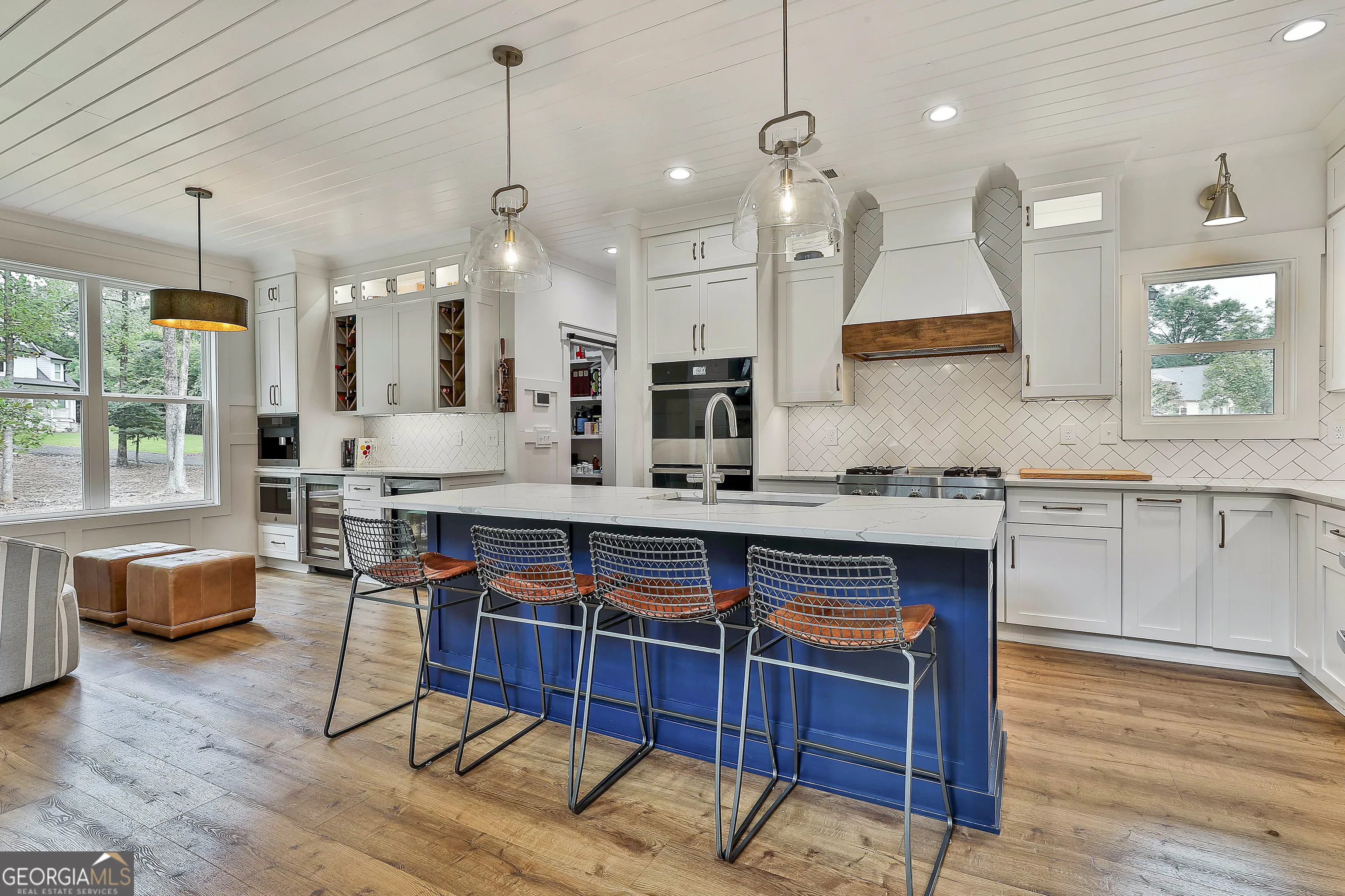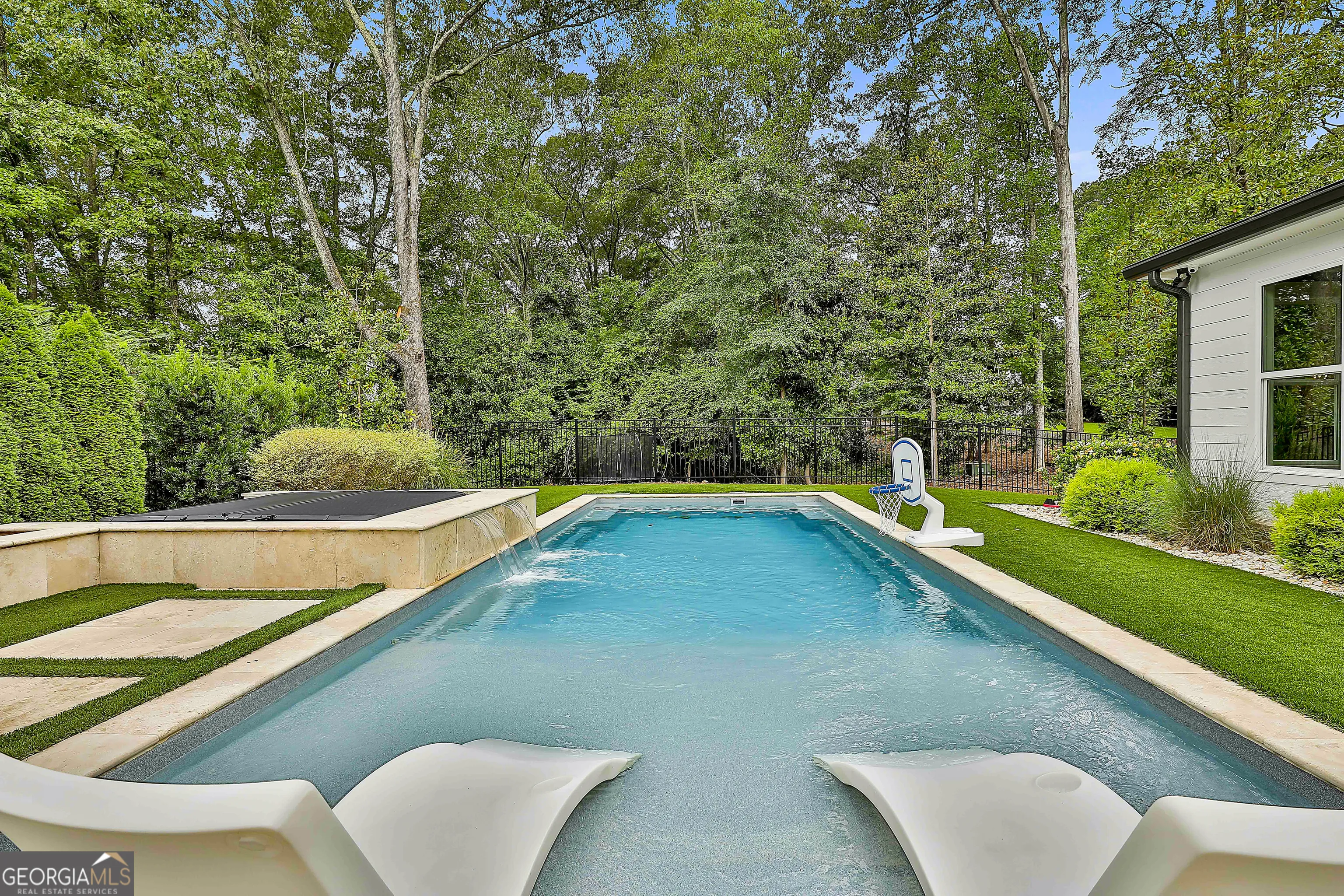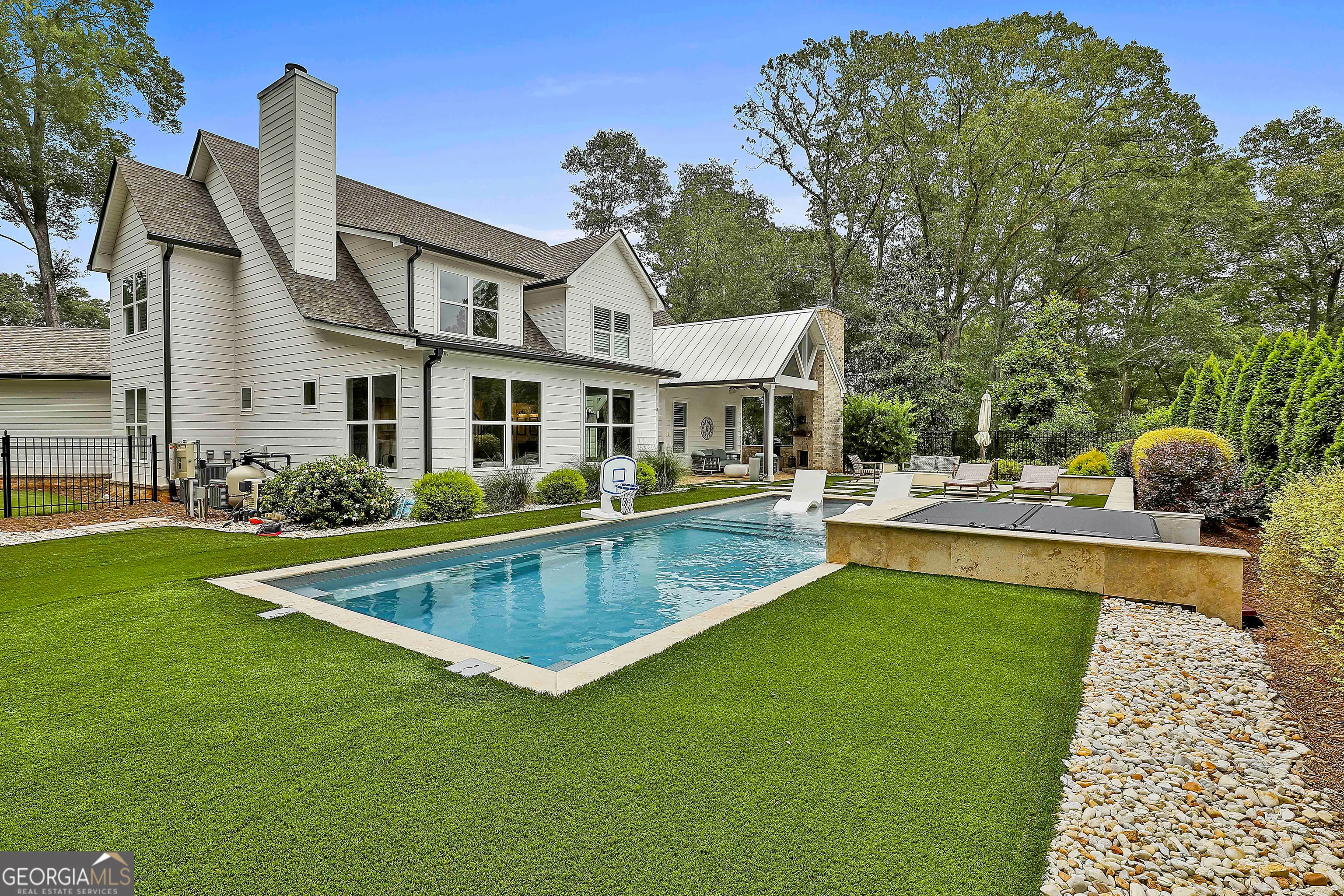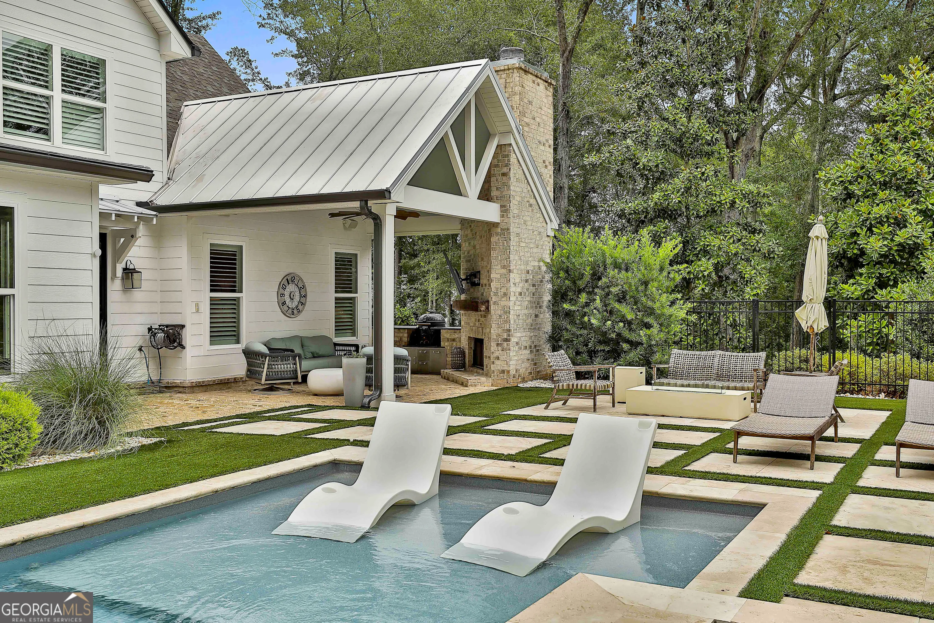 Welcome to 43 Morgan Street in the heart of Senoia – a rare opportunity to own a nearly 1.5 acres estate just a short stroll from charming downtown shops, dining, and entertainment. Custom-built and thoughtfully designed, this exceptional residence offers luxury living with the convenience of walkability – a truly unique combination in this highly sought-after location. Step inside to an expansive, open-concept main level where the kitchen, dining, and living areas seamlessly connect, creating the perfect setting for both everyday living and elegant entertaining. The chef’s kitchen is outfitted with top-of-the-line appliances and designer finishes, including a built-in coffee and espresso system by Miele, a double-drawer dishwasher by Fisher & Paykel, and a premium stove and oven by JennAir. A striking Grohe Sparkling Water Faucet adds both luxury and innovation to the space. For the wine connoisseur, a custom wine room showcases storage for hundreds of bottles and this home also features two dedicated chilling stations – ideal for displaying and preserving your collection. The spacious owner’s retreat is conveniently located on the main level and offers a private, luxurious escape with high-end finishes and spa-inspired comfort. Upstairs, you’ll find three generously sized secondary bedrooms and two bathrooms, providing flexibility for family, guests, or home office needs. Car enthusiasts and hobbyists will appreciate the three-car garage, while the true showstopper awaits outdoors. The backyard oasis transports you to the beauty of Greece with stunning tile and turf that remain cool underfoot. A custom-designed pool is surrounded by designer landscaping, creating a private resort-style retreat perfect for relaxation or entertaining. With its expansive 1.43-acre lot, walkability to downtown Senoia, and unparalleled luxury features throughout, this home offers a lifestyle that is simply unmatched.