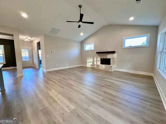 2 +/- ACRES IN NORTH TROUP COUNTY WITH TWO BEDROOMS ON THE MAIN! The Smithfield Plan features foyer opening to Dining Room. The Dining Room features trim work accent for added detail. The Family Room offers Vaulted Ceiling and wood burning Fireplace with Brick or Stone Hearth. This plan offers an open flow from Family Room/Kitchen/Breakfast Area. The Kitchen boasts shaker style cabinets, quartz or granite counters, tile backsplash, stainless appliances, and pantry. The island is a great place for serving or entertaining! On the main level, you’ll find a nicely sized Owner’s Suite with vaulted ceiling and can lighting. The Owner’s Bathroom features tiled shower, garden tub with tile surround, double vanity, and a walk-in closet. Additionally, on the main level you’ll find a guest bedroom and bathroom. On the second level you’ll find a flex room ideal for playroom, media space, or office. Two guest bedrooms share a hallway bathroom featuring tiled flooring and quartz or granite counters. Each guest room is pre-wired and braced for a ceiling fan. This beautiful home features a FOAM INSULATED ATTIC, total electric construction, and architectural shingled roof. **SMART HOME TECHNOLOGY PACKAGE included for convenience** Perkins Place offers quaint living, but easy access to I-85 for commuters! Up to $6,500 toward closing costs assistance available when using builder’s preferred lender!