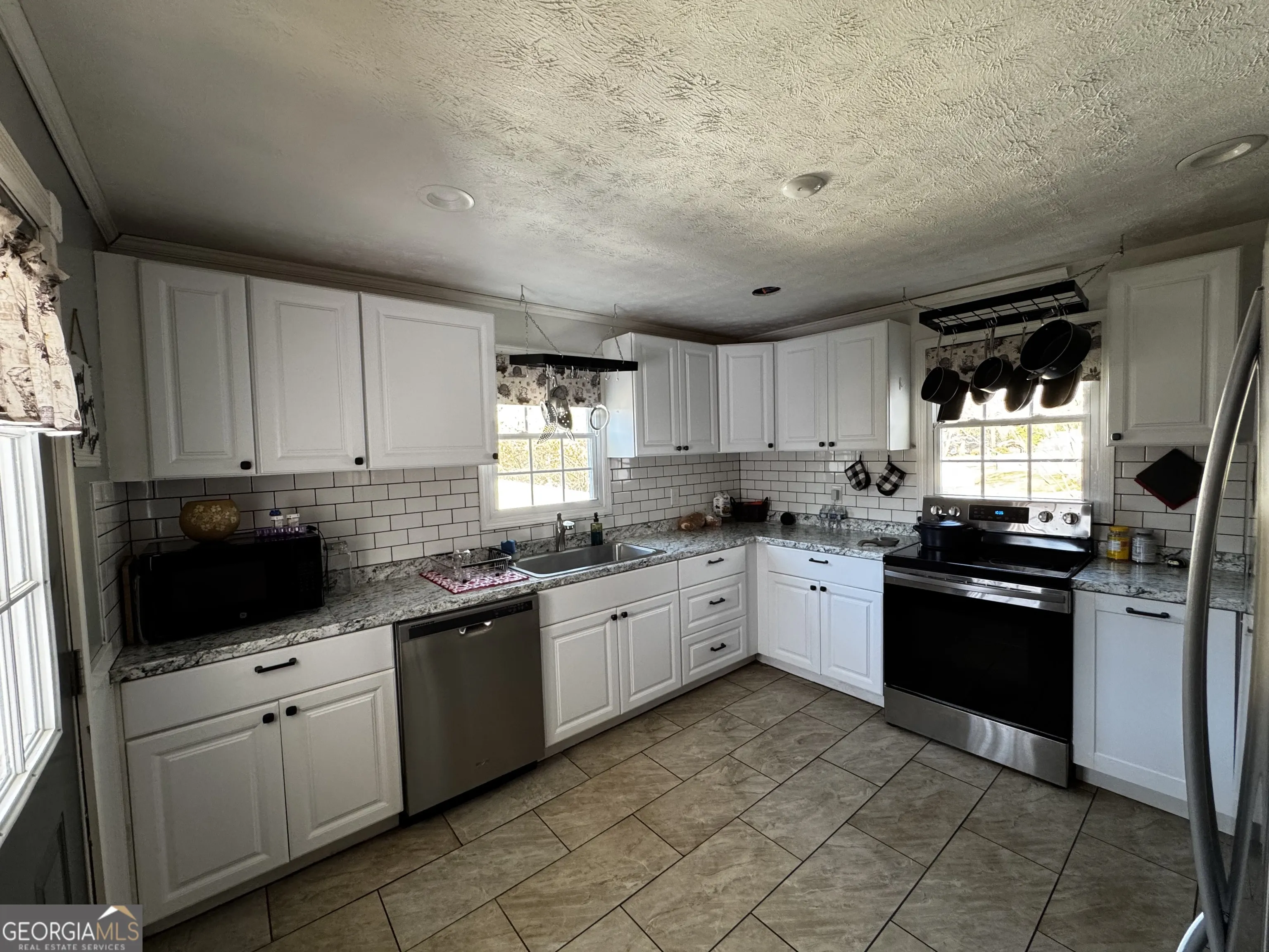 Move in ready 3BR/2BA home featuring renovated kitchen and bathrooms, a mix of wood and carpeted flooring, and efficient heating and air. Appliances included: washer, dryer, refrigerator, range, and dishwasher. Enjoy a fenced backyard with a storage building and a back patio. Roof is only 4 years old. Convenient LaGrange location with modern updates throughout.