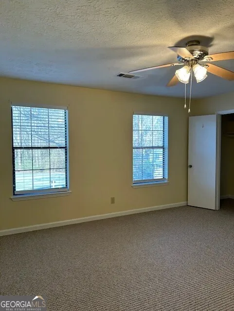 Enjoy this roomy rental located in a cul-de-sac in the heart of charming Tyrone. Duplex is within walking distance of playground, dog park, and downtown area with stores, shops and restaurants. Inviting foyer, spacious living room with wood-burning fireplace and half bath on first floor. Roomy kitchen with lots of cabinet storage overlooking private backyard with attached exterior storage shed. Convenient first-floor laundry room off kitchen area. Second floor boasts of two large bedrooms accommodating king size furniture, walk-in closets and full bath. Private driveway. Excellent Fayette County schools with bus service.