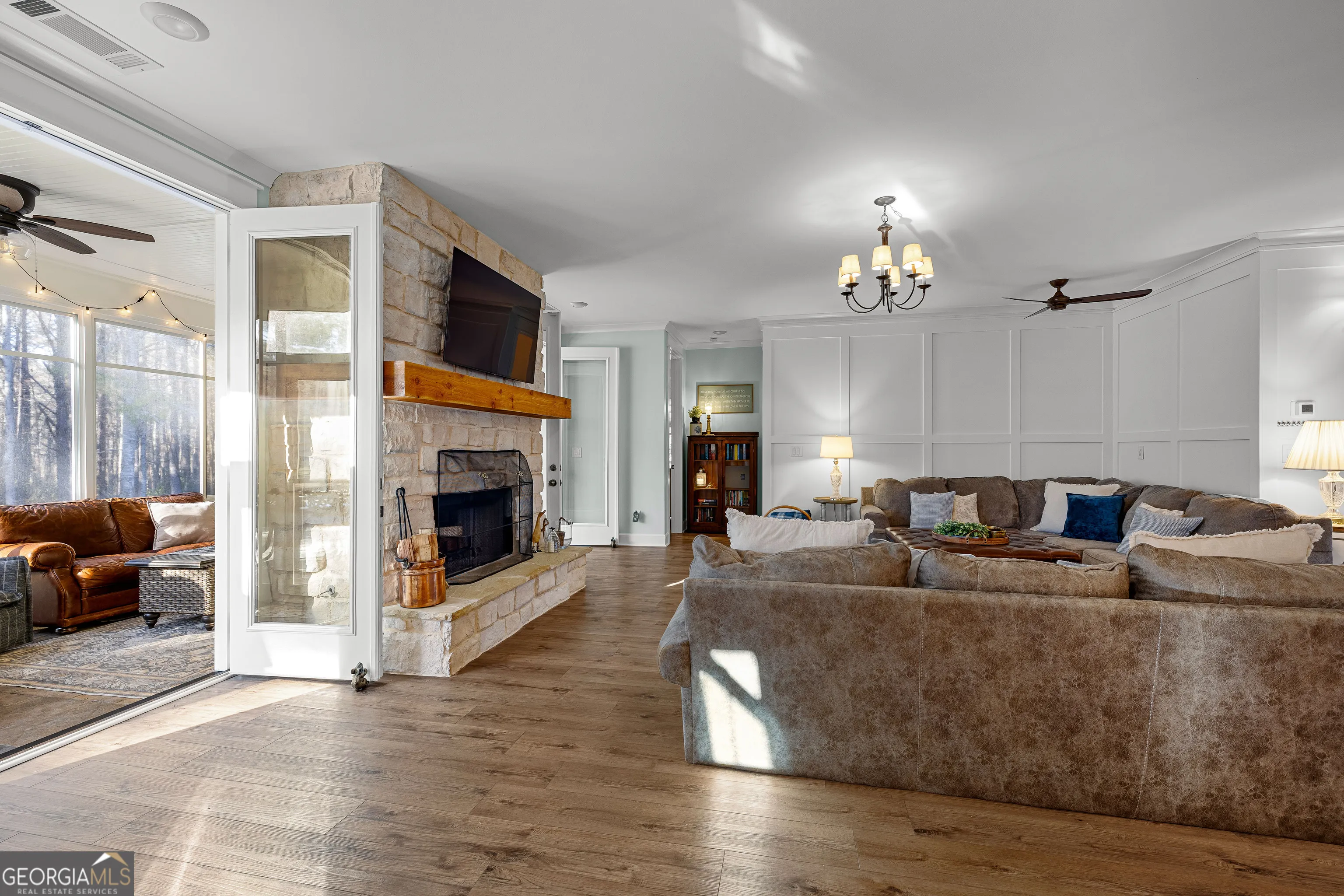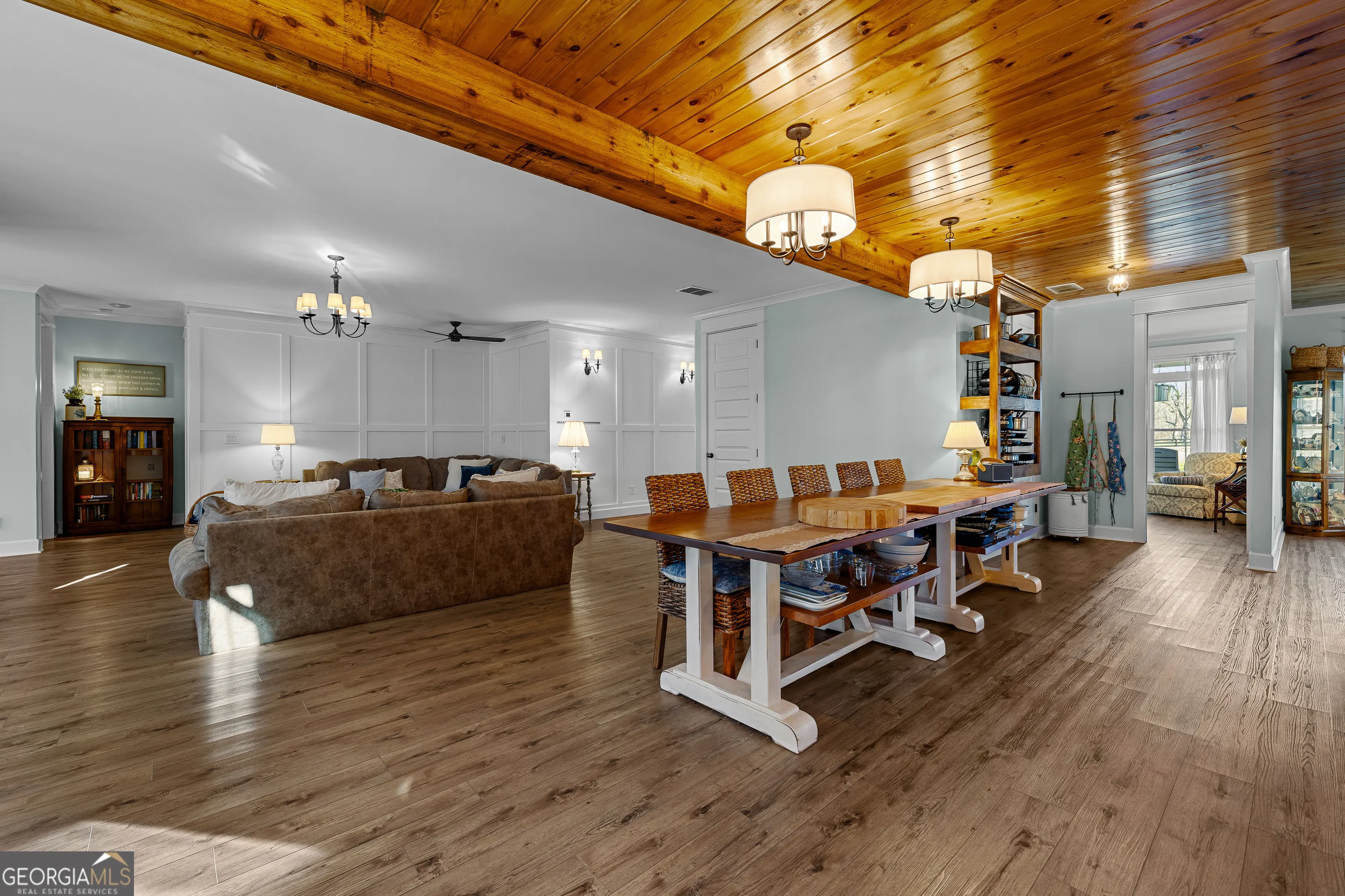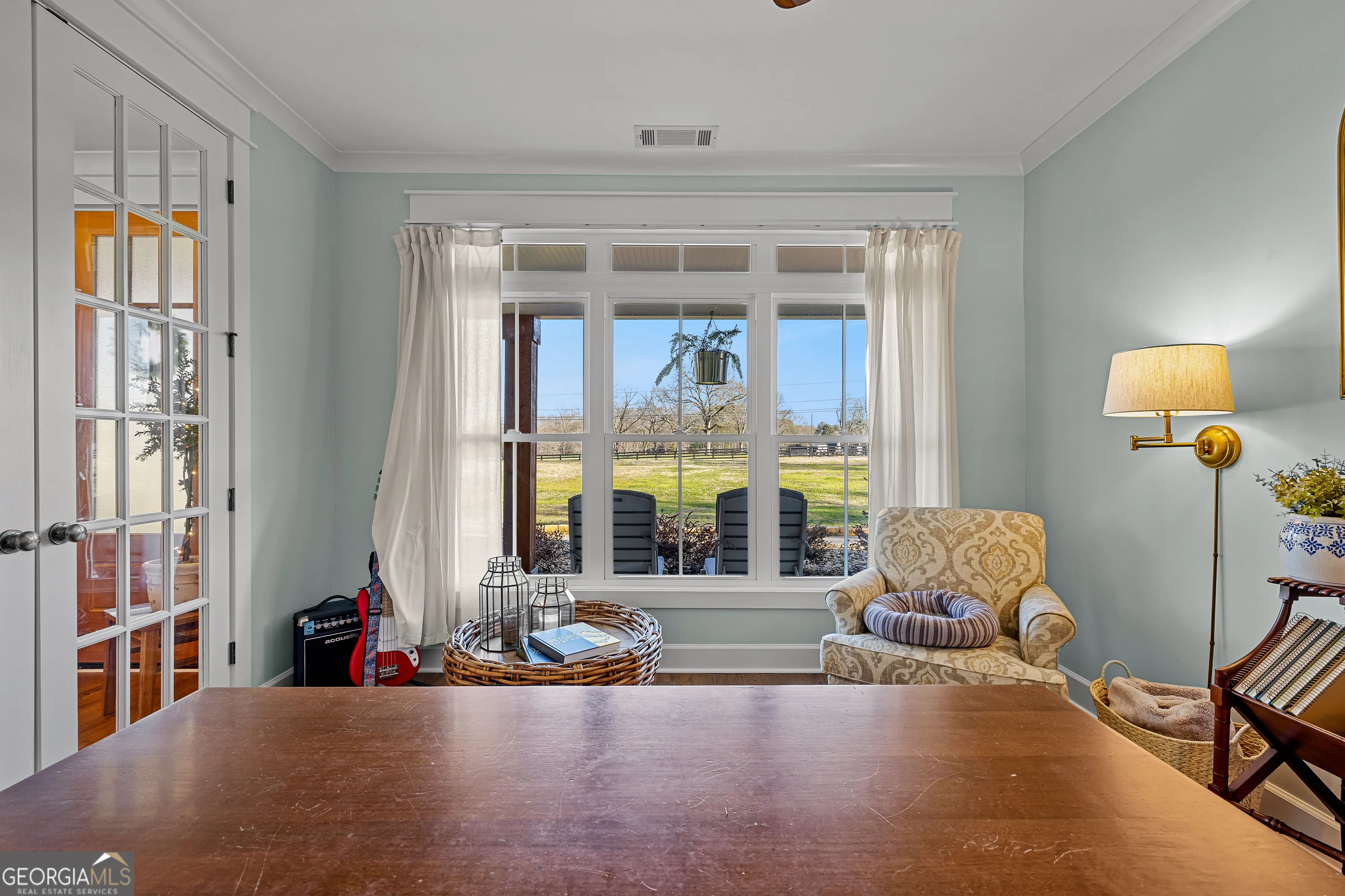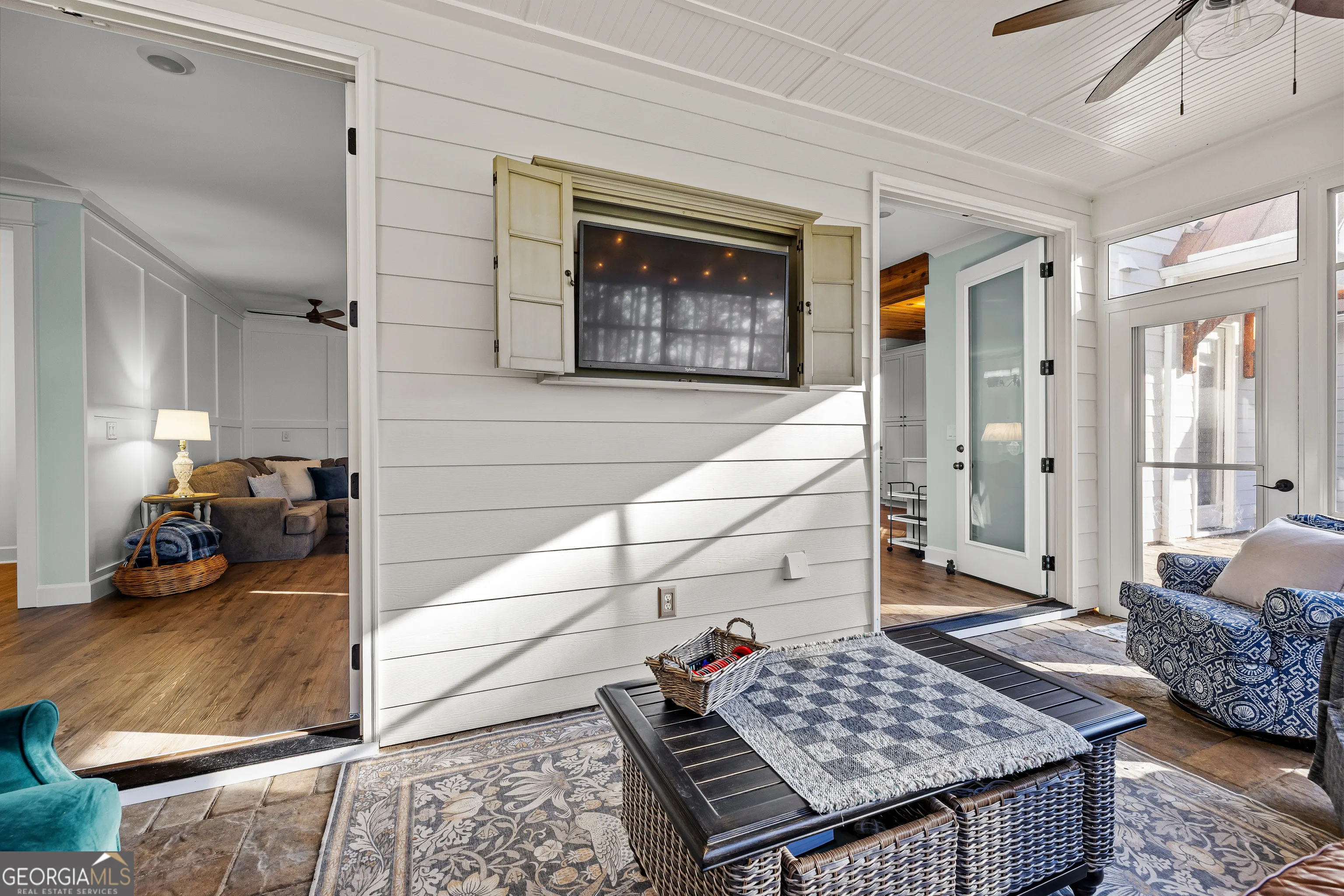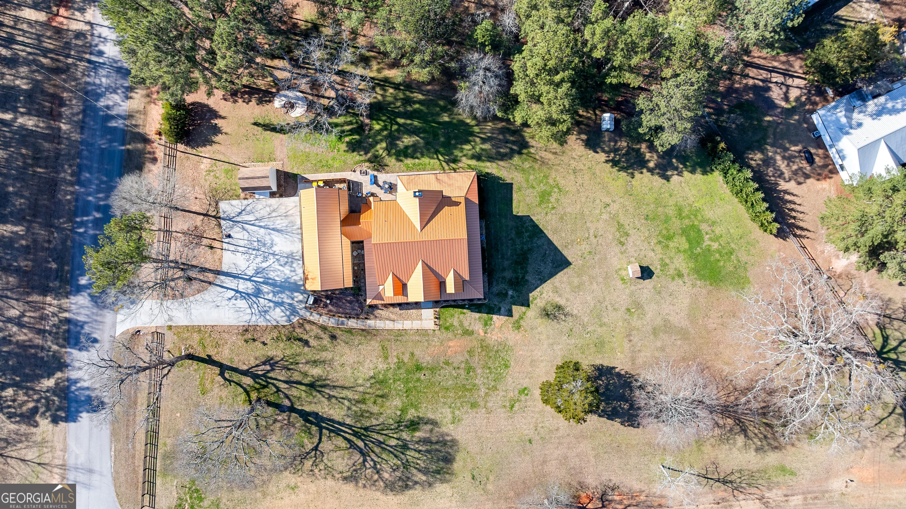 CUSTOM LUXURY FARMHOUSE on 3.37 Acres. Custom built in 2022, this luxury farmhouse offers over 6,200 square feet of beautifully designed living space with five bedrooms, five-and-a-half bathrooms, three bedrooms on the main level, a dedicated home office, and a four-car garage with approximately 800 square feet of finished space above it. Thoughtfully designed with flexibility in mind, this home combines classic farmhouse character with high-end finishes, abundant natural light, and a layout that works for real life. Inside, the home feels bright and open thanks to the abundance of windows throughout. Nine-foot ceilings and tongue-and-groove ceiling treatments in the kitchen and dining areas add warmth and texture without feeling heavy. The kitchen features open farmhouse-style shelving, a gas range, walk-in pantry, ample cabinetry, and two large prep tables in place of a traditional island, creating multiple gathering and work zones that feel casual, functional, and inviting. The primary suite on the main level feels like a true retreat, featuring an oversized shower with multiple shower heads, a striking copper freestanding tub, and custom closet built-ins. Two additional main-level bedrooms and a dedicated office provide excellent flexibility for guests, family, or working from home. The three-season porch adds living space and great views to the backyard. Upstairs are two more bedrooms along with a game room, media room, and bonus room, ideal for entertaining, hobbies, or creating separate living zones. One of the most unique features of the home is the finished space above the four-car garage. With a full bathroom, massive closet, tons of natural light, and a separate entrance from the garage, this approximately 800-square-foot space is perfect for an in-law suite, private office, studio, or future apartment conversion. Situated on a 3.37-acre corner lot, the property offers a large flat front yard and a wooded backyard that provides privacy without feeling closed in. There is no HOA, plenty of room for a future pool, and an existing well that can be used for irrigation. The home is on public water, septic, and has strong internet service. Located on Old Greenville Road in Fayetteville, you get a peaceful, country feel while still being roughly 10 minutes to Peachtree City grocery shopping, about 15 minutes to the Fayette Pavilion, and approximately 20 minutes to Trilith. Downtown Atlanta is less than an hour and Hartsfield Jackson Airport is a little over 30 minutes away. Zoned for Sarah Harp Minter Elementary, Whitewater Middle, and Whitewater High School. Additional features include insulated interior walls for enhanced sound control and energy efficiency, a tankless water heater, whole-home water filtration and softener system, and in-ceiling speakers in the game room, theater room, workout room, and office. The four-car garage is equipped with two Level 2 EV charging outlets, and the property includes an in-ground irrigation system that can be run off the existing well for efficient landscape watering.