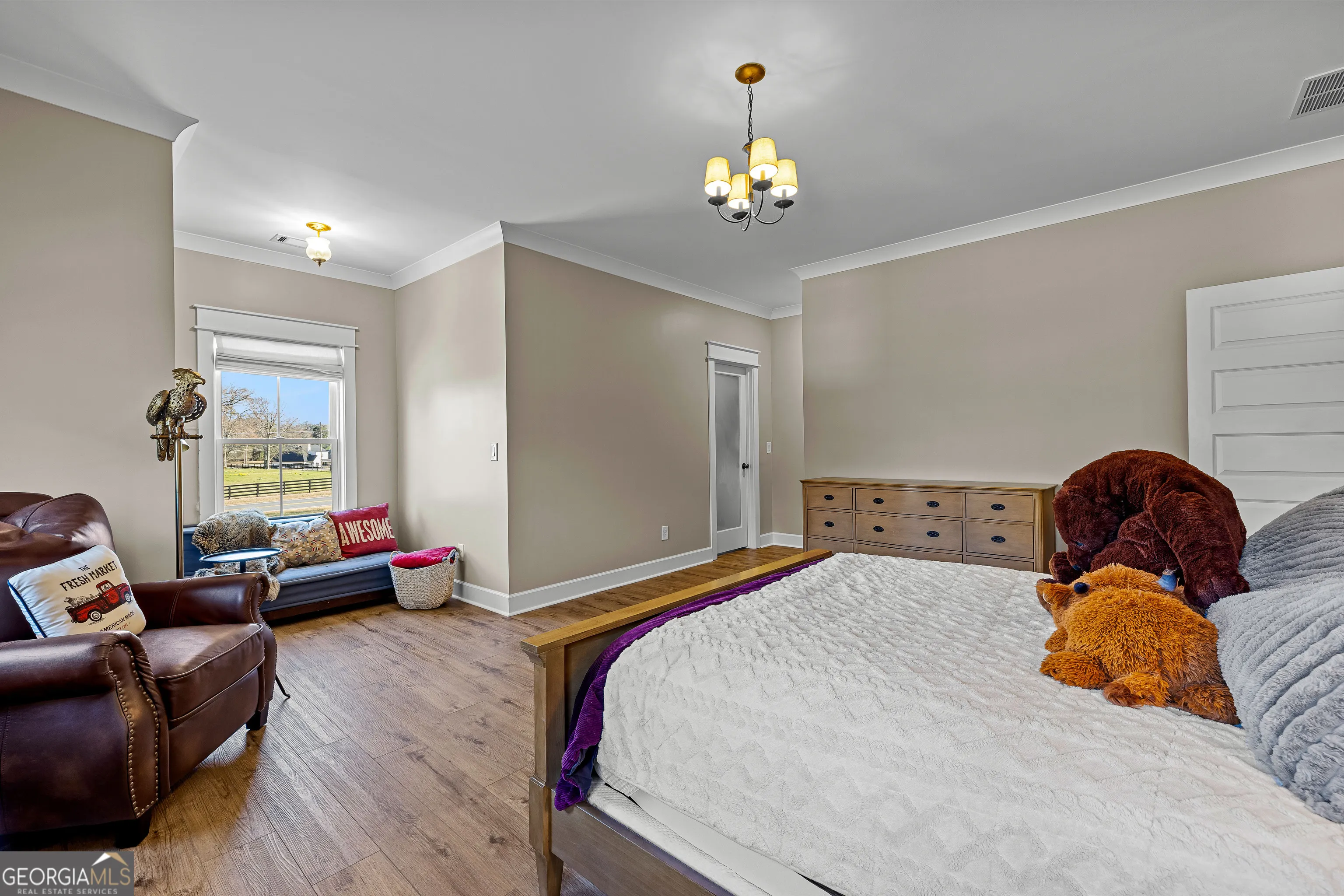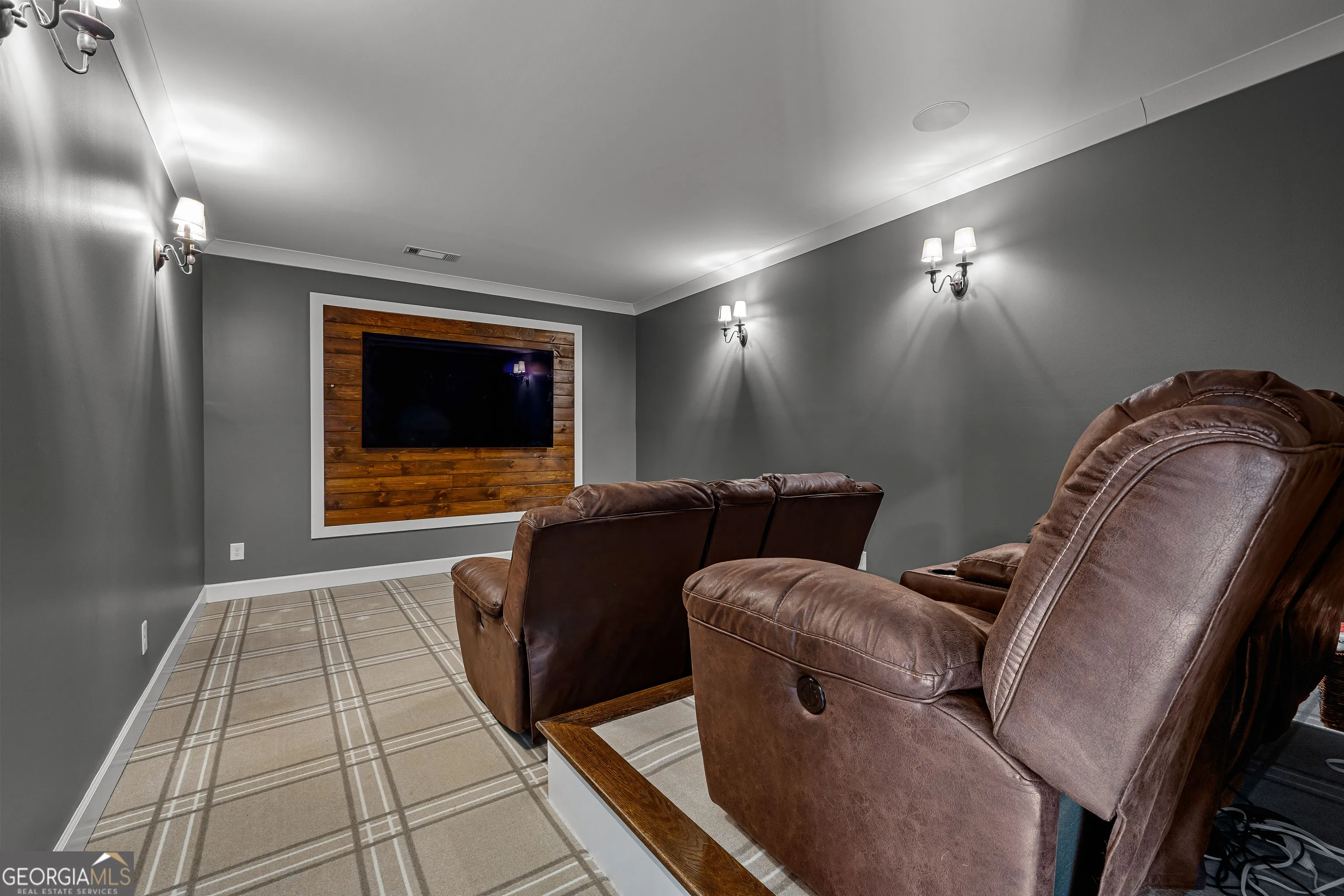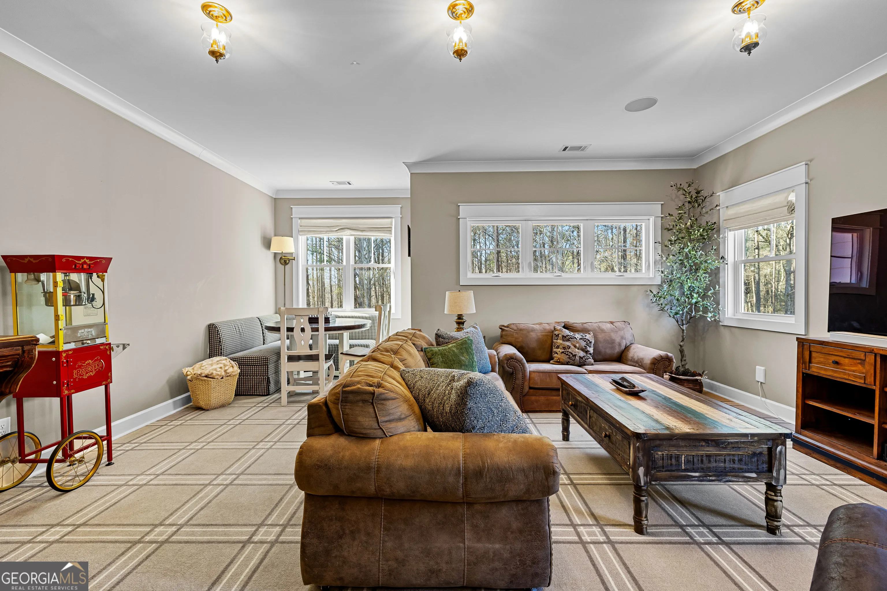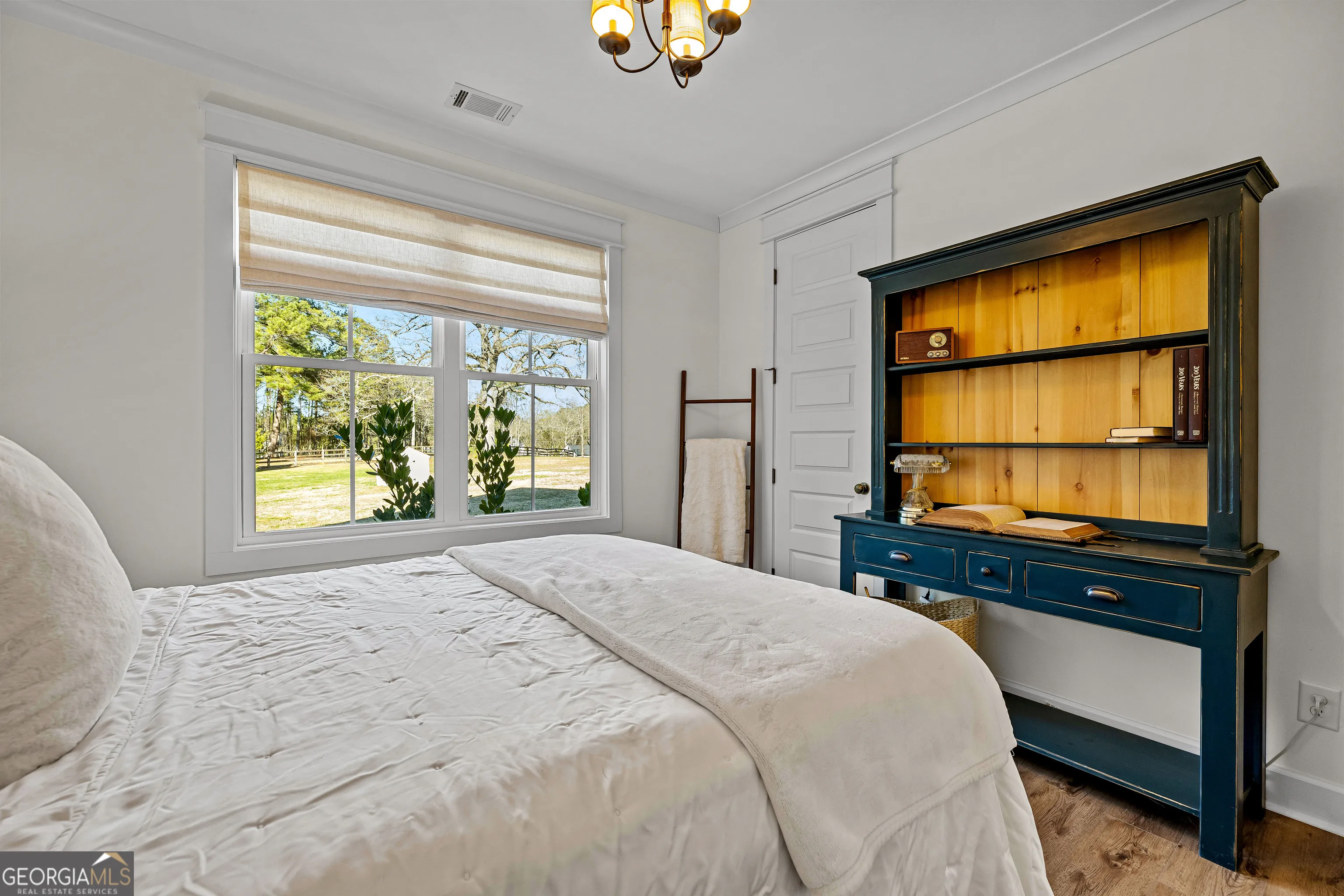 CUSTOM LUXURY FARMHOUSE on 3.37 Acres. Custom built in 2022, this luxury farmhouse offers over 6,200 square feet of beautifully designed living space with five bedrooms, five-and-a-half bathrooms, three bedrooms on the main level, a dedicated home office, and a four-car garage with approximately 800 square feet of finished space above it. Thoughtfully designed with flexibility in mind, this home combines classic farmhouse character with high-end finishes, abundant natural light, and a layout that works for real life. Inside, the home feels bright and open thanks to the abundance of windows throughout. Nine-foot ceilings and tongue-and-groove ceiling treatments in the kitchen and dining areas add warmth and texture without feeling heavy. The kitchen features open farmhouse-style shelving, a gas range, walk-in pantry, ample cabinetry, and two large prep tables in place of a traditional island, creating multiple gathering and work zones that feel casual, functional, and inviting. The primary suite on the main level feels like a true retreat, featuring an oversized shower with multiple shower heads, a striking copper freestanding tub, and custom closet built-ins. Two additional main-level bedrooms and a dedicated office provide excellent flexibility for guests, family, or working from home. The three-season porch adds living space and great views to the backyard. Upstairs are two more bedrooms along with a game room, media room, and bonus room, ideal for entertaining, hobbies, or creating separate living zones. One of the most unique features of the home is the finished space above the four-car garage. With a full bathroom, massive closet, tons of natural light, and a separate entrance from the garage, this approximately 800-square-foot space is perfect for an in-law suite, private office, studio, or future apartment conversion. Situated on a 3.37-acre corner lot, the property offers a large flat front yard and a wooded backyard that provides privacy without feeling closed in. There is no HOA, plenty of room for a future pool, and an existing well that can be used for irrigation. The home is on public water, septic, and has strong internet service. Located on Old Greenville Road in Fayetteville, you get a peaceful, country feel while still being roughly 10 minutes to Peachtree City grocery shopping, about 15 minutes to the Fayette Pavilion, and approximately 20 minutes to Trilith. Downtown Atlanta is less than an hour and Hartsfield Jackson Airport is a little over 30 minutes away. Zoned for Sarah Harp Minter Elementary, Whitewater Middle, and Whitewater High School. Additional features include insulated interior walls for enhanced sound control and energy efficiency, a tankless water heater, whole-home water filtration and softener system, and in-ceiling speakers in the game room, theater room, workout room, and office. The four-car garage is equipped with two Level 2 EV charging outlets, and the property includes an in-ground irrigation system that can be run off the existing well for efficient landscape watering.