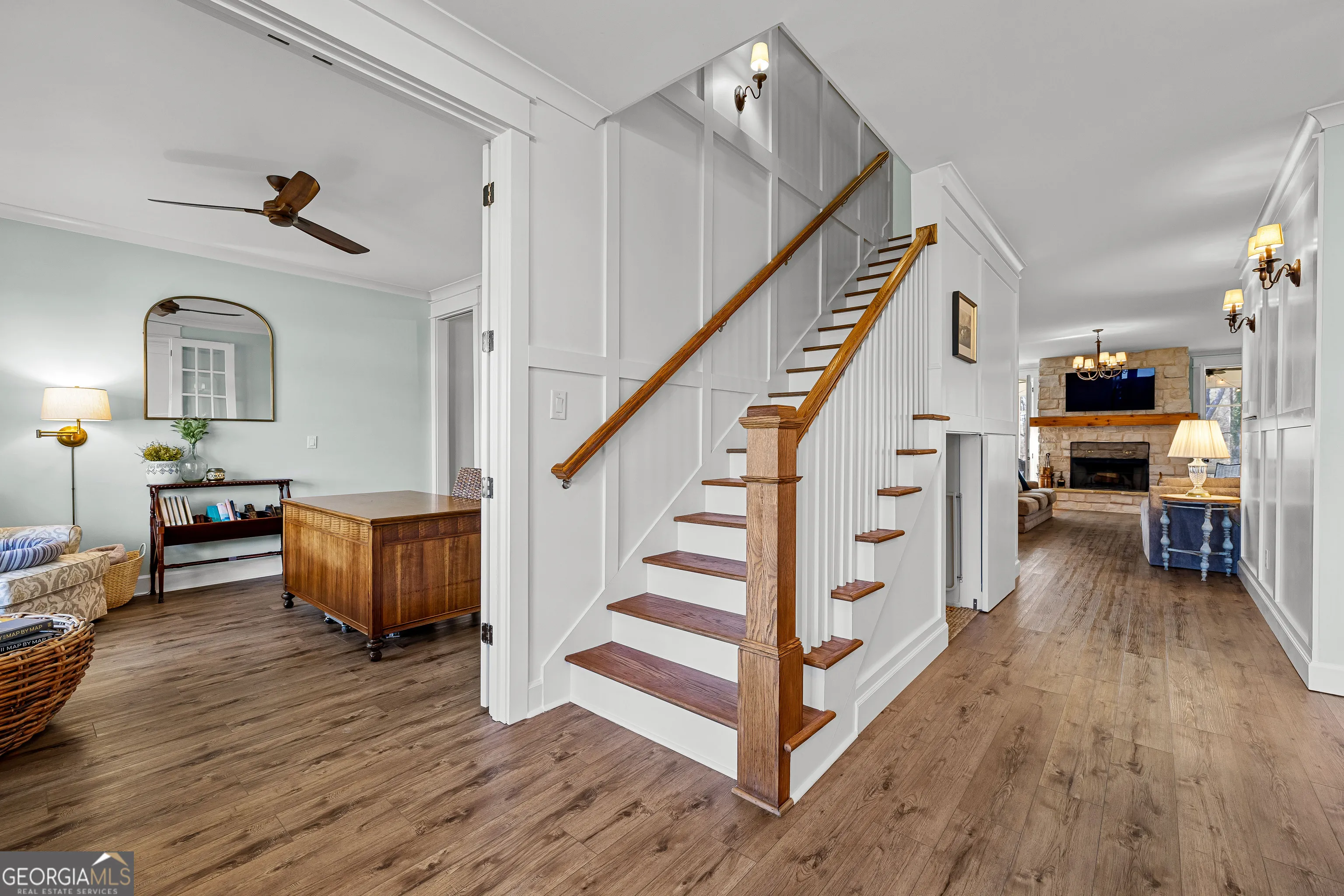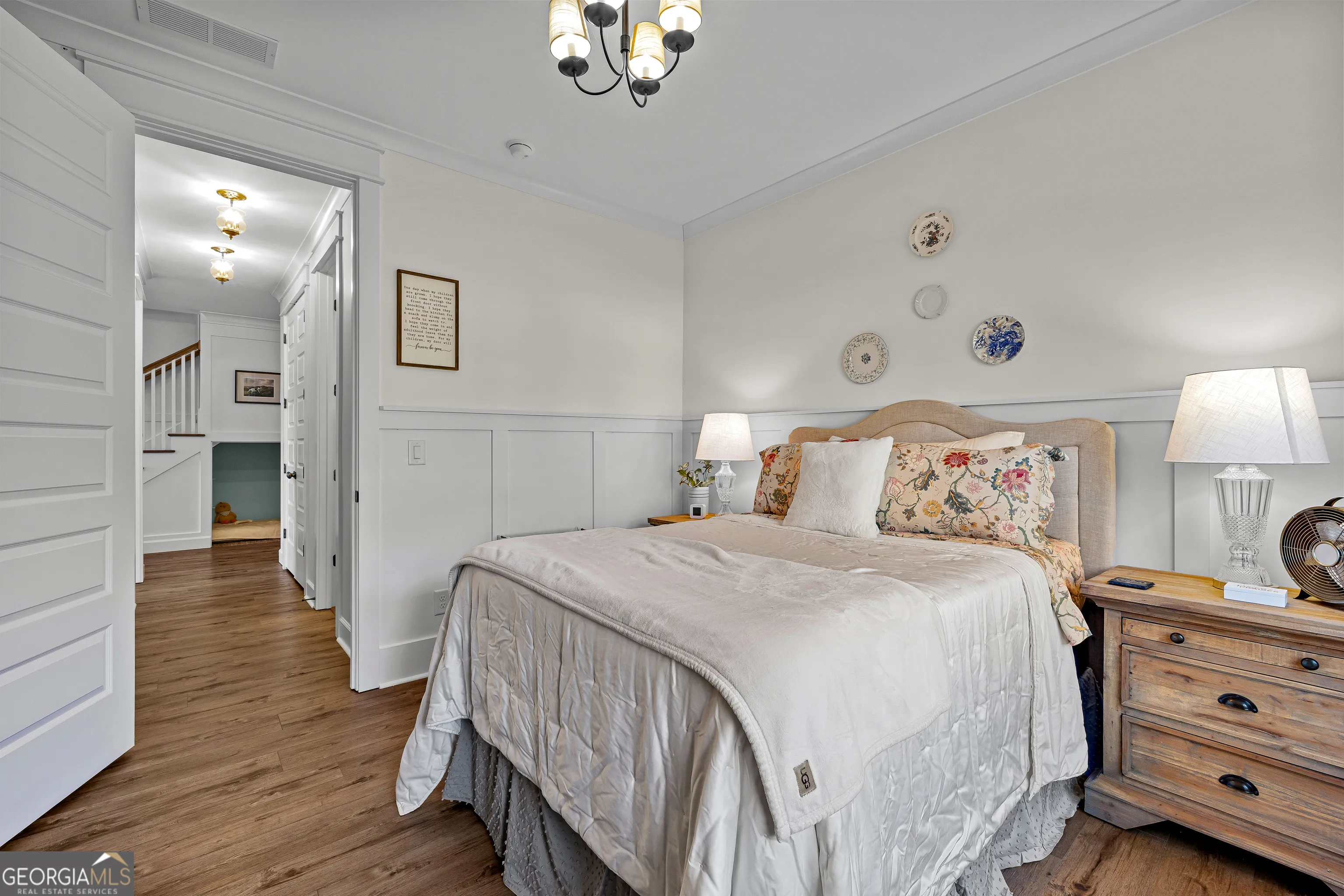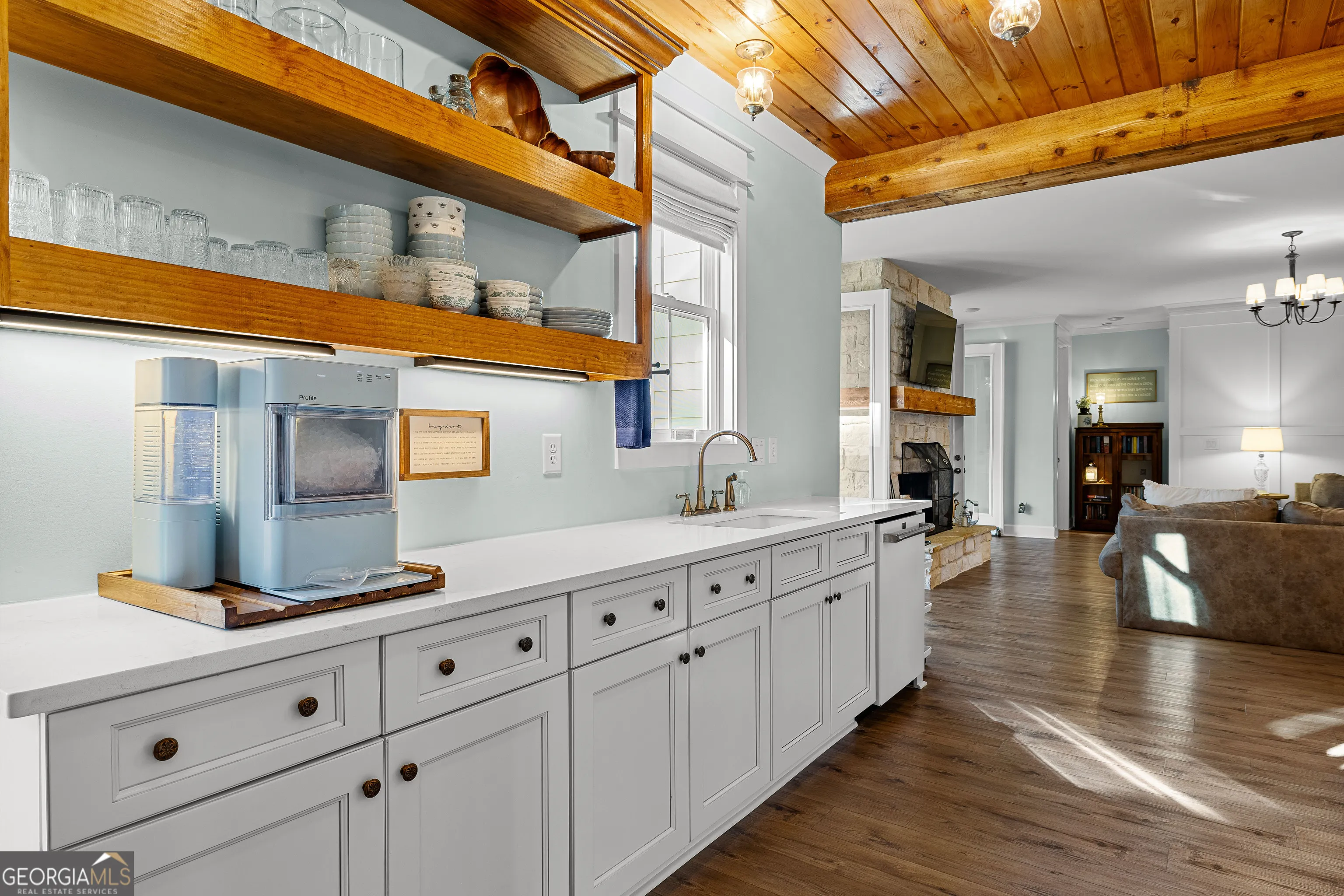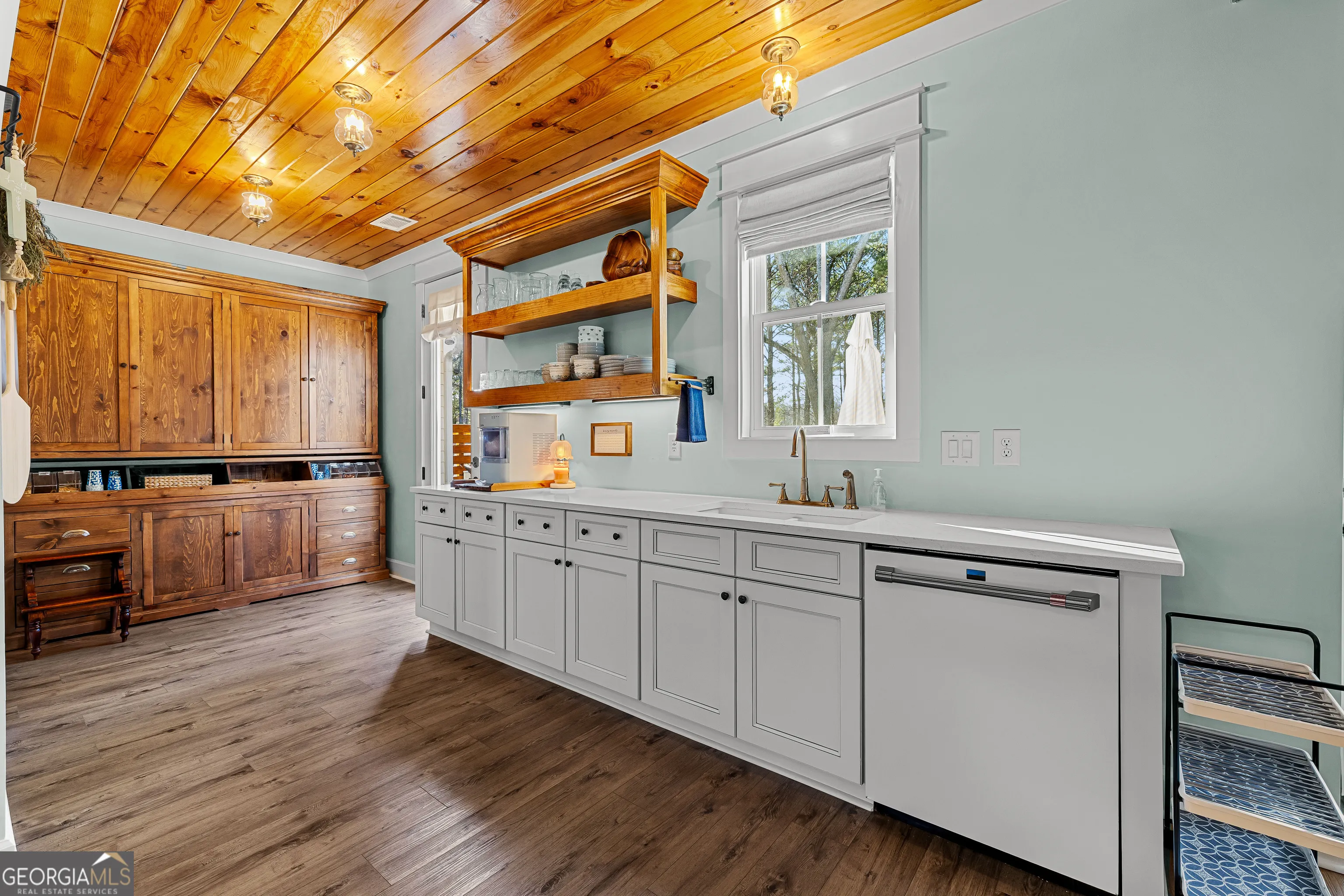 CUSTOM LUXURY FARMHOUSE on 3.37 Acres. Custom built in 2022, this luxury farmhouse offers over 6,200 square feet of beautifully designed living space with five bedrooms, five-and-a-half bathrooms, three bedrooms on the main level, a dedicated home office, and a four-car garage with approximately 800 square feet of finished space above it. Thoughtfully designed with flexibility in mind, this home combines classic farmhouse character with high-end finishes, abundant natural light, and a layout that works for real life. Inside, the home feels bright and open thanks to the abundance of windows throughout. Nine-foot ceilings and tongue-and-groove ceiling treatments in the kitchen and dining areas add warmth and texture without feeling heavy. The kitchen features open farmhouse-style shelving, a gas range, walk-in pantry, ample cabinetry, and two large prep tables in place of a traditional island, creating multiple gathering and work zones that feel casual, functional, and inviting. The primary suite on the main level feels like a true retreat, featuring an oversized shower with multiple shower heads, a striking copper freestanding tub, and custom closet built-ins. Two additional main-level bedrooms and a dedicated office provide excellent flexibility for guests, family, or working from home. The three-season porch adds living space and great views to the backyard. Upstairs are two more bedrooms along with a game room, media room, and bonus room, ideal for entertaining, hobbies, or creating separate living zones. One of the most unique features of the home is the finished space above the four-car garage. With a full bathroom, massive closet, tons of natural light, and a separate entrance from the garage, this approximately 800-square-foot space is perfect for an in-law suite, private office, studio, or future apartment conversion. Situated on a 3.37-acre corner lot, the property offers a large flat front yard and a wooded backyard that provides privacy without feeling closed in. There is no HOA, plenty of room for a future pool, and an existing well that can be used for irrigation. The home is on public water, septic, and has strong internet service. Located on Old Greenville Road in Fayetteville, you get a peaceful, country feel while still being roughly 10 minutes to Peachtree City grocery shopping, about 15 minutes to the Fayette Pavilion, and approximately 20 minutes to Trilith. Downtown Atlanta is less than an hour and Hartsfield Jackson Airport is a little over 30 minutes away. Zoned for Sarah Harp Minter Elementary, Whitewater Middle, and Whitewater High School. Additional features include insulated interior walls for enhanced sound control and energy efficiency, a tankless water heater, whole-home water filtration and softener system, and in-ceiling speakers in the game room, theater room, workout room, and office. The four-car garage is equipped with two Level 2 EV charging outlets, and the property includes an in-ground irrigation system that can be run off the existing well for efficient landscape watering.