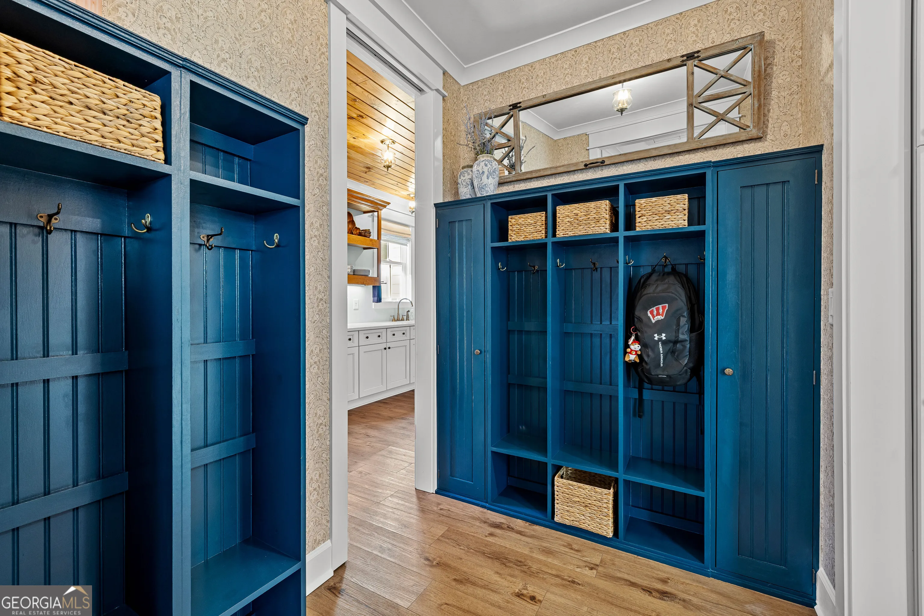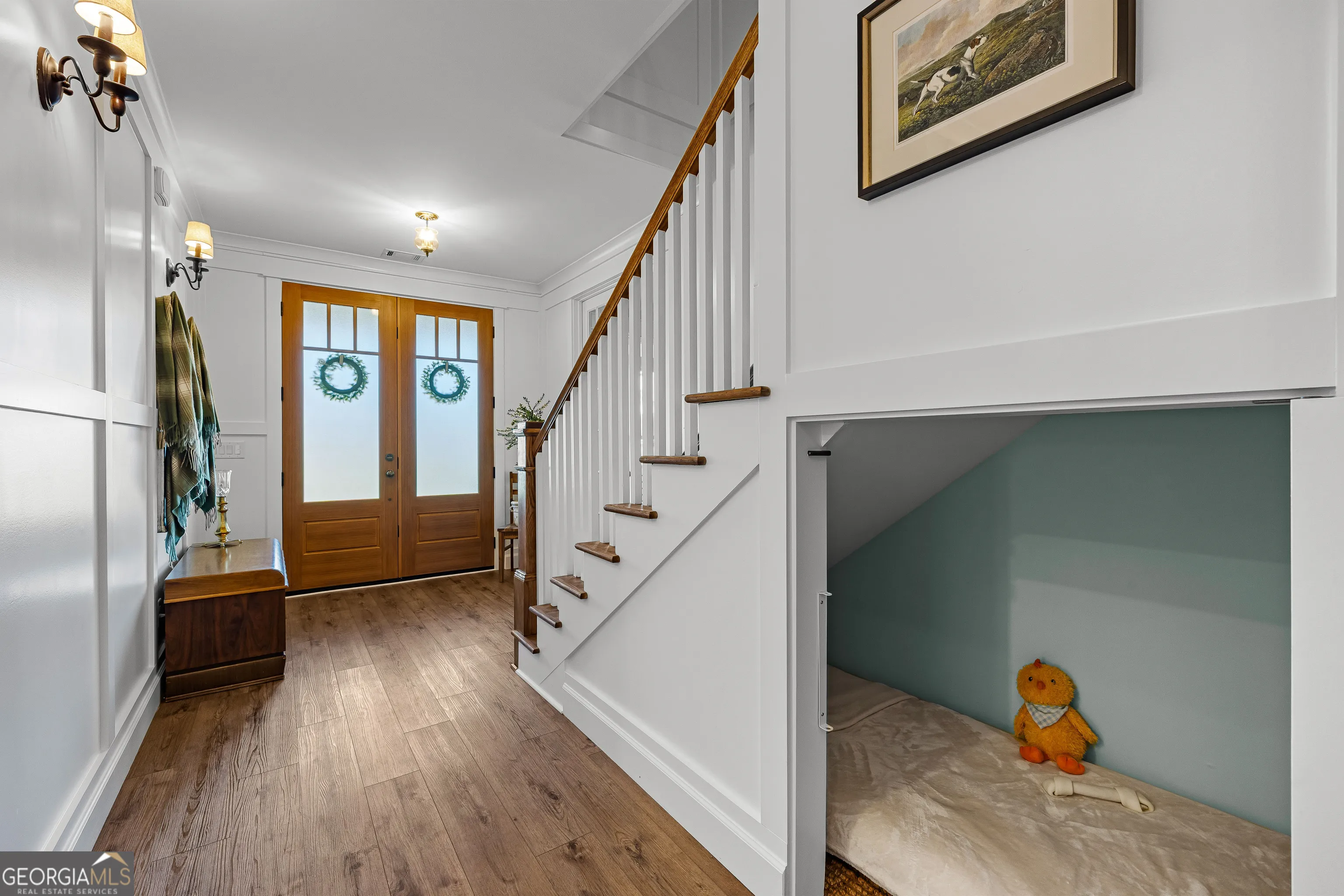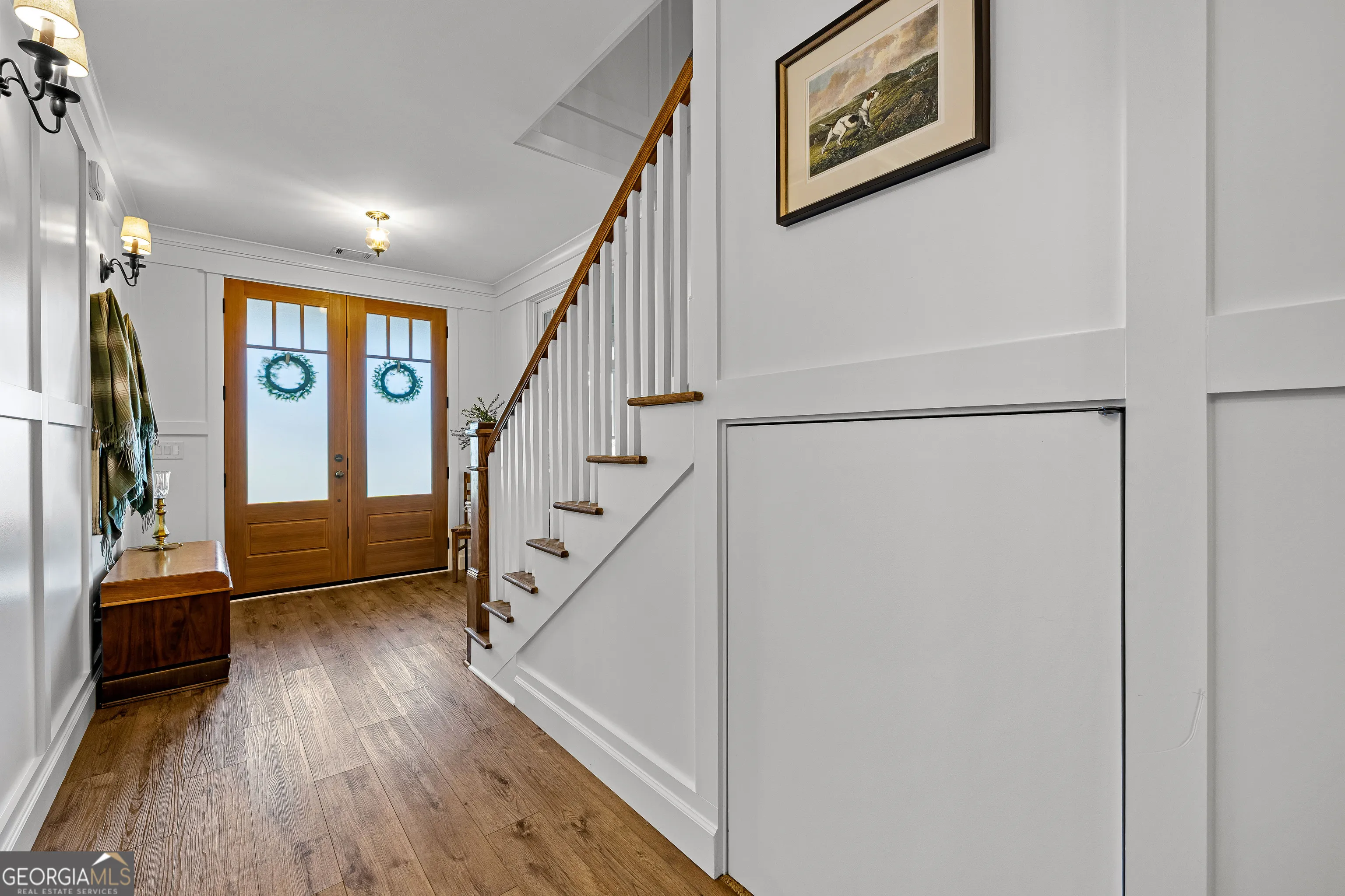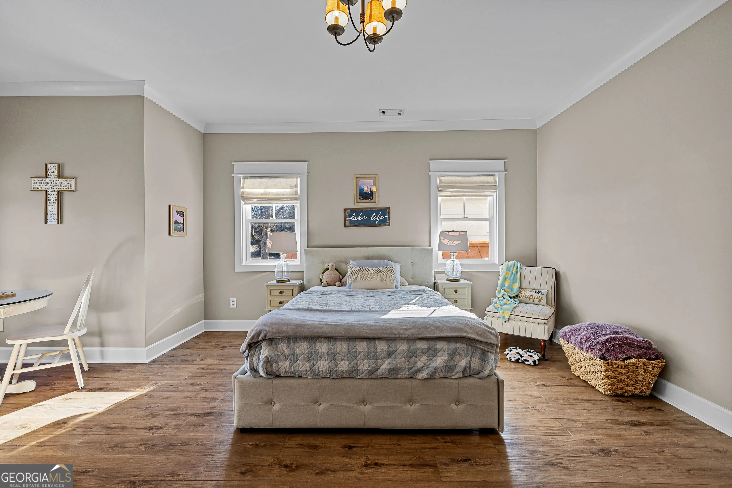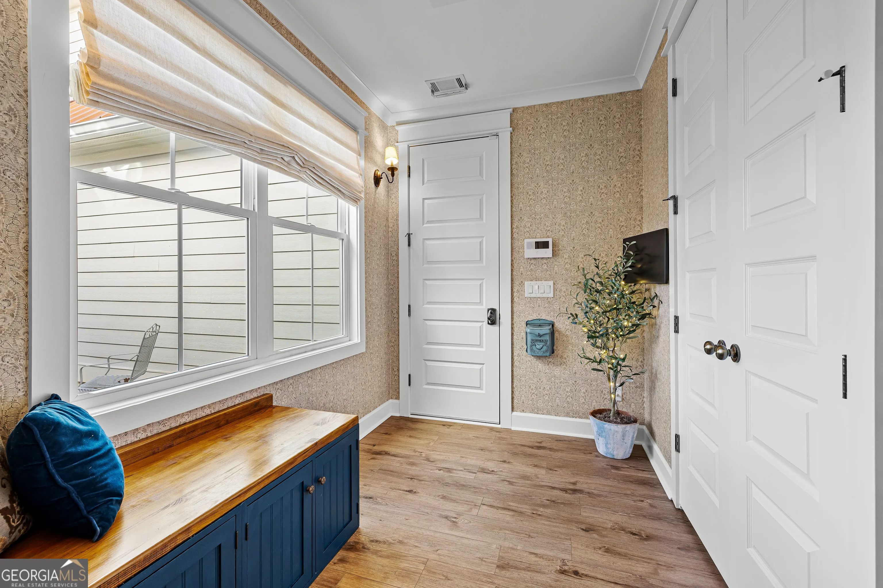 CUSTOM LUXURY FARMHOUSE on 3.37 Acres. Custom built in 2022, this luxury farmhouse offers over 6,200 square feet of beautifully designed living space with five bedrooms, five-and-a-half bathrooms, three bedrooms on the main level, a dedicated home office, and a four-car garage with approximately 800 square feet of finished space above it. Thoughtfully designed with flexibility in mind, this home combines classic farmhouse character with high-end finishes, abundant natural light, and a layout that works for real life. Inside, the home feels bright and open thanks to the abundance of windows throughout. Nine-foot ceilings and tongue-and-groove ceiling treatments in the kitchen and dining areas add warmth and texture without feeling heavy. The kitchen features open farmhouse-style shelving, a gas range, walk-in pantry, ample cabinetry, and two large prep tables in place of a traditional island, creating multiple gathering and work zones that feel casual, functional, and inviting. The primary suite on the main level feels like a true retreat, featuring an oversized shower with multiple shower heads, a striking copper freestanding tub, and custom closet built-ins. Two additional main-level bedrooms and a dedicated office provide excellent flexibility for guests, family, or working from home. The three-season porch adds living space and great views to the backyard. Upstairs are two more bedrooms along with a game room, media room, and bonus room, ideal for entertaining, hobbies, or creating separate living zones. One of the most unique features of the home is the finished space above the four-car garage. With a full bathroom, massive closet, tons of natural light, and a separate entrance from the garage, this approximately 800-square-foot space is perfect for an in-law suite, private office, studio, or future apartment conversion. Situated on a 3.37-acre corner lot, the property offers a large flat front yard and a wooded backyard that provides privacy without feeling closed in. There is no HOA, plenty of room for a future pool, and an existing well that can be used for irrigation. The home is on public water, septic, and has strong internet service. Located on Old Greenville Road in Fayetteville, you get a peaceful, country feel while still being roughly 10 minutes to Peachtree City grocery shopping, about 15 minutes to the Fayette Pavilion, and approximately 20 minutes to Trilith. Downtown Atlanta is less than an hour and Hartsfield Jackson Airport is a little over 30 minutes away. Zoned for Sarah Harp Minter Elementary, Whitewater Middle, and Whitewater High School. Additional features include insulated interior walls for enhanced sound control and energy efficiency, a tankless water heater, whole-home water filtration and softener system, and in-ceiling speakers in the game room, theater room, workout room, and office. The four-car garage is equipped with two Level 2 EV charging outlets, and the property includes an in-ground irrigation system that can be run off the existing well for efficient landscape watering.