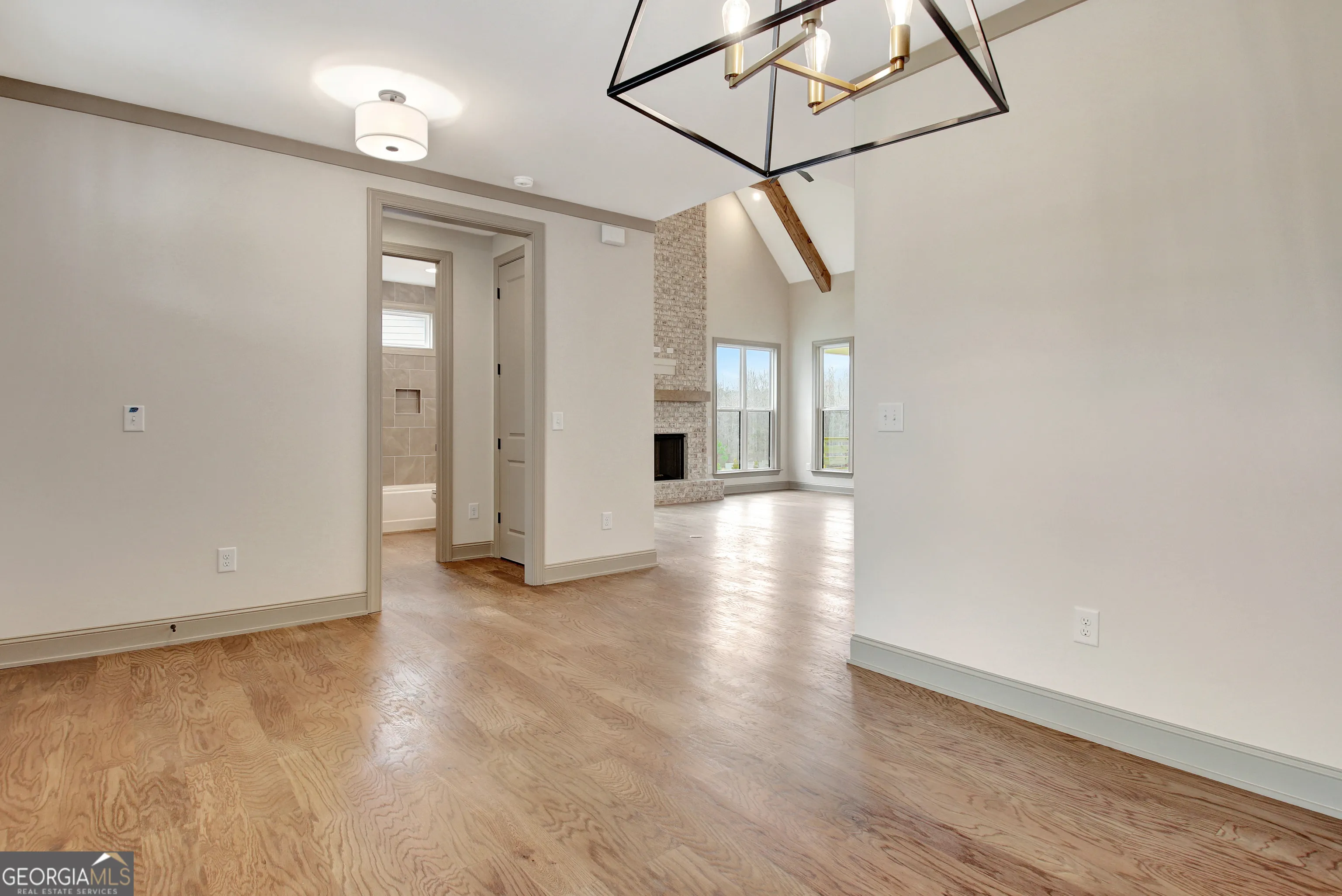 It’s your lucky day! The last basement home in Phase II is ready for a March Delivery! Sitting on Lot 26 in The Reserve at Keg Creek Landing, this home overlooks community greenspace from the front porch and treetops and 8 acres of open space from the rear deck and patio. This Grovetown Plan offers Four Bedrooms, Four Full Baths, Expansive Bonus Room, and Two Car Garage with Mud Bench plus Golf Cart Garage on Lower Level. Drenched in Alabaster, Brick and B&B Accents, Wood Pediments, and Black Windows, the home brings exterior allure to Malone Ct. Welcomed by a Covered Front Porch, the Foyer opens to Dining room with Board and Batten accent wall and leads to Guest Room/Office on Main. Adjacent full Bath showcases Tub to Ceiling Tiled Tub Surround plus Vanity with Quartz top and Moen fixtures. Light-filled Great Room boasts Vaulted Ceilings with Wood Beams and Floor to Ceiling Brick Gas Start Fireplace. Kitchen offers Two Toned Soft-close Shaker Cabinetry, Painted Custom Island with Trash/Recycle Drawer, Custom Vent Hood, Stainless Steel Professional 6 Burner Gas Range, Quartz Countertops, Tiled Backsplash, Under Cabinet Lighting, and Oversized Walk-In Pantry with Custom Shelving. Breakfast area adorned with chandelier opens to Rear Deck with Hardie B&B ceilings, all overlooking Open Space. Primary Suite on Main features Barn Door entry to luxurious En-suite Bath. Bath presents Raised Double Sink Vanity with Quartz top, Soaking Tub with B&B Surround, Tiled Shower with Niche, Corner Bench and Frameless Glass Door, Separate Water Closet and Two Walk-In Closets with Site Built Custom Shelving – one giving direct access to Laundry Room. Wide Stairwell brings you to the Upper level which provides an Ensuite Bedroom, additional Bedroom, Oversized Bonus and Hallway Bathroom with Quartz Topped Vanity, and Separated wet area. Full, Daylight Basement with Terrace Level patio, Golf Cart Garage with Overhead Door and Plumbed for Future Bath. *Site Finished Hardwood Floors *Designer Lighting Package *Custom Trim Package with Crown Molding and Window Sills *Laundry Room on Main connects to Primary Closet *Hardie Siding *Spray Foam Insulation *Trimmed and Painted Garages *Golf Cart Garage in Lower Level *Professionally Landscaped Yard *Irrigation *Keg Creek offers a Pavilion, Pool, Pickleball Court, Sidewalks, Street Lights, Connection to Senoia’s multi-use Trail, Easy Golf Cart Access to downtown Senoia and close proximity to Seavy Street Park *FINAL OPPORTUNITY for a Dague Communities BASEMENT home in Phase II