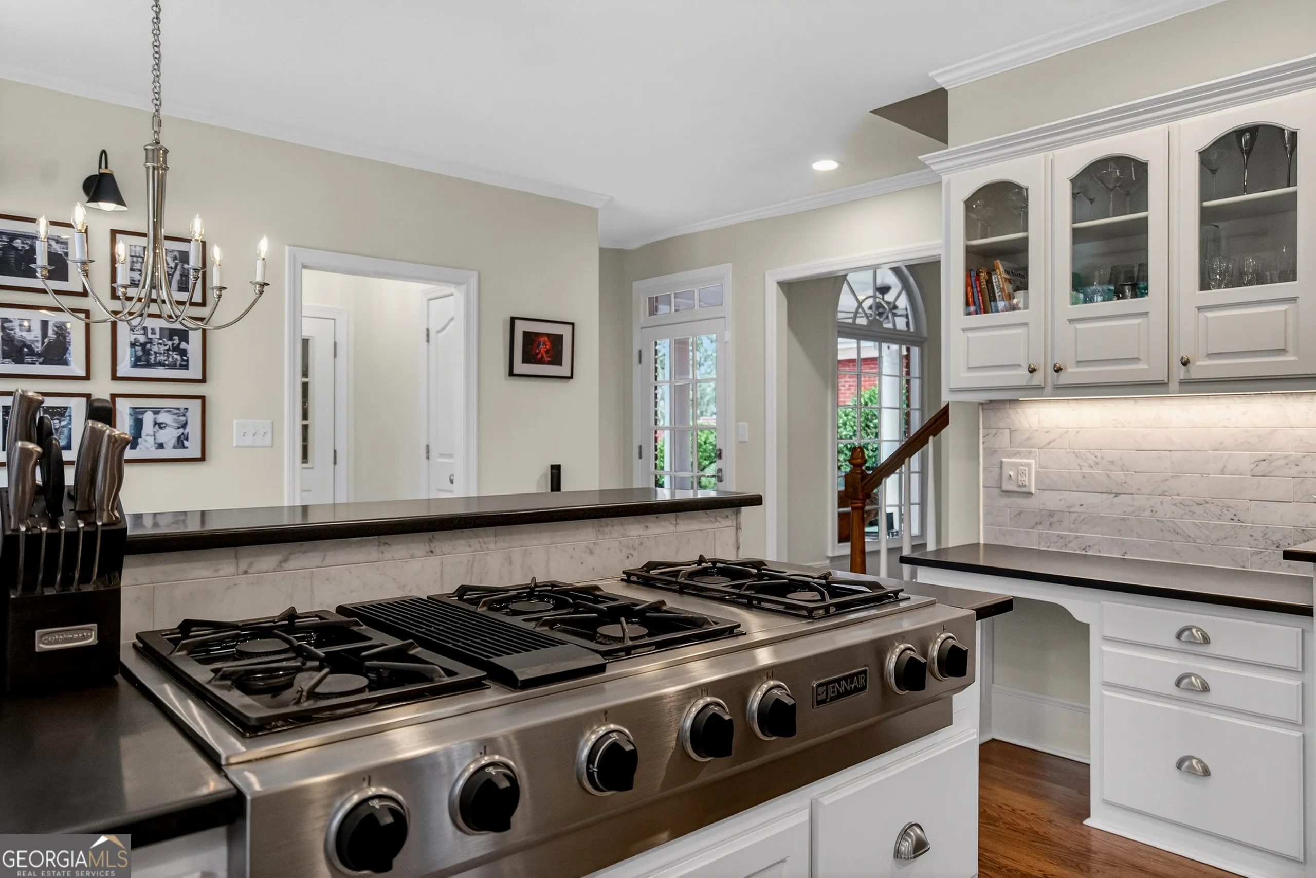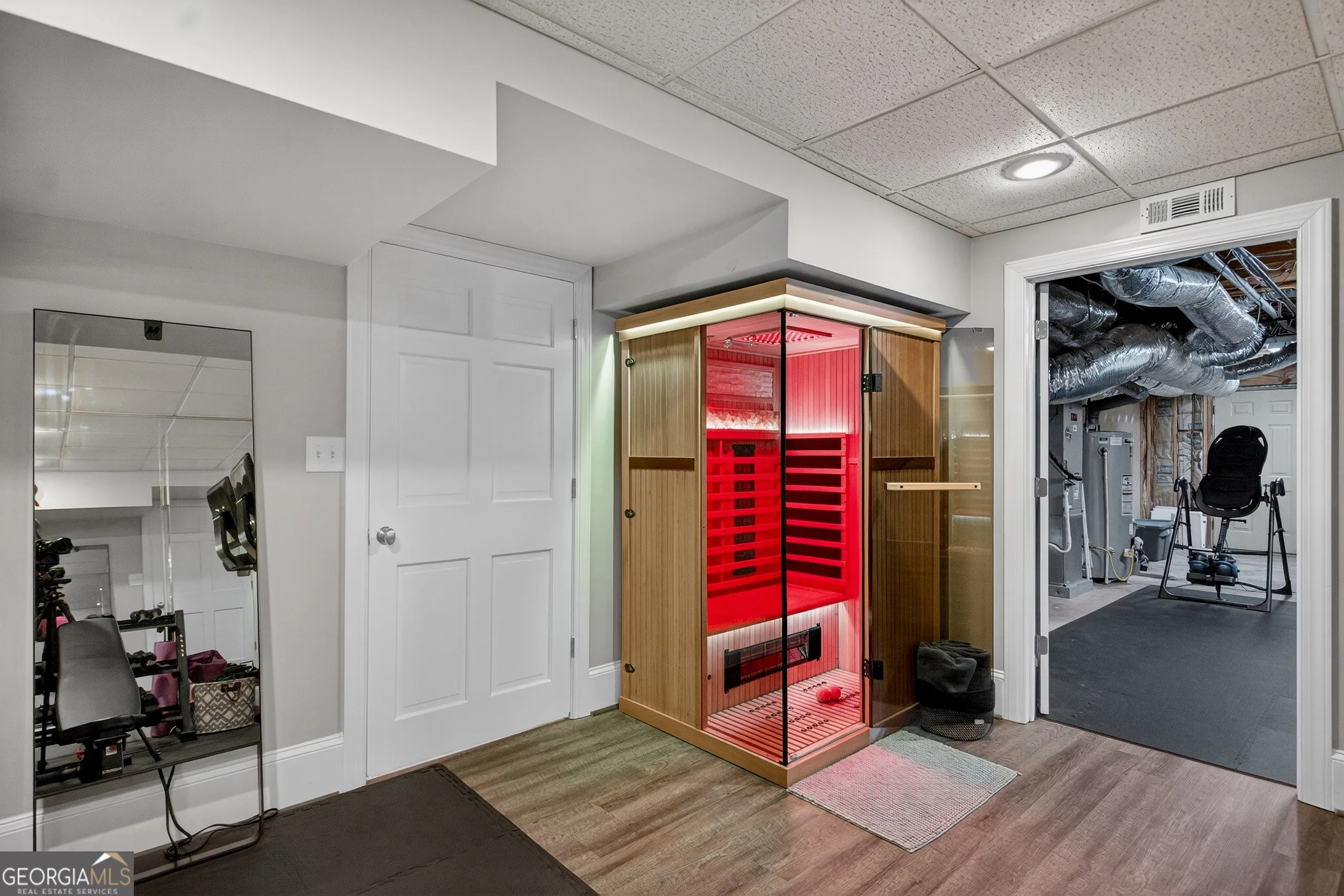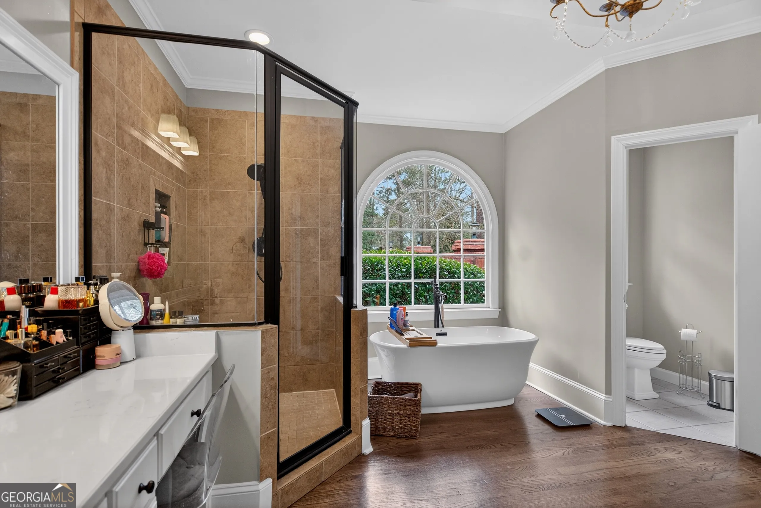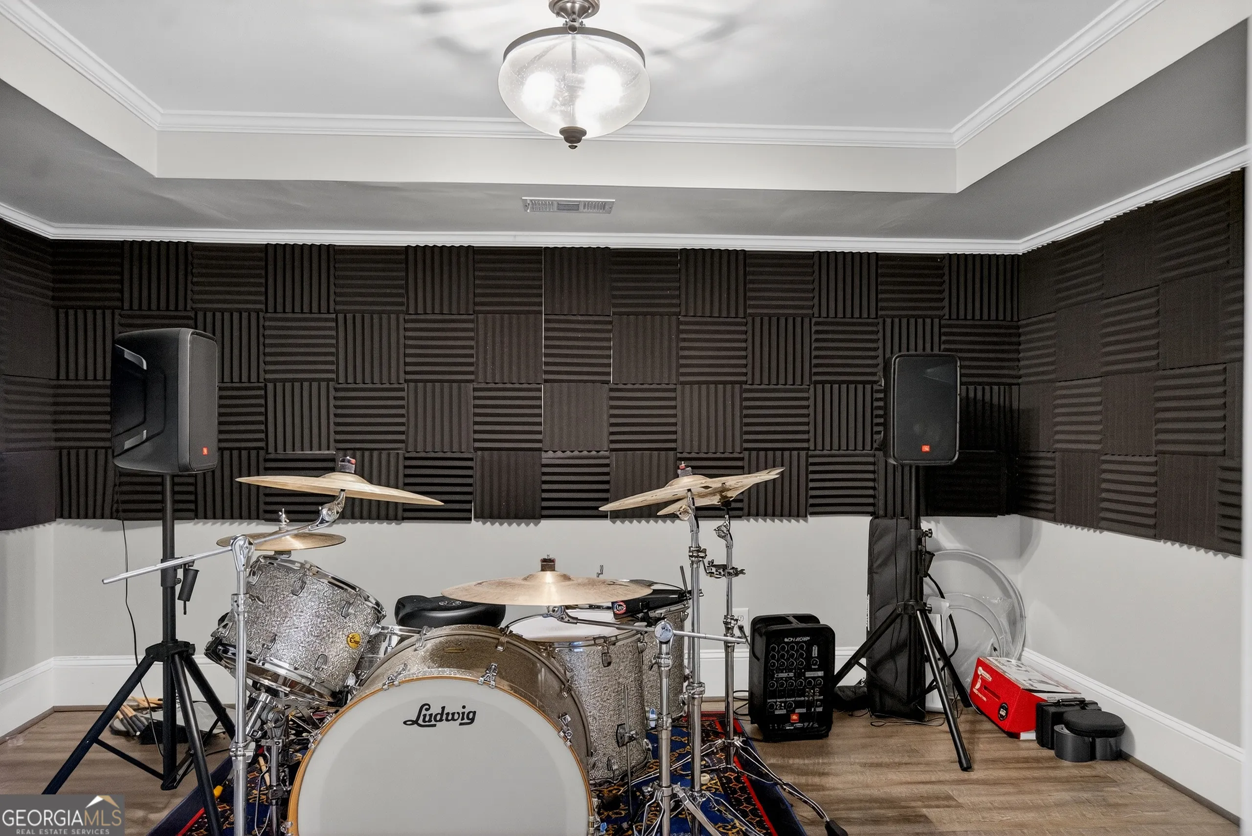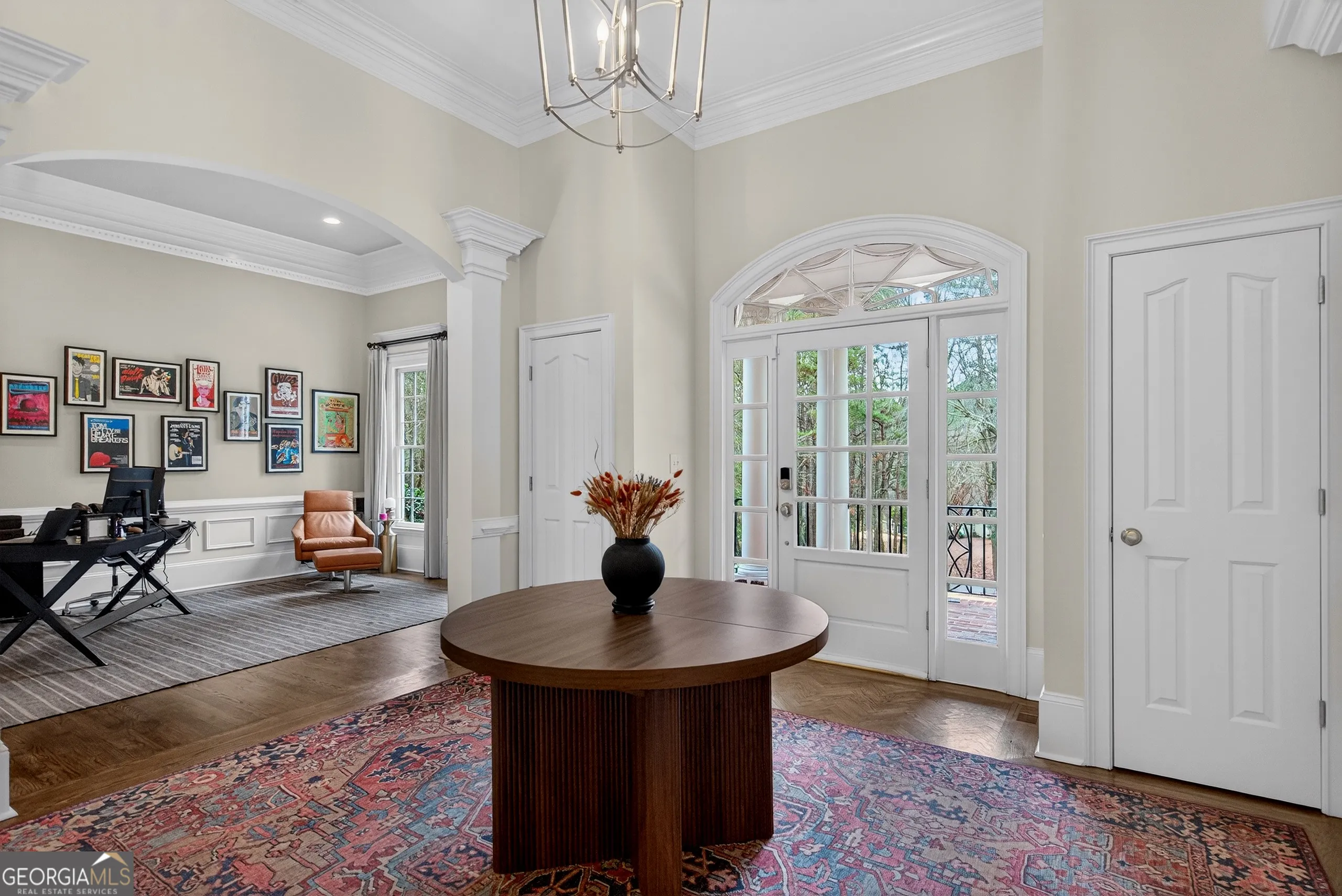 Turnkey executive estate in Moss Creek, one of LaGrange’s most sought-after communities. Priced to include a separately deeded adjacent buildable lot. Five bedrooms, five full baths, and 5,698 sq ft of move-in ready living space across three finished levels on two private acres. Exceptional architectural millwork throughout: coffered ceilings, double-stepped tray ceilings, triple crown molding with dentil detail, raised panel wainscoting, and decorative columns with full capitals. Main level features a gourmet kitchen with granite countertops, floor-to-ceiling pantry, marble backsplash, brand new Bosch dishwasher, GE Cafe refrigerator, double oven, six-burner gas stove, breakfast bar, and walk-in pantry opening to a vaulted family room with gas fireplace, arched windows, and hardwood floors. Brand new GE Profile washer and dryer with steam and Smart Wash technology. Master suite with his-and-her vanities, tile shower, freestanding tub, and oversized walk-in closet. Finished basement with whitewashed brick gas fireplace, additional bedrooms, full bath, climate-controlled home gym with Peloton treadmill and infrared sauna, plus a professionally soundproofed studio ideal for remote work, video calls, music production, or podcasting. Smart home throughout: WiZ by Philips color-capable lighting across interior rooms and five exterior zones, eight HD security cameras, three smart thermostats, monitored alarm, and four Google Nest WiFi routers. Home wired for 1-gig fiber; buyer establishes service. Brand new roof (2025). Water heater replaced 5 years ago. Very large septic tank emptied less than 1 year ago. Both fireplaces converted from wood to gas. Professional landscaping maintained. Moss Creek clubhouse and pristine saltwater pool directly across the street. Tennis courts, West Point Lake access, sidewalks, street lights, underground utilities. HOA $695/year per lot. Ideal for Kia Georgia executives and corporate relocations. Adjacent buildable lot included at list price. Furnishings available under separate agreement. Minutes to Downtown LaGrange, West Point Lake, Kia Georgia, Callaway Gardens, and I-85.