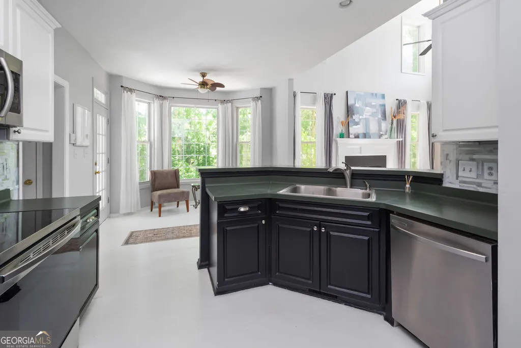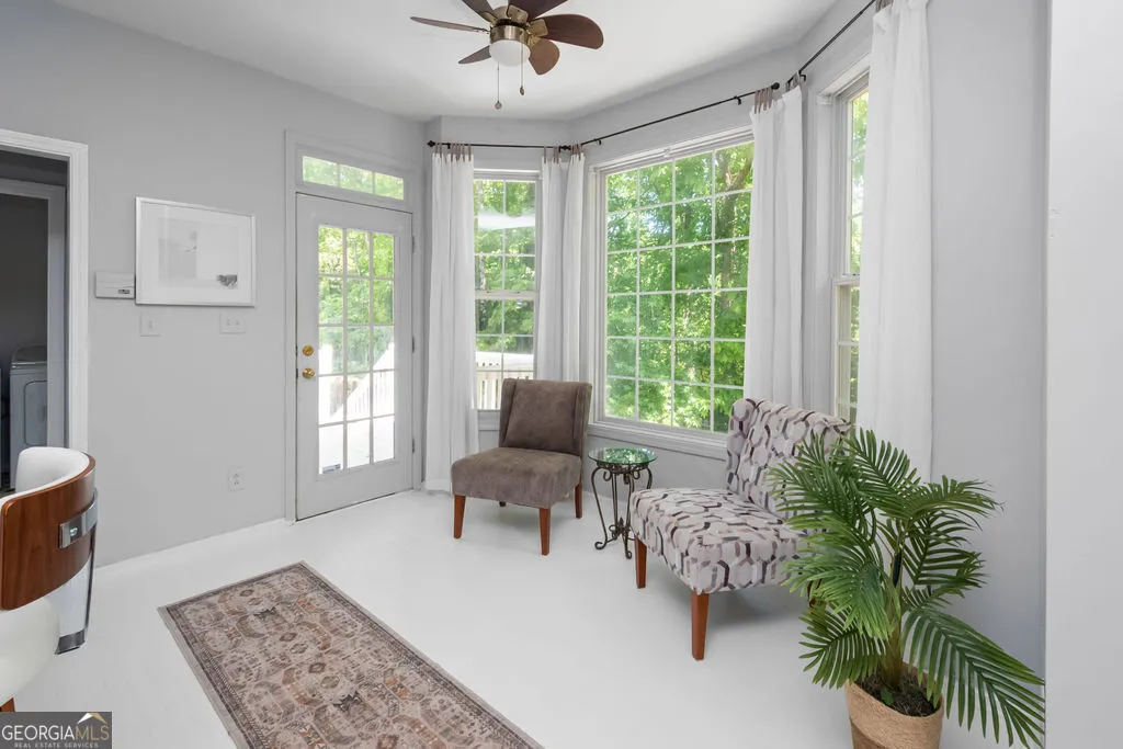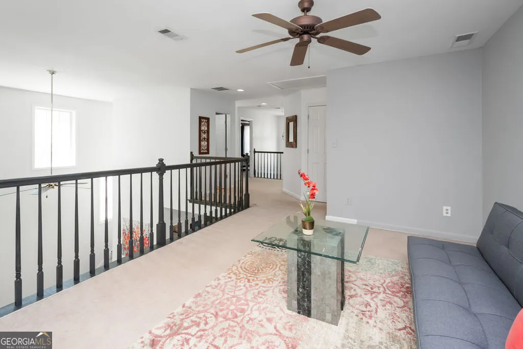 Pure GOLD location in Peachtree City! Just minutes from I-85 North/South with easy access to a wide variety of restaurants and shopping-both by car and golf cart. The home is also conveniently located near Crabapple Elementary School. Golf cart path access is just seconds away, with the home on a greenbelt and a path running directly behind the property-making it incredibly easy to enjoy everything Peachtree City has to offer. From the moment you step inside, this home impresses. A bright, welcoming two-story foyer creates an immediate sense of space and fills the home with natural light. New light fixtures in the foyer and all stairways enhance the fresh, updated feel. Off the entry, you’ll find a versatile side room perfect as a sitting area, home library, or office. The main level opens into spacious living and family rooms lined with windows, continuing the bright, airy atmosphere throughout. Soaring ceilings, smooth ceilings throughout, and a view of the lofted den above add to the open-concept design-ideal for a cozy retreat, play area, or additional lounge space. The kitchen is open and designed for entertaining, seamlessly connecting to the living room so guests can gather comfortably. A charming breakfast nook with a bright bay window leads to a newly painted, spacious deck-perfect for grilling-overlooking a fully fenced yard ideal for pets, entertaining, or relaxing outdoors. A separate dining room provides additional space for hosting larger gatherings. The main-level half bath features a smart toilet with bidet and heated seats, offering an extra touch of comfort and convenience. Upstairs, you’ll find three well-sized bedrooms thoughtfully arranged for functionality. One bedroom includes a custom vanity-perfect for a desk or makeup station. The primary suite features an oversized closet with a window for natural light, along with a separate shower and soaking tub. The fully finished walkout basement is the hidden gem offering high, smooth ceilings and upgraded flooring throughout, making it ideal for a home theater or entertainment space. It also includes a large ensuite bedroom with a spacious bathroom featuring two closets-a walk-in and a linen closet-for excellent storage. All basement fixtures are brand new, and the finishes are both upscale and timeless, creating a warm, inviting atmosphere. An additional storage room and a convenient nook for a refrigerator or mini kitchen setup add even more functionality. Don’t miss the hidden kids’ loft in the basement-perfect as a reading nook or imaginative play space-truly sets this home apart. Walk out the full view door to a large patio that provides an additional outdoor entertainment area, easy access to the yard, space for entertaining or a private space to relax and unwind. This one won’t last-schedule your showing today!