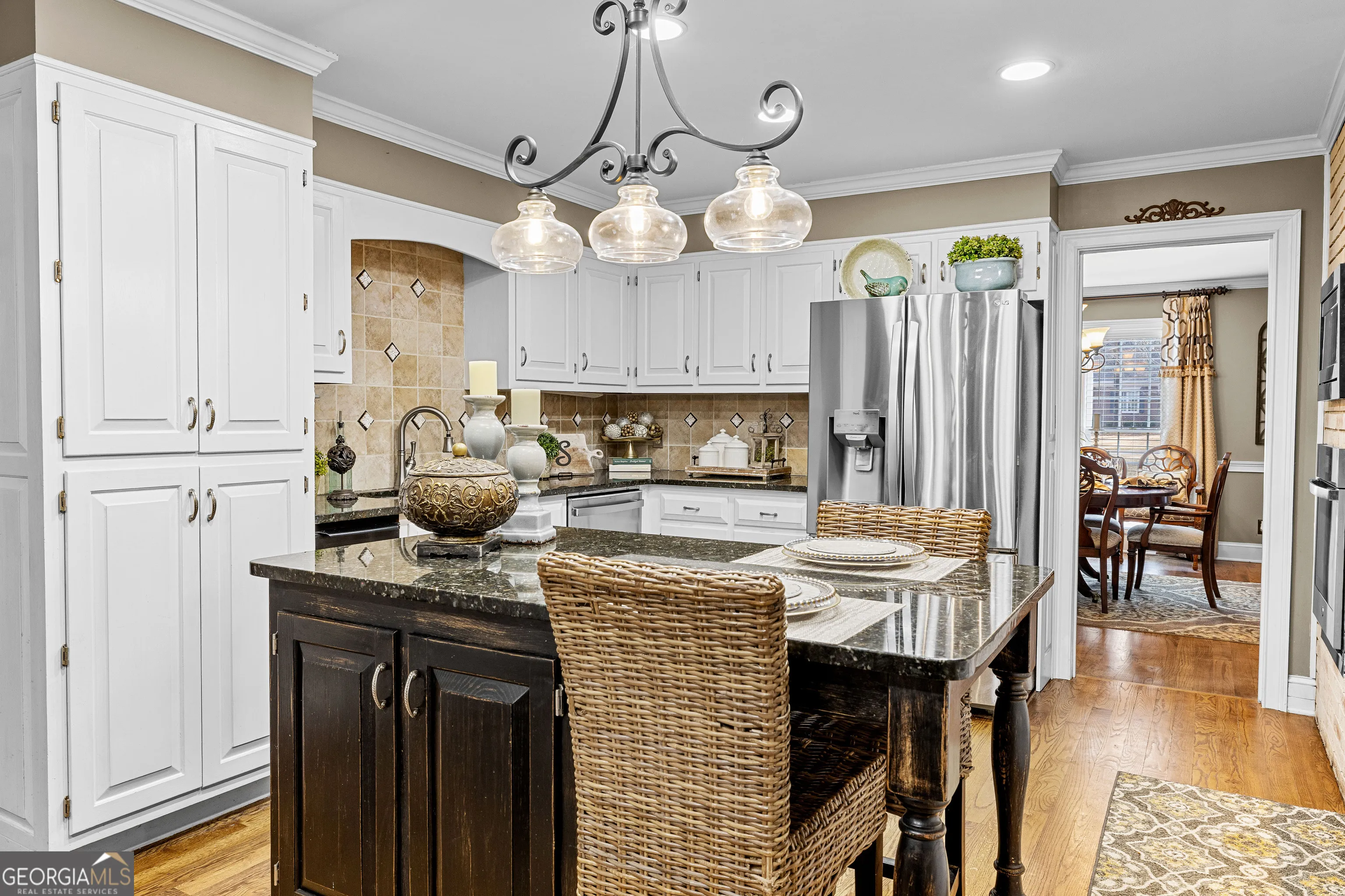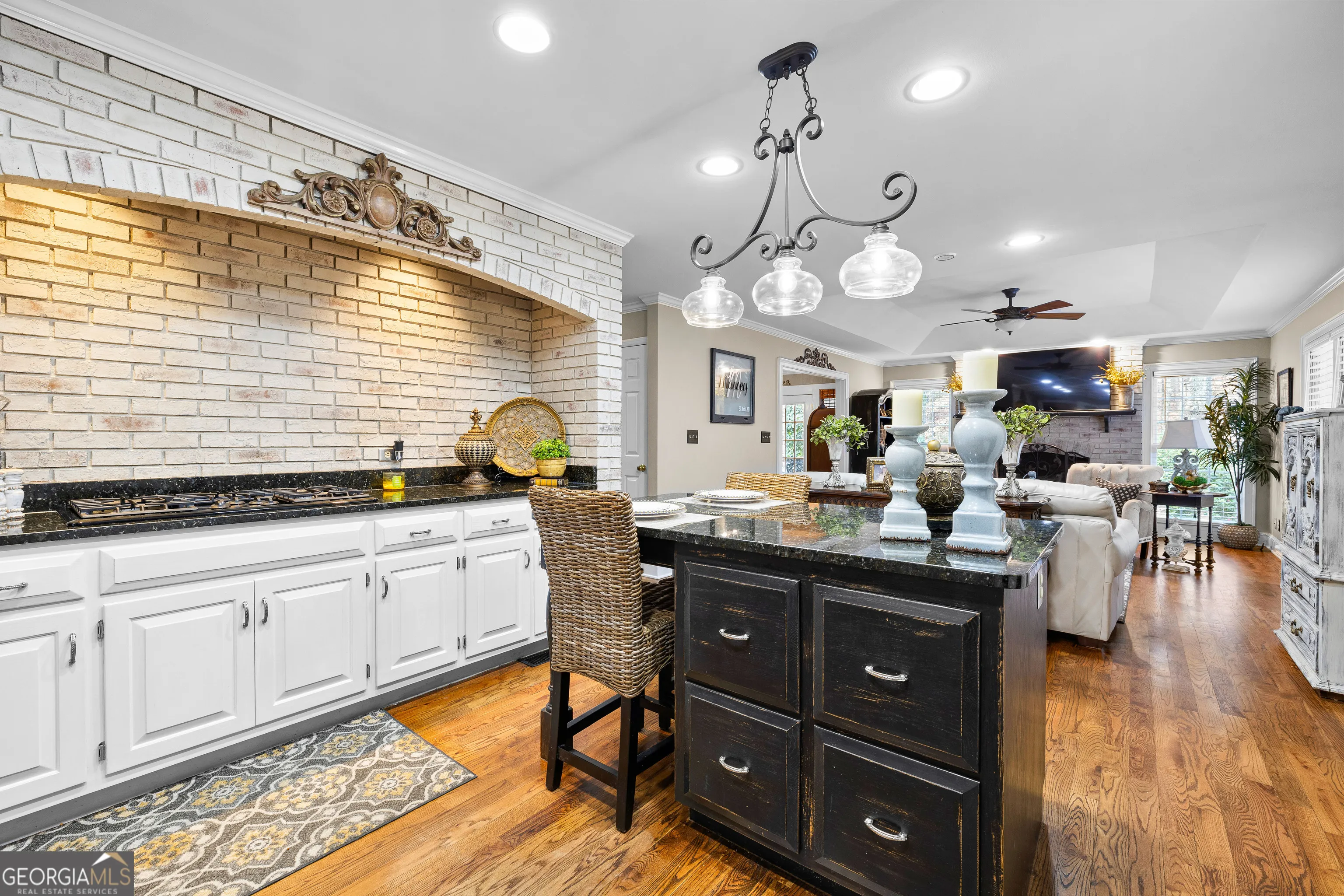 Beautiful 4BR/4.5BA ranch with an optional 5th bedroom in highly sought-after Moss Creek, newly re-zoned to Hillcrest Elementary School for the 2026-2027 school year. This home features oak floors on the main level, three fireplaces, and a warm, inviting kitchen with granite counters, stainless-steel appliances, a center island, and a charming brick accent wall surrounding the cooktop that adds timeless character. Multiple living and dining spaces provide plenty of room for everyday living and entertaining. The oversized primary suite is on the main level along with two additional bedrooms. The full finished basement offers two private en-suite bedrooms, an exercise room, recreation space, and abundant storage-an ideal layout for multi-generational living, teens, guests, or in-laws. An additional main-level flex space-currently set up as a second dining area-would also make an excellent office, sitting room, or optional 5th bedroom. The home sits on a beautifully landscaped lot with mature trees and natural privacy. Moss Creek amenities include a pool, tennis courts, clubhouse, and community dock on West Point Lake. A rare find offering space, flexibility, and a premier neighborhood setting-just minutes to downtown LaGrange, shopping, and schools.