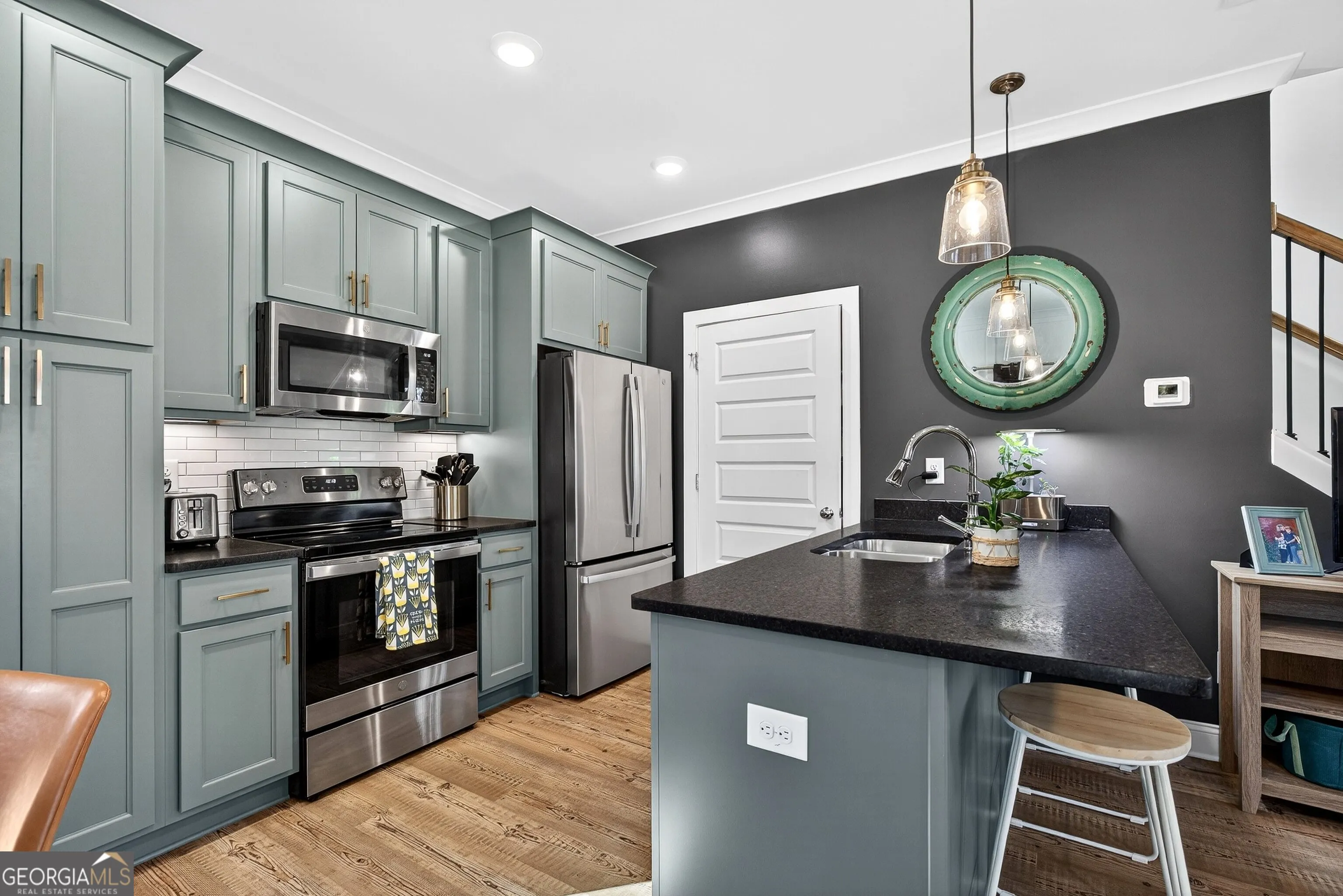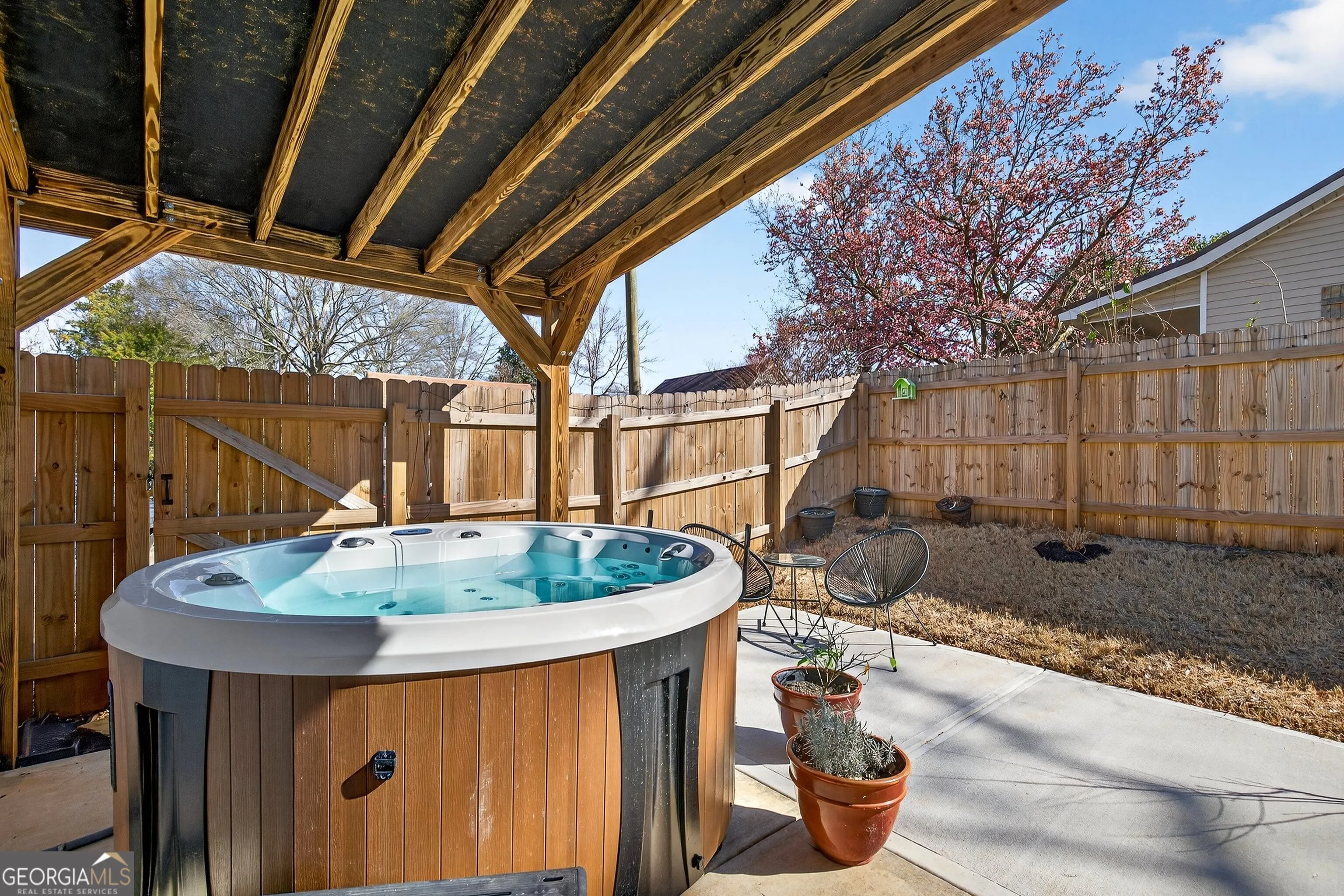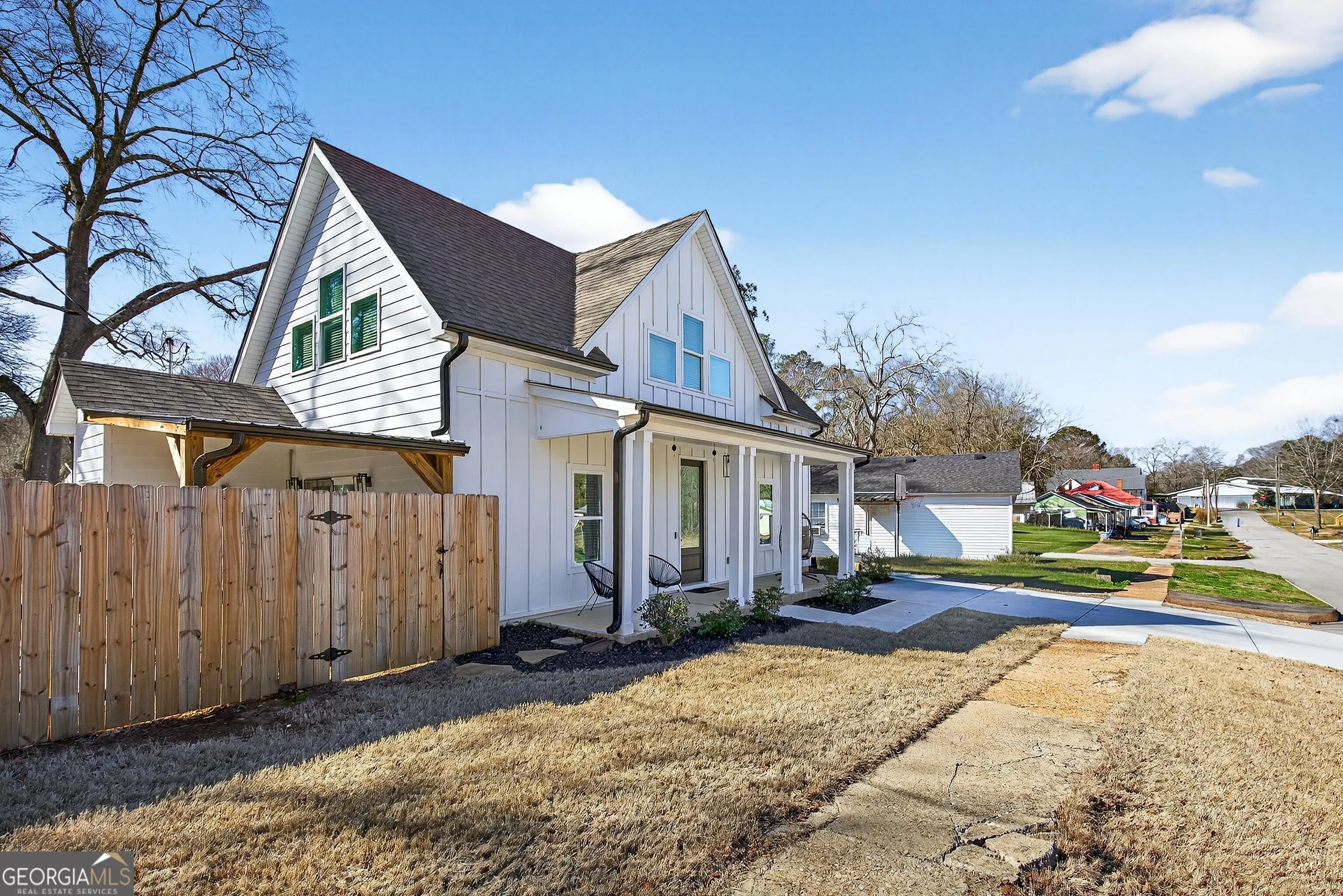 Built in 2024, this beautifully maintained 3-bedroom, 2-bath home offers the benefits of new construction without the wait. Thoughtfully designed with the primary suite on the main level, this home blends modern finishes, energy efficiency, and functional living spaces. The open-concept main floor creates a seamless flow between the kitchen and family room, ideal for both everyday living and entertaining. The kitchen features granite countertops, a tiled backsplash, under-cabinet lighting, soft-close cabinetry, and a separate breakfast area filled with natural light. The spacious family room sits just off the kitchen, creating an inviting gathering space. The primary suite on the main level provides a private retreat, complete with a granite vanity and beautifully tiled shower. Upstairs, you’ll find two additional bedrooms and a full bath – perfect for guests, family, or a home office. Built with quality and efficiency in mind, this home includes foam insulation, durable HardiPlank siding, and a 30-year architectural shingle roof. Custom blinds throughout add style and convenience. Step outside to enjoy the extended back patio with added roof coverage – ideal for relaxing or entertaining year-round. The fully fenced backyard with a six-foot privacy fence provides privacy and peace of mind, while the additional storage garage offers the perfect space for lawn equipment and tools. Located in charming downtown Hogansville, you’ll enjoy small-town character with exceptional convenience – just minutes to I-85 for an easy commute to Newnan, LaGrange, or Atlanta.