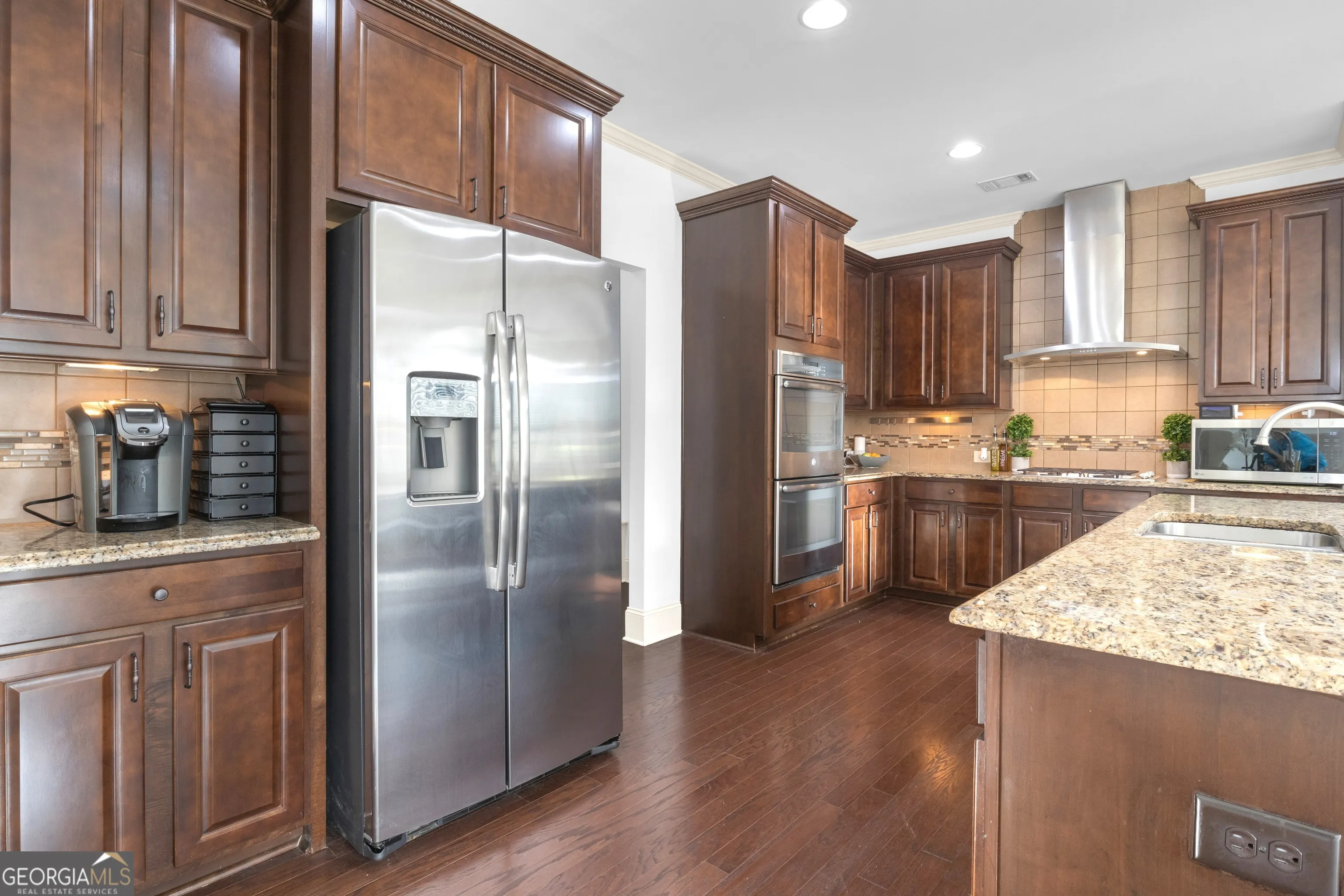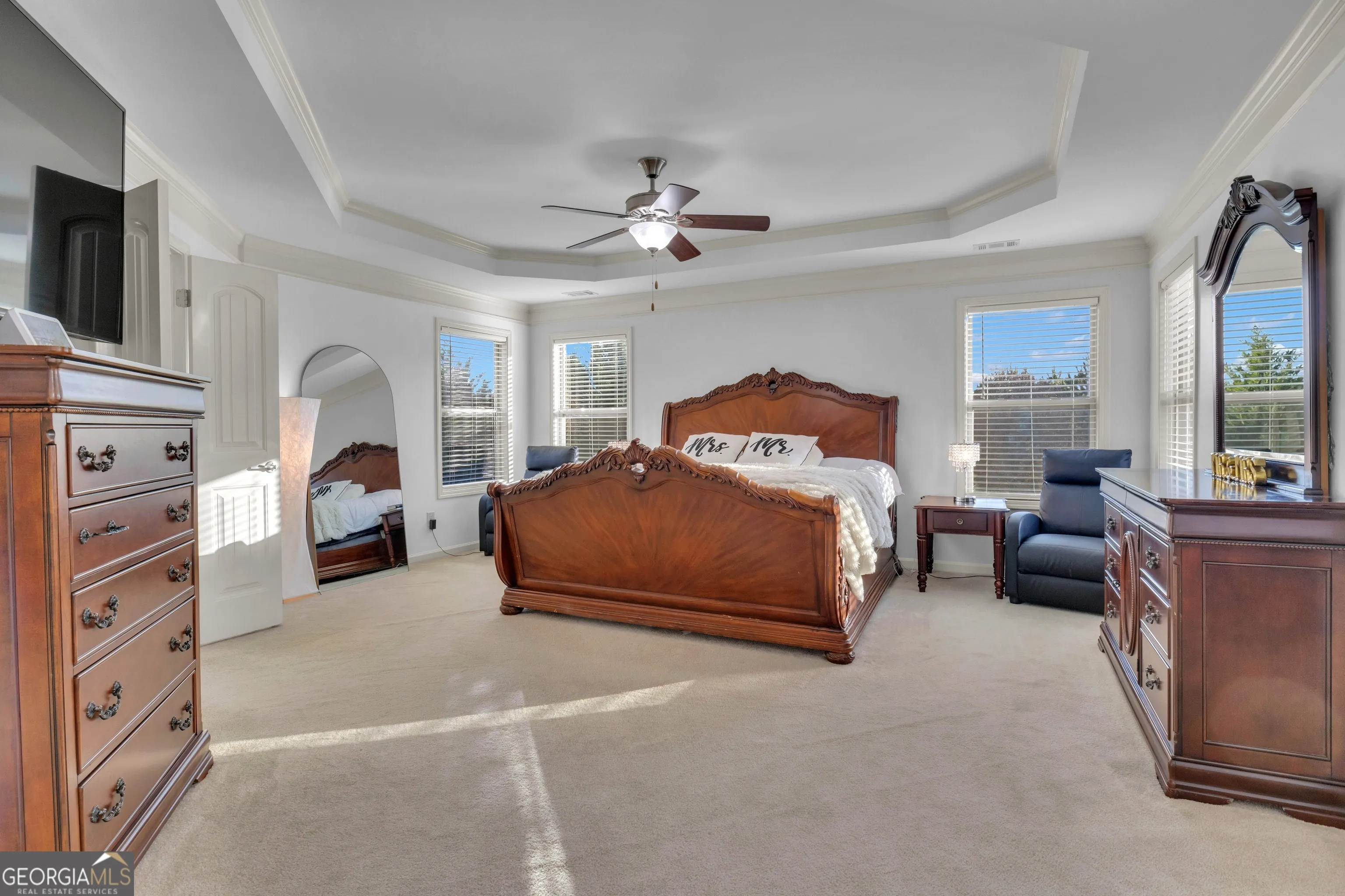 Step into your dream home with this stunning 5-bedroom, 4.5-bath luxury residence that perfectly blends sophistication, comfort, and timeless design. Spanning an impressive 4,316 square feet, this meticulously maintained home sits on a private, flat 1-acre lot with professionally manicured landscaping, offering both privacy and exceptional outdoor potential. This beautiful brick and stone home was painted inside and out, providing a move-in ready experience with low-maintenance living. The three-car garage offers ample storage and convenience, while the expansive backyard with a tiny home presents endless possibilities to create your own outdoor oasis-complete with plenty of space to add a pool. Designed for both entertaining and everyday living, this former model home features a seamless and thoughtfully designed floor plan with multiple living areas, elegant finishes, and exceptional craftsmanship throughout. Upon entry, you are welcomed by a grand two-story foyer. To the left, a formal dining room showcases beautiful coffered ceilings, while to the right, French doors open to an inviting flex space featuring a built-in bookcase and a stunning floor-to-ceiling stacked stone fireplace. The impressive foyer and entryway are enhanced with custom molding and a perfectly placed niche ideal for an entry table. Continuing through the main level, you’ll find the first primary suite, complete with a spacious walk-in closet and private bathroom featuring a double vanity and glass walk-in shower. At the heart of the home is the elegant great room, which flows effortlessly into the well-appointed chef’s kitchen. The kitchen features an oversized island, granite countertops, stainless steel appliances, brand new gas cooktop, and a dedicated breakfast area, creating the perfect space for both cooking and gathering. Just beyond the kitchen is the charming keeping room, complete with another beautiful stone fireplace and coffered ceilings, offering a cozy space to relax with family and friends. Upstairs, retreat to the massive second primary suite, featuring a private sitting area, a spa-inspired bathroom with a walk-in shower with dual shower heads, and separate his-and-hers walk-in closets. Three additional upstairs bedrooms provide generous space and private attached bathrooms, ensuring comfort and privacy for family members or guests. The upstairs laundry room adds convenience and functionality to everyday living. At the center of the upper level, you’ll find an additional flex space perfect for a media room, home office, playroom, craft room, or anything your lifestyle requires. Step outside to enjoy the flagstone covered porch with a beautiful stone fireplace, creating the perfect setting for entertaining guests or enjoying quiet evenings by the fire. The expansive backyard offers exceptional space for gatherings and endless possibilities to customize your outdoor living area-including adding your dream pool. A 12 x 24 site-built tiny home with a custom 10 x 12 deck provides even more versatility and could easily serve as an office, playhouse, or pool house. Located in the desirable Haddonstone community, this home offers a fantastic location near Trilith and downtown Fayetteville, convenient shopping, access to Whitewater schools, and wonderful neighborhood amenities. Experience the perfect combination of luxury, comfort, and convenience in this exceptional property-truly the perfect place to call home.