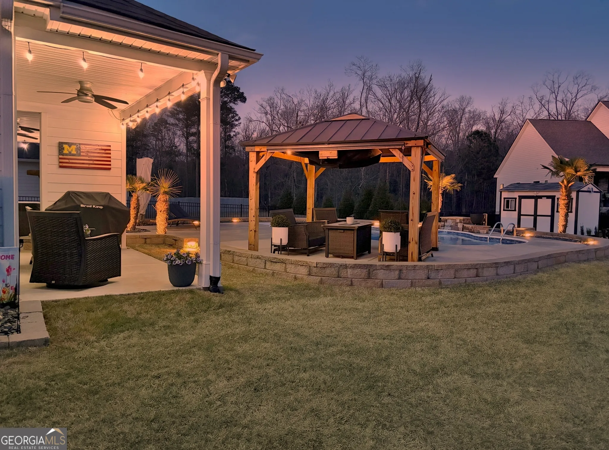 Welcome to this stunning home in sought-after Senoia, where charm, space, and outdoor living come together beautifully. A welcoming covered front porch that wraps to the side sets the tone for this inviting property, while the side-entry three-car garage adds both convenience and curb appeal. Step inside to a dramatic two-story foyer that opens to a formal dining room on the left, perfect for hosting gatherings and special occasions. The spacious family room features a stacked-stone gas fireplace, creating a warm and cozy centerpiece for everyday living. The kitchen offers plenty of room to cook and gather, complete with a bright breakfast area overlooking the backyard. The primary suite on the main level provides comfort and privacy, while upstairs you’ll find four additional bedrooms and a huge vaulted bonus/rec room, ideal for a playroom, media room, or flexible living space. Outdoor living is truly exceptional. Enjoy relaxing on the covered back porch overlooking the in-ground heated saltwater pool, complete with a stone waterfall feature. The pool’s pump and liner are just three years old, and the heater is two years old, offering peace of mind for years to come. A gazebo with power adds the perfect shaded retreat for entertaining or unwinding poolside. The beautifully maintained corner lot showcases upgraded landscaping, supported by a six-zone irrigation system covering the front, back, and side yards. Gutter drains have been designed to flow naturally away from the home, adding to the thoughtful details throughout the property. Another feature of this property is that it has an electric hook-up for a small generator. This incredible Senoia home offers the perfect combination of elegant indoor living and resort-style outdoor amenities-a must-see for anyone looking for space, comfort, and style.