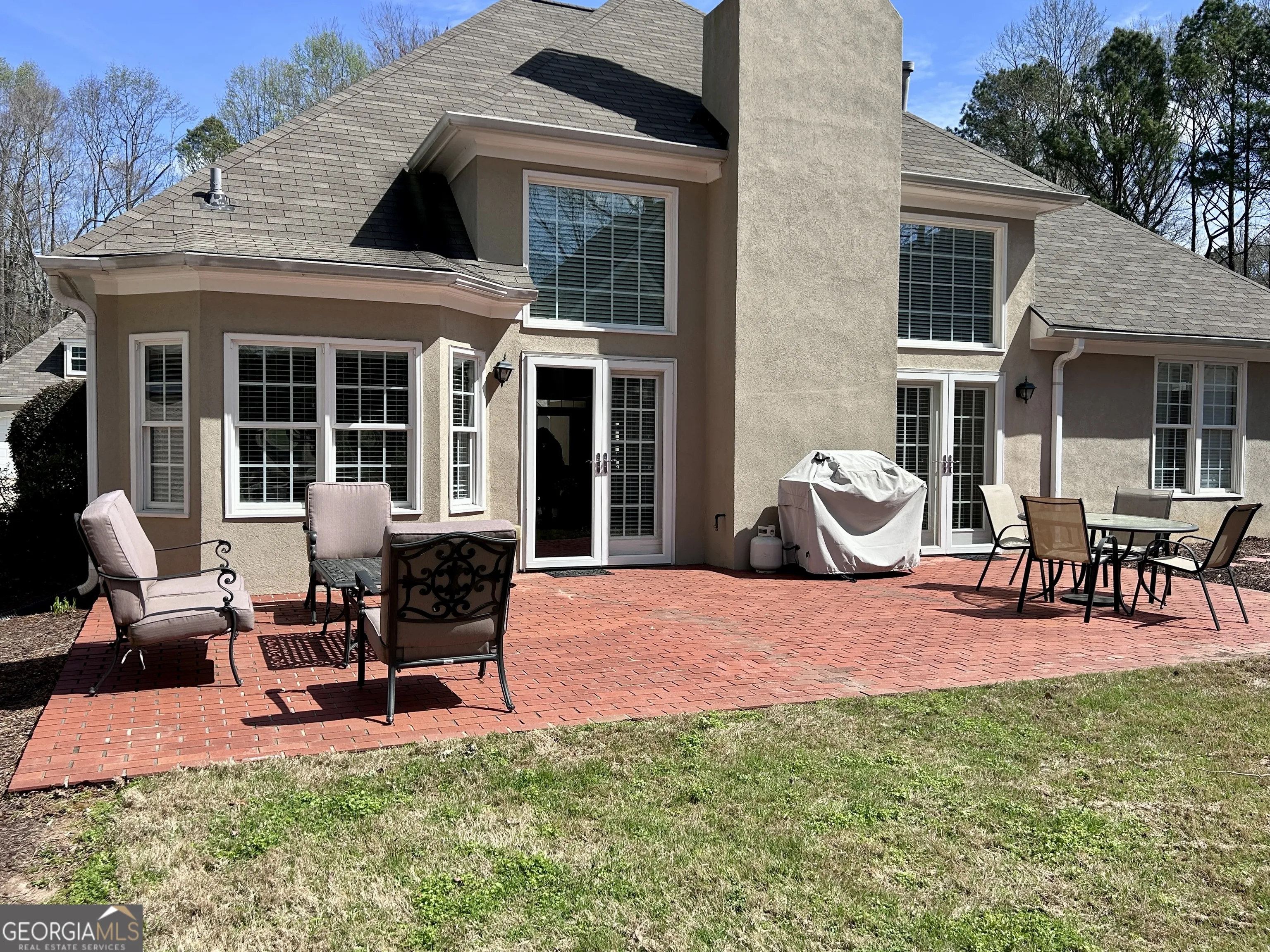 Welcome to this beautiful 4-bedroom, 2-bath home perfectly positioned on the White Oak Golf Course, offering gorgeous views and a peaceful, private setting. With its classic stucco exterior and 2-car garage, this home combines timeless curb appeal with comfortable living spaces inside and out. The main level features three bedrooms, including a spacious primary suite with a newly renovated spa-like bath highlighted by an oversized walk-in “water room” shower. High ceilings and abundant natural light create an open, airy feel throughout the home. The updated kitchen is both stylish and functional with granite countertops, stainless steel appliances, and a breakfast bar that opens to a spacious breakfast room. Just off the kitchen, the large great room features a cozy fireplace and elegant French doors that lead to the expansive paver patio-perfect for entertaining or simply relaxing while enjoying the private backyard and golf course views. A large formal dining room provides an ideal space for gatherings and special occasions. Upstairs, you’ll find a fourth bedroom that offers flexibility for guests, a home office, or a private retreat. Step outside to the huge paver patio overlooking the private yard-an ideal spot for outdoor dining, entertaining, or enjoying quiet evenings with scenic views. Located in a private neighborhood within White Oak, residents enjoy access to a neighborhood pool and a convenient location just minutes from Newnan, shopping, dining, and everyday amenities. This home offers the perfect blend of comfort, privacy, and golf course living.